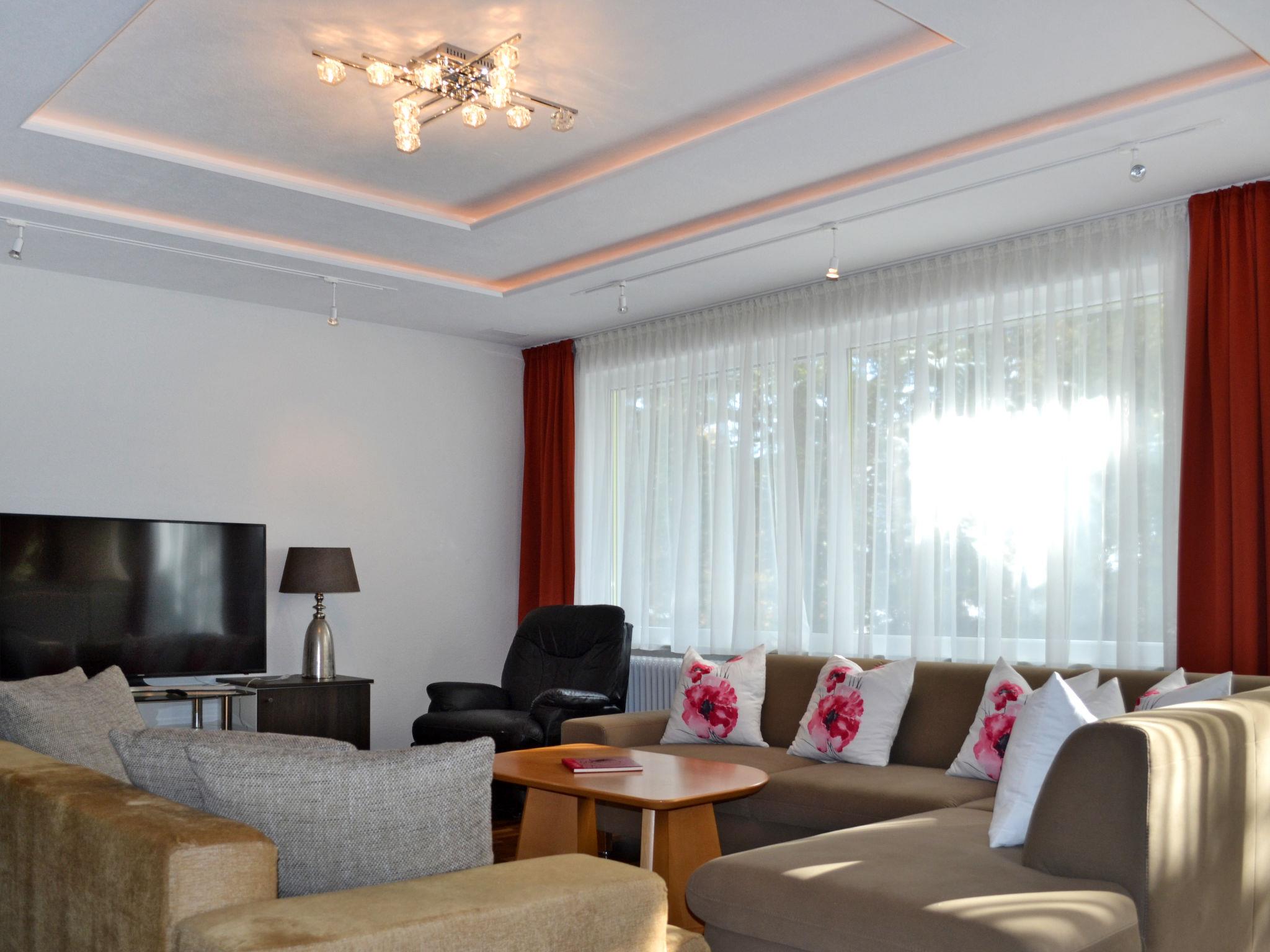 "Viola", 7-room house 300 m2 on 3 levels. Spacious, renovated in 2017, modern and stylish furnishings: living room with satellite TV and tiled stove. Exit to the terrace. Dining room with dining table, dining nook and tiled stove. Kitchen (oven, dishwasher, 4 ceramic glass hob hotplates, toaster, kettle, microwave, freezer, electric coffee machine). Sep. WC. Upper floor: 3 rooms, each room with 1 double bed. Exit to the balcony. 1 room with 1 double bed. Bath/shower, shower/WC, sep. WC, double hand-basin. 2nd upper floor: 1 room with 1 double bed, hand-basin and shower. Oil heating. Parquet floors. Balcony, terrace partly roofed. Terrace furniture, barbecue. Facilities: washing machine, dryer, iron, children's high chair. Internet (WiFi, free). Please note: non-smoking house. Maximum 2 pets/ dogs allowed. When there are less than the maximum number of guests staying at the property, not all of the bedrooms will be available for use.