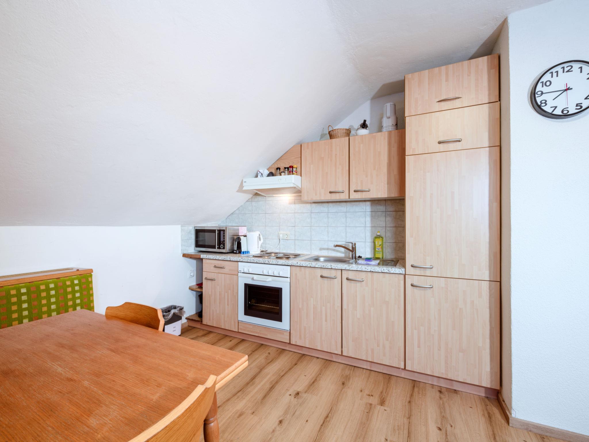 "Ferienwohnung Grimmingblick", 4-room apartment 85 m2 on 2nd floor. With sloping ceilings, cosy furnishings: living/dining room with dining nook, satellite TV and international TV channels (flat screen). 1 double bedroom with hand-basin. 1 double bedroom. 1 room with 2 beds. Open kitchen (4 hot plates, oven, microwave, electric coffee machine). Shower, sep. WC. Heating. Parquet floors. Beautiful view of the mountains. Facilities: Internet (WiFi, free). Please note: non-smokers only.