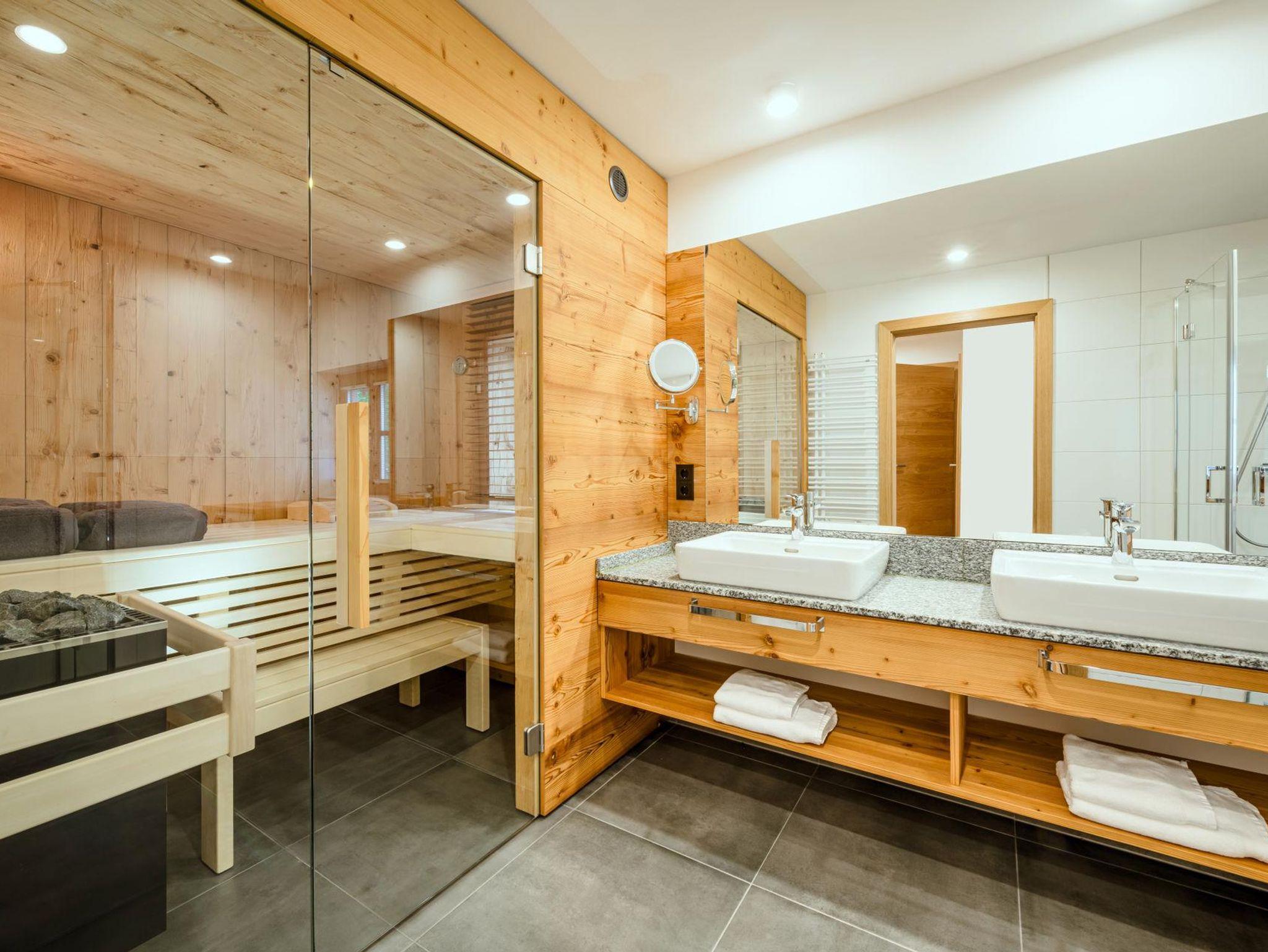 60 m² Wohnfläche für 2-4 Gäste, eigene Sauna im Apartment, Balkon mit Blick zum majestätischen Grimming