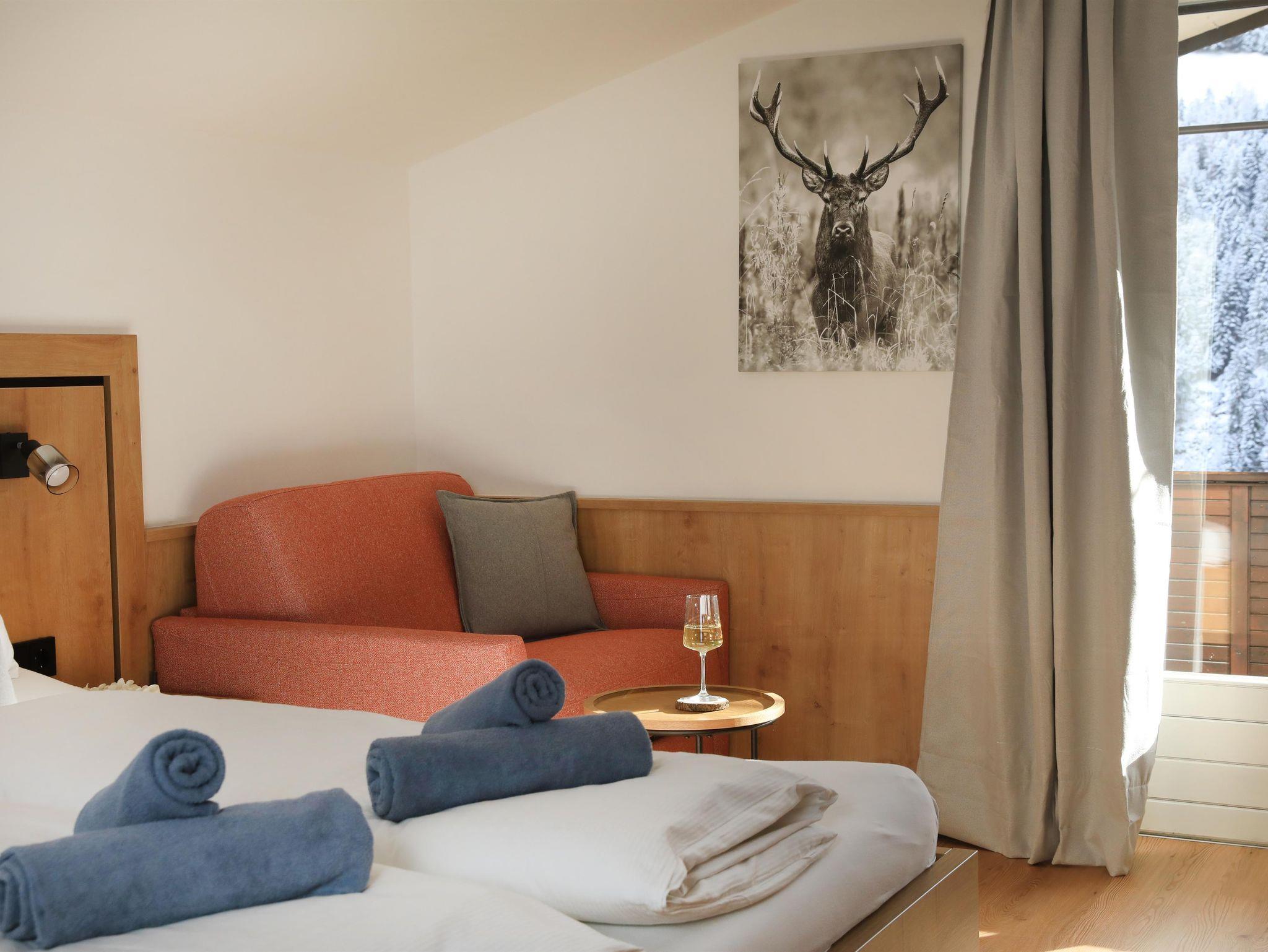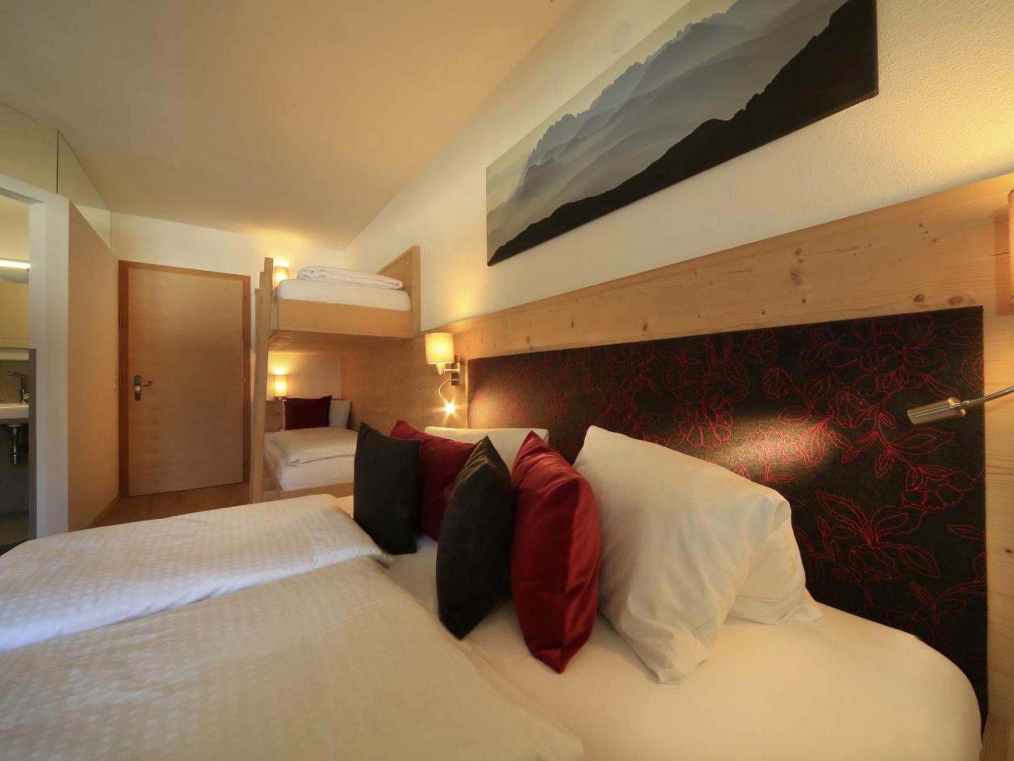 Das Appartement Marie hat ein Schlafzimmer mit Doppelbett und Stockbett, ein Badezimmer, große gemütliche Holzstube mit Schlafsofa für zwei Personen und sehr gut ausgestatteter Küche mit Geschirrspüler. Großer Balkon.