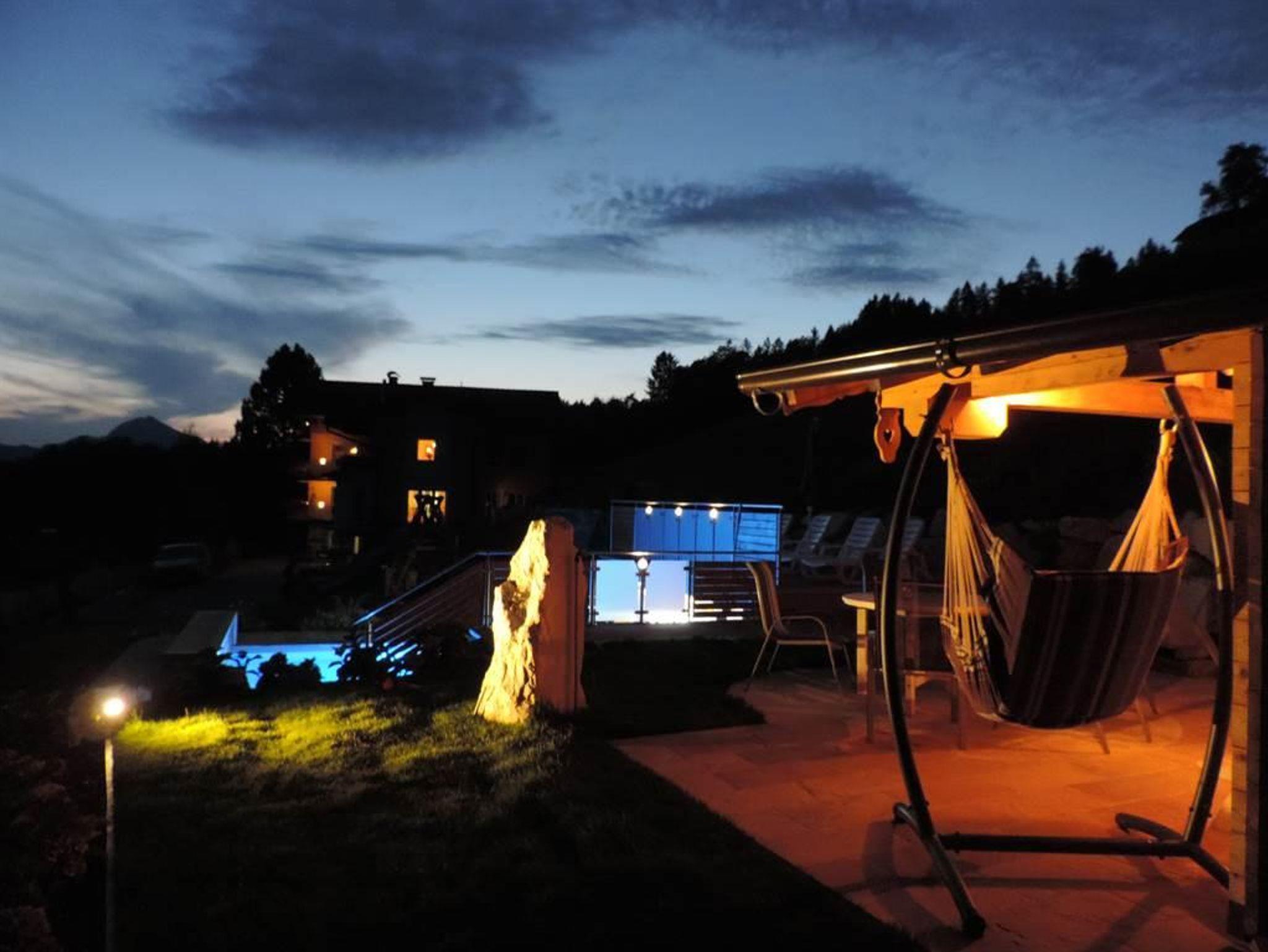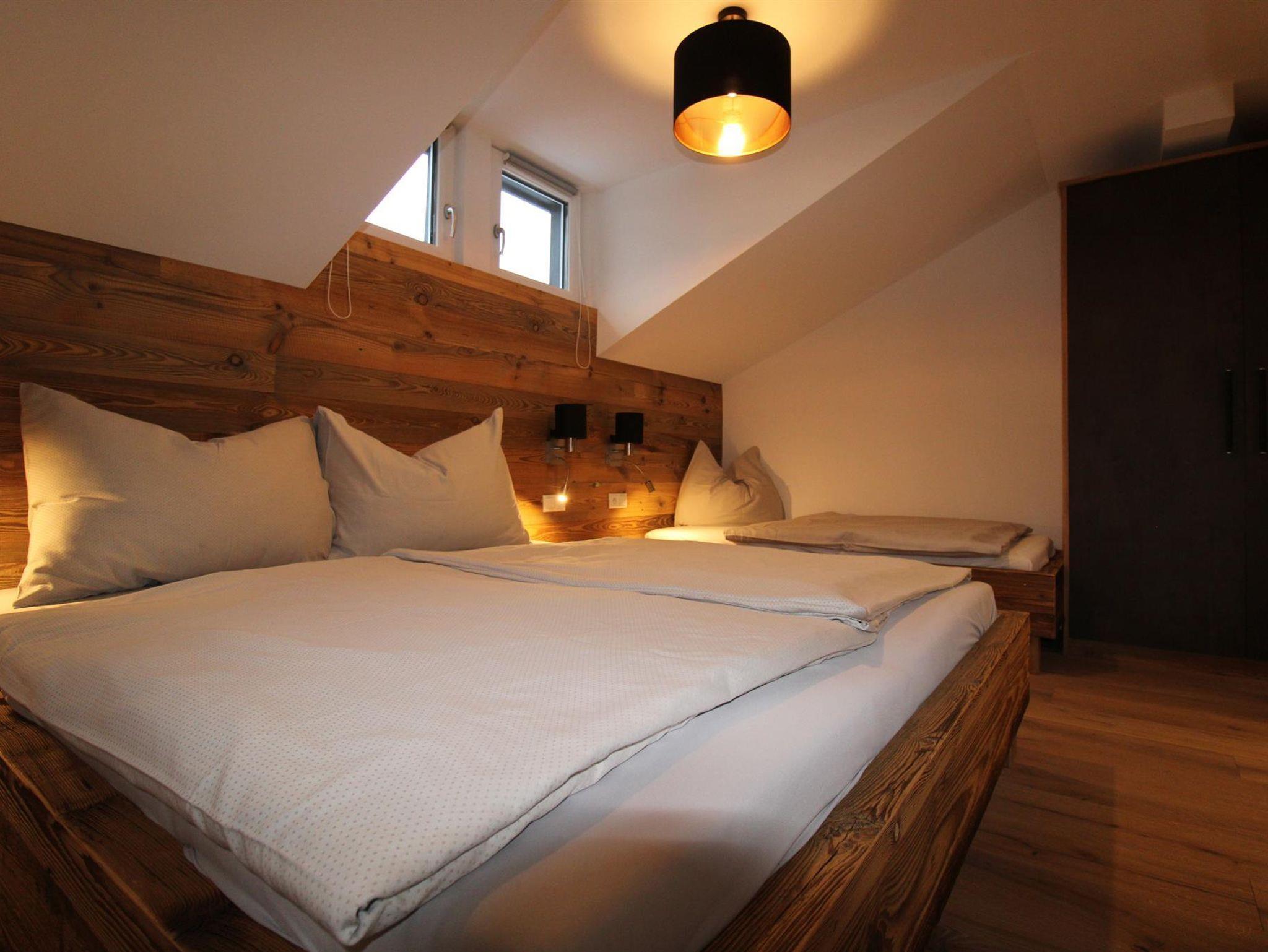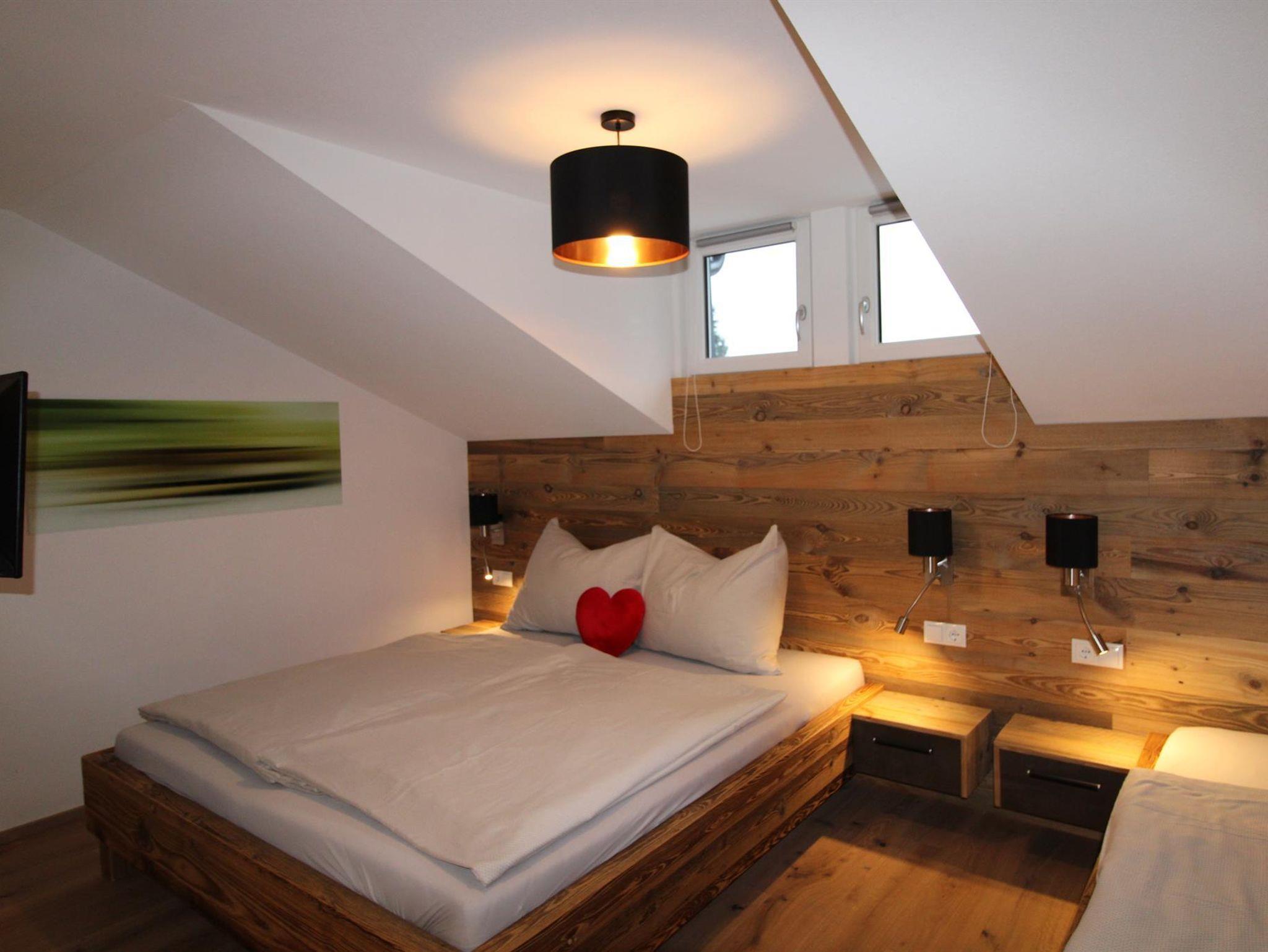 Unser Luxus-Appartment (75qm große, moderne Ferienwohnung im 3.OG mit Balkon) bietet sich besonders für Familien mit Kindern an. Sie verfügt über 2 getrennte Schlafzimmer (ein Wohn-Schlafraum mit Doppelbett, ein separates Schlafzimmer/Dreibettzimmer - 1 Einzelbett (90x200cm), 1 Doppelbett (180x200cm), Wohn-Schlafzimmer mit gemütlicher Couch und Esstisch mit 6 Stühlen, LED-TV, Radio, DVD, kostenl. W-LAN;, zwei Duschen mit WB, 2 WC´s (1 WC extra, 1 im Bad) und einer voll ausgestatteten Küchenzeile mit Besteck, Tischwäsche und sonst. Utensilien. Der Ausblick vom Balkon im dritten Stock vom PANORAMAFENSTER auf die Berge ist atemberaubend. Unser Garten mit Gartenhütte und Kinderspielplatz (Poolbenützung kostenlos/saisonal, Grillmöglichkeit).