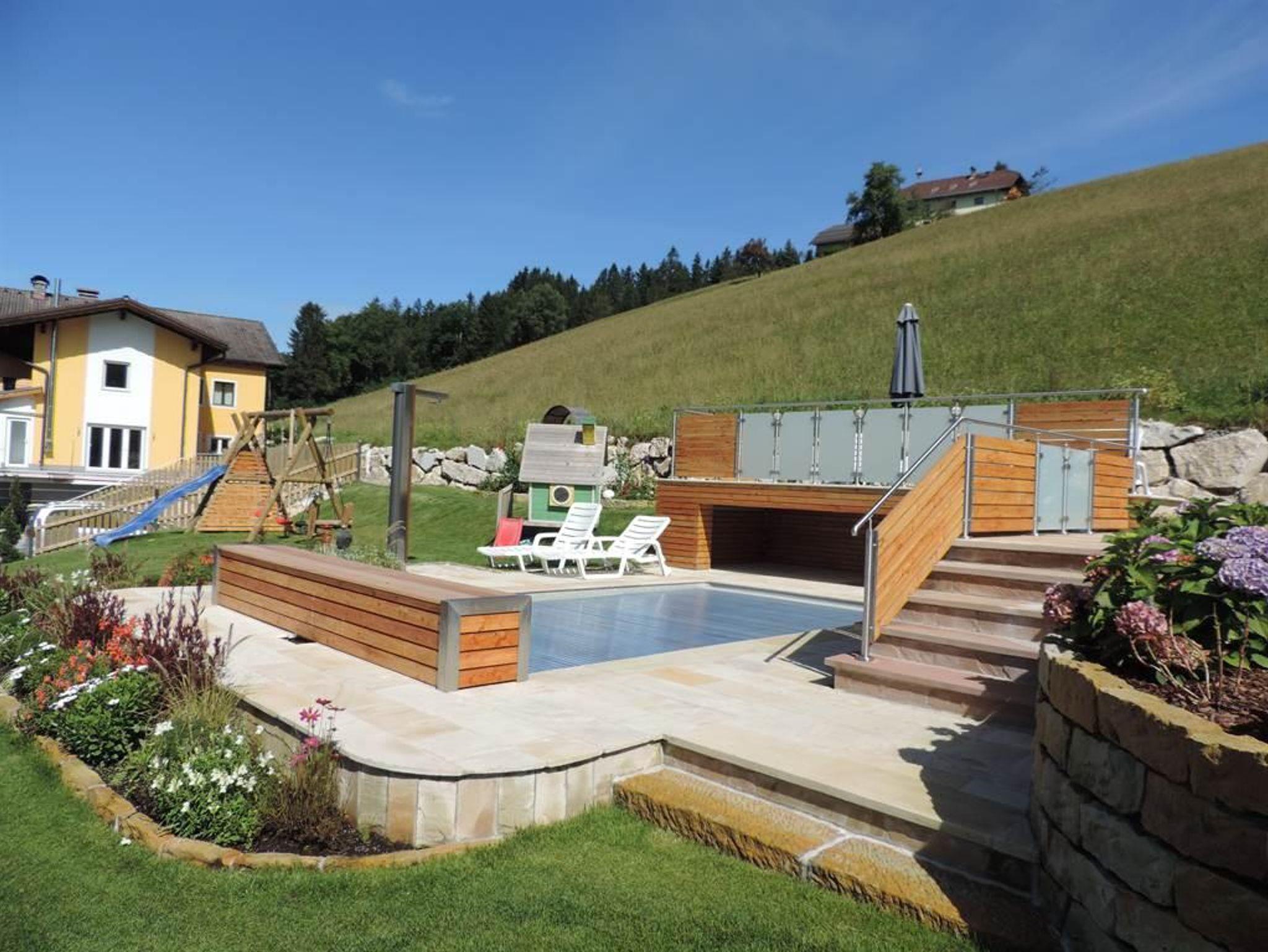 Unser mit 4 Edelweiß ausgezeichnetes Haus liegt etwa 7 km außerhalb des Ortes Abtenau am Radochsberg (Richtung Rußbach - Dachstein West) in ruhiger Lage an einem sonnigen Südhang. Es bietet Ihnen 2 moderne und liebevoll eingerichtete Ferienwohnungen für bis zu 5 Personen, von denen Sie einen einzigartigen Blick auf unsere herrliche Bergwelt genießen können. Sie sind jeweils ausgestattet mit 2 getrennten Schlafräumen, Dusche und WC, Balkon, Küchenzeile, LED-TV und Radio/Stereoanlage. Im Sommer steht Ihnen unser großer Garten inkl. Spielplatz, Liegewiese, ein kleiner Pool (saisonal) und für laue Sommernächte unser Grillplatz mit Gartenhütte zur Verfügung.