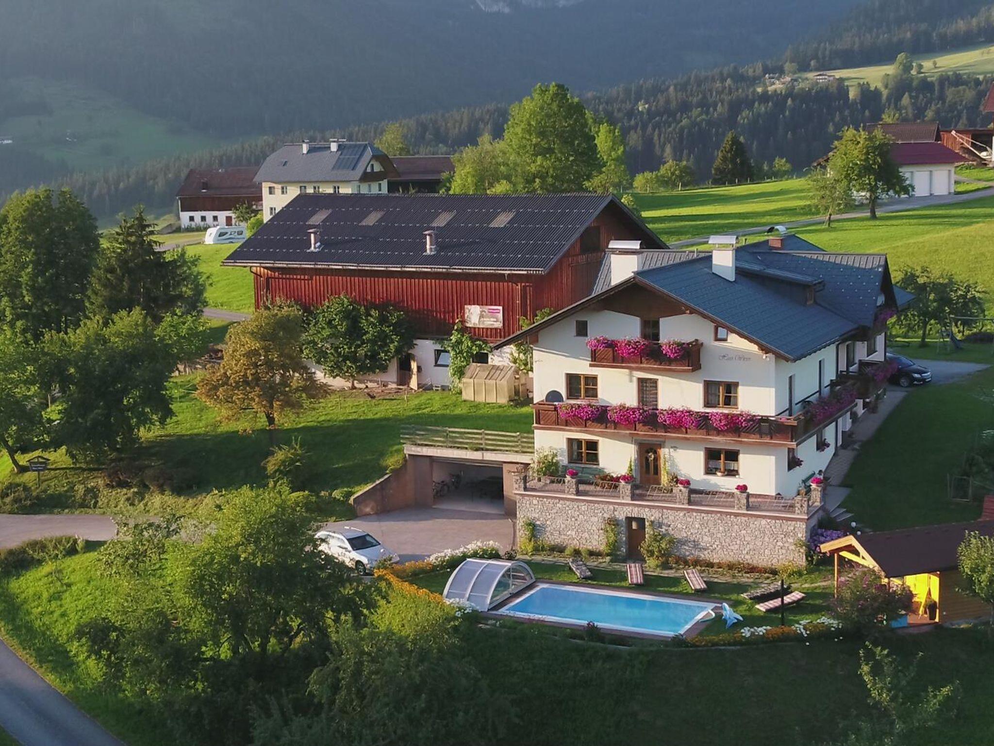 Suchen Sie Erholung von Alltagsstress und Hektik? Dann sind Sie bei uns genau richtig. Unser Biohof Haus Wieser liegt am Südhang des Radochsberges in sonniger und ruhiger Lage. Wir bieten ein Appartement (60 m²) für 3-8 Personen mit 3 Schlafräumen, ein Studio (25 m²) für 1-3 Personen sowie 3 Komfortzimmer jeweils mit Dusche und WC. Für Ihre Freizeit und gemütliche Abende steht Ihnen auch unser großer Garten mit Terrasse, einem Grillplatz, ein Schwimmbad, sowie eine gemütliche Sauna zur Verfügung. Auch Kinder kommen bei uns nicht zu kurz und können sich auf dem Spielplatz oder auf dem Trampolin austoben und mit unseren Streicheltieren (Hasen und Meerschweinchen) kuscheln. Für Ihr Frühstück können Sie gerne unseren Brötchenservice in Anspruch nehmen sowie hofeigene Produkte erwerben.