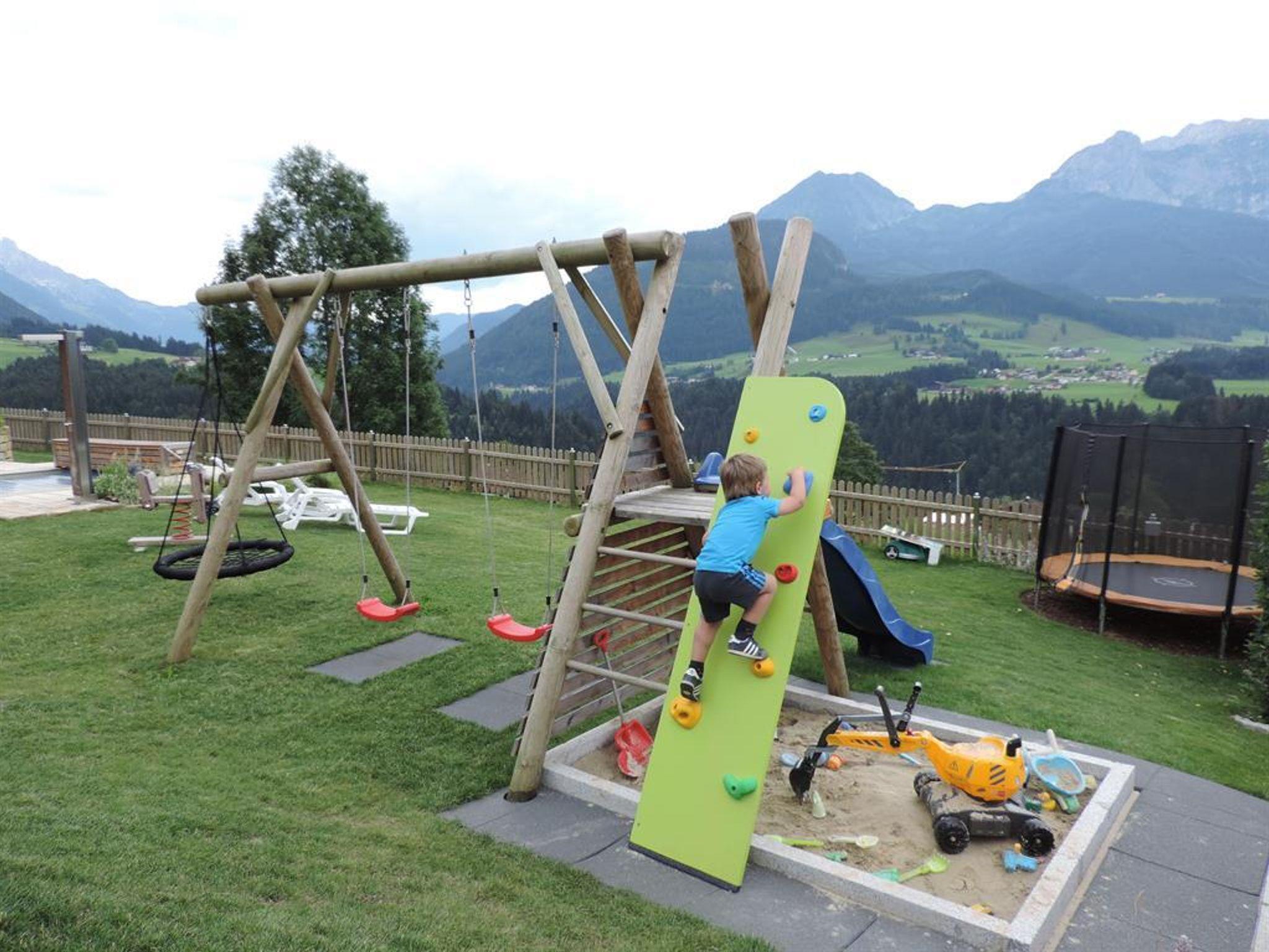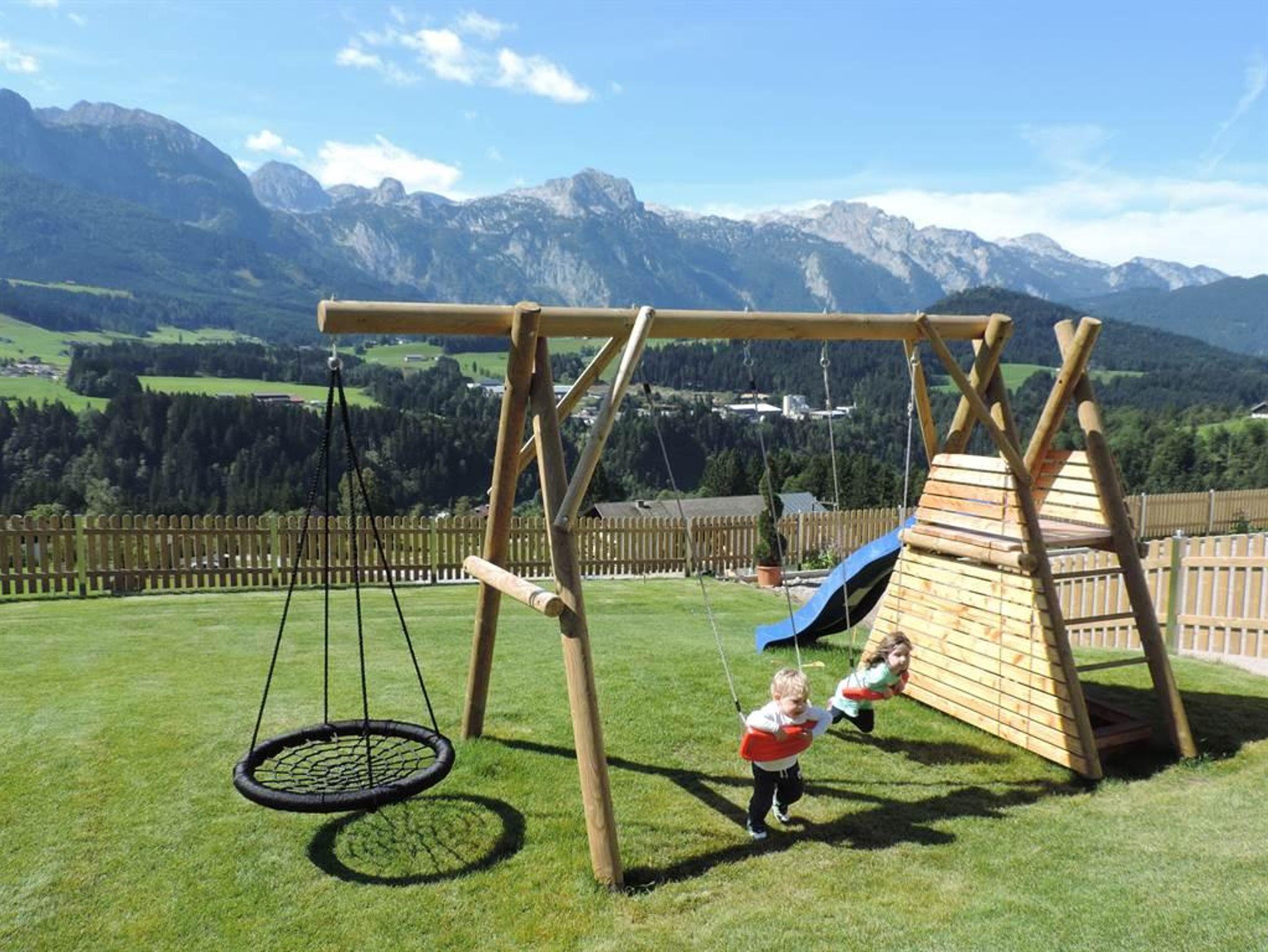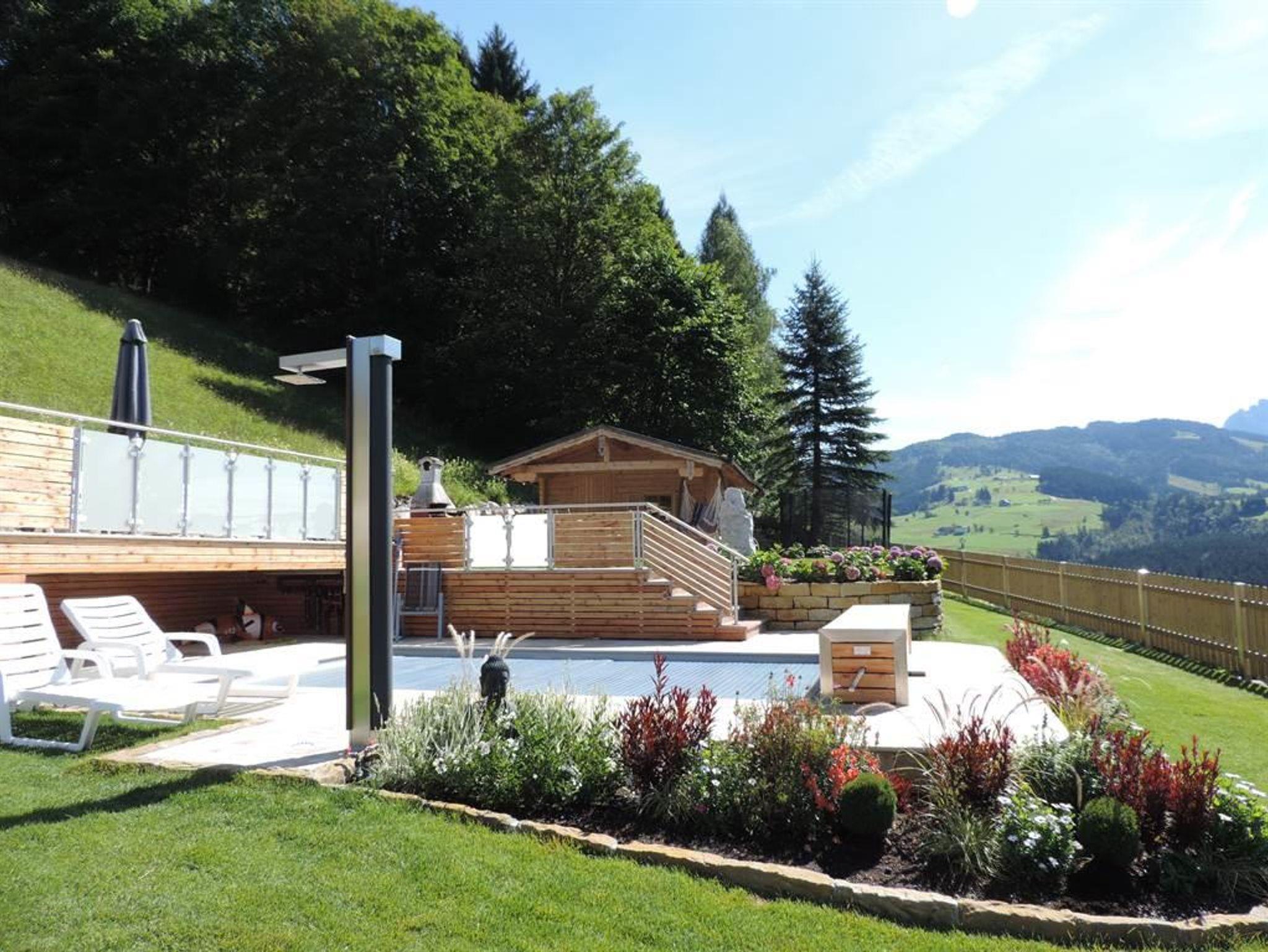 Unser mit 4 Edelweiß ausgezeichnetes Haus liegt etwa 7 km außerhalb des Ortes Abtenau am Radochsberg (Richtung Rußbach - Dachstein West) in ruhiger Lage an einem sonnigen Südhang. Es bietet Ihnen 2 moderne und liebevoll eingerichtete Ferienwohnungen für bis zu 5 Personen, von denen Sie einen einzigartigen Blick auf unsere herrliche Bergwelt genießen können. Sie sind jeweils ausgestattet mit 2 getrennten Schlafräumen, Dusche und WC, Balkon, Küchenzeile, LED-TV und Radio/Stereoanlage. Im Sommer steht Ihnen unser großer Garten inkl. Spielplatz, Liegewiese, ein kleiner Pool (saisonal) und für laue Sommernächte unser Grillplatz mit Gartenhütte zur Verfügung.