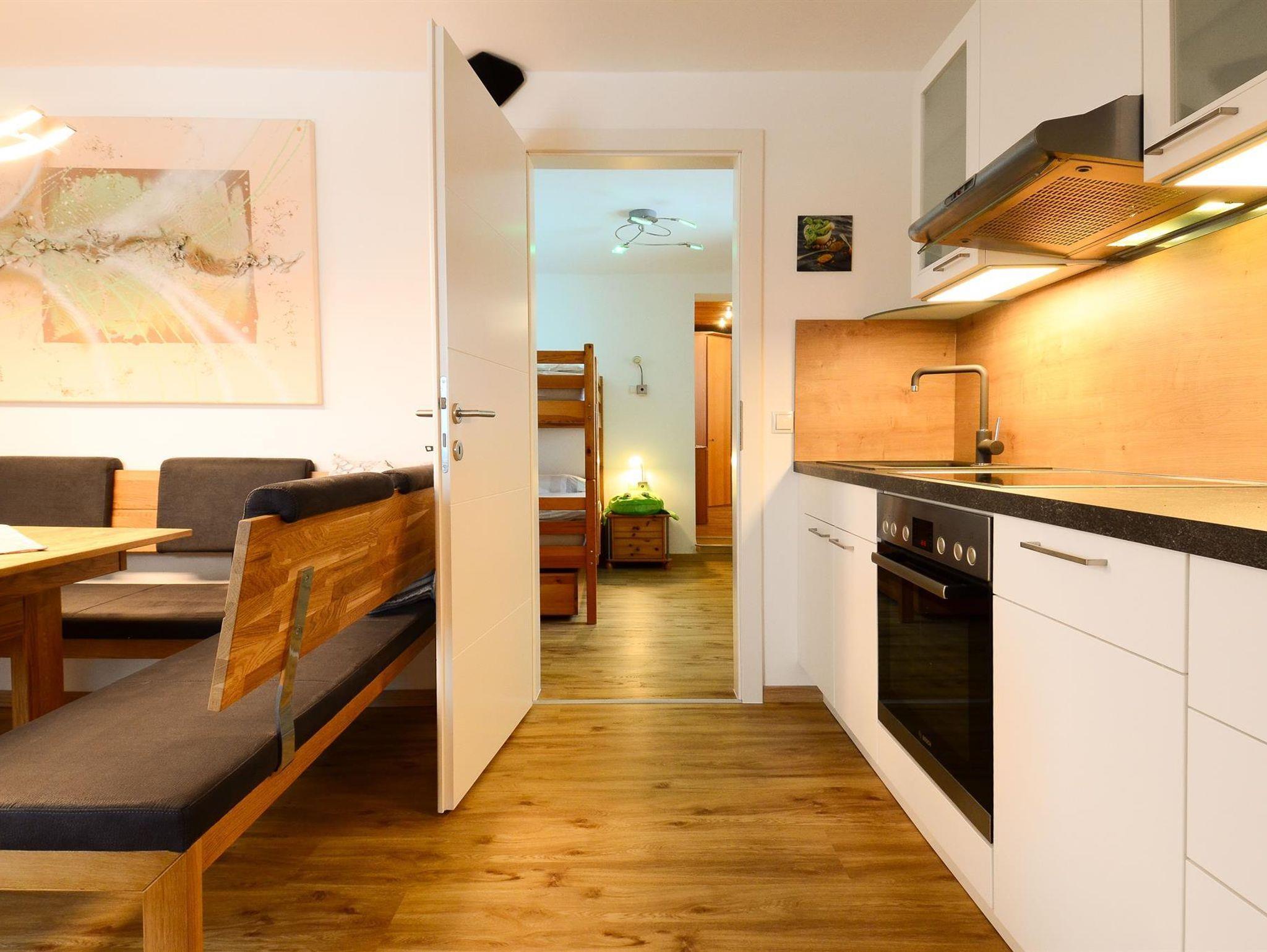 Unsere modern ausgestattete Ferienwohnung im 2. Stock (55qm) bietet sich besonders für Familien mit Kindern, aber auch für Pärchen an. Sie verfügt über 2 getrennte Schlafzimmer - ein sehr geräumiges Doppelzimmer (23qm) mit großem LED-TV und ein Zimmer mit einem Stockbett (Verbindungstür/Durchgang zum Schlafzimmer), ein Wohnzimmer mit gemütlicher Eckbank, LED-TV, Stereoanlage, DVD, W-LAN kostenlos, einer Dusche mit WB, einem separaten WC, und einer voll ausgestatteten Küchen mit Besteck, Tischwäsche und sonst. Utensilien. Der Ausblick vom Balkon auf die Berge ist atemberaubend. Unser Garten mit Gartenhütte und Kinderspielplatz (Grillmöglichkeit vorhanden/Poolbenützung kostenlos/saisonal) steht ihnen jederzeit gerne zur Verfügung.