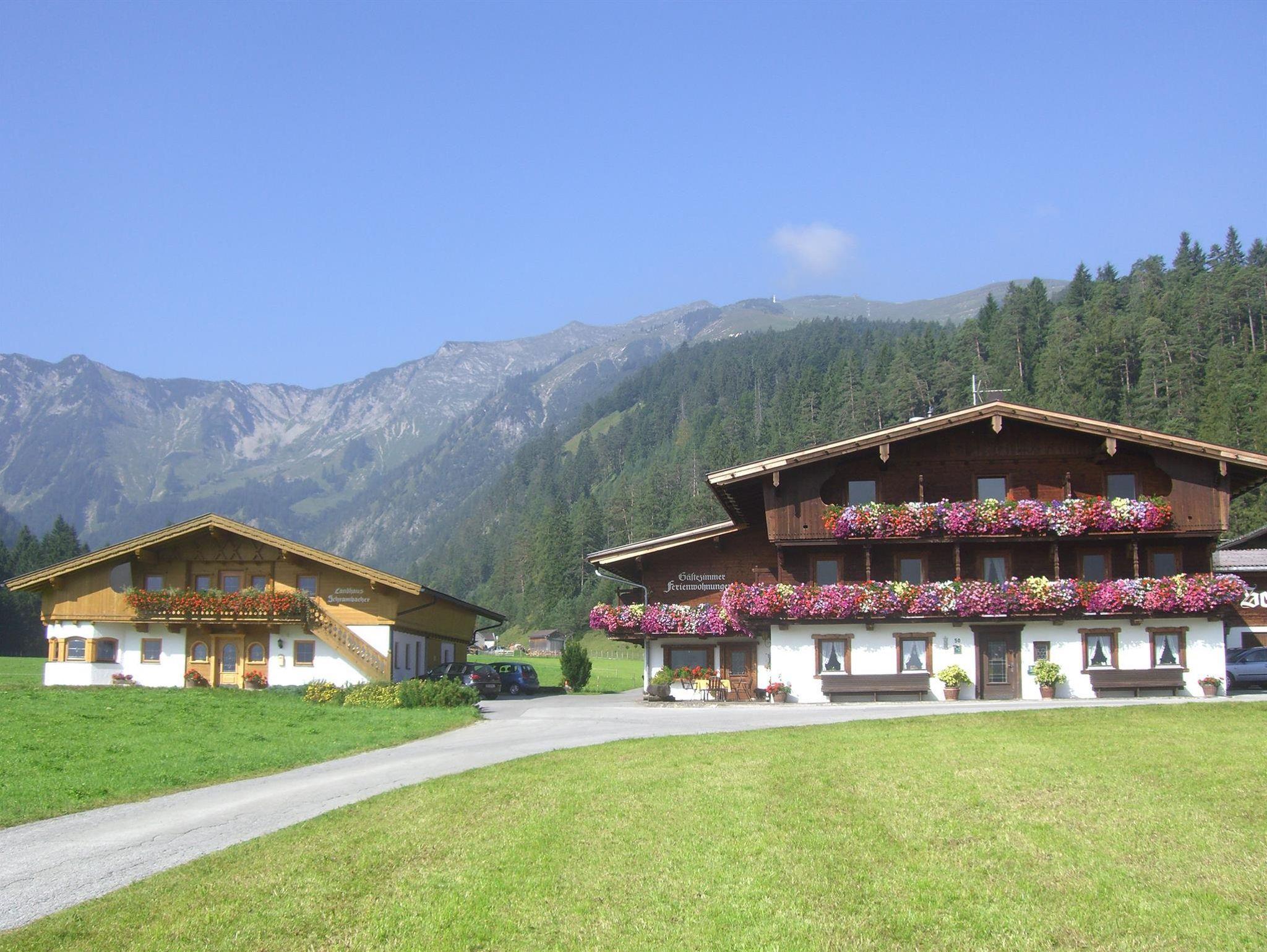 Der Schrambacher Hof besticht durch seine herrliche Lage am Ortsrand vom idyllischen Achenkirch. Unser Haus ist Ausgangspunkt für viele Freizeitaktivitäten: Winterwandern auf 22km bestens geräumten Wegen oder Schneeschuh-Wandern durch tiefverschneite Wälder ist hier in Achenkirch ein echtes Erlebnis. Direkt an unserem Haus geht auch die Langlaufloipe vorbei, die sie auf bestens präparierten 50km Pisten durch den Talkessel führt. Nur wenige Minuten vom Haus entfernt ist das Skigebiet Christlum, das Jung und Alt zum Skifahren und/oder Snowboarden einlädt. Eine Pferdekutschenfahrt rundet ihren romatischen Aufenthalt bei uns noch ab. Bei uns am Bauernhof herrscht eine familiäre, sehr gemütliche und gepflegte Atmosphäre ganz nach Tiroler Tradition. Die Appartements sind komfortabel mit DU/WC, mit Balkon, Telefon, Sat-TV und Kühlschrank ausgestattet. Ein angenehmer Aufenthaltsraum steht unseren Gästen ebenfalls zur Verfügung.