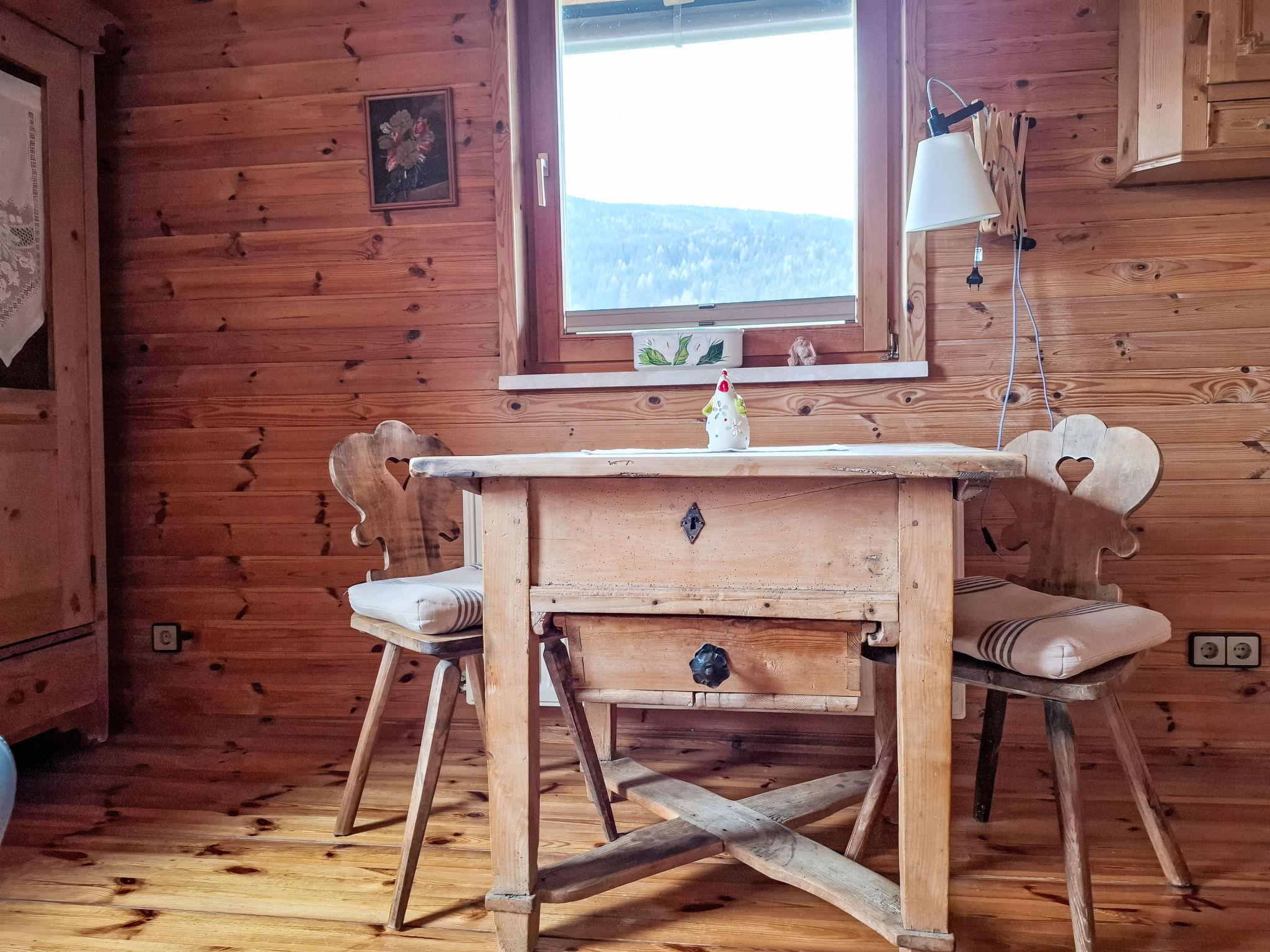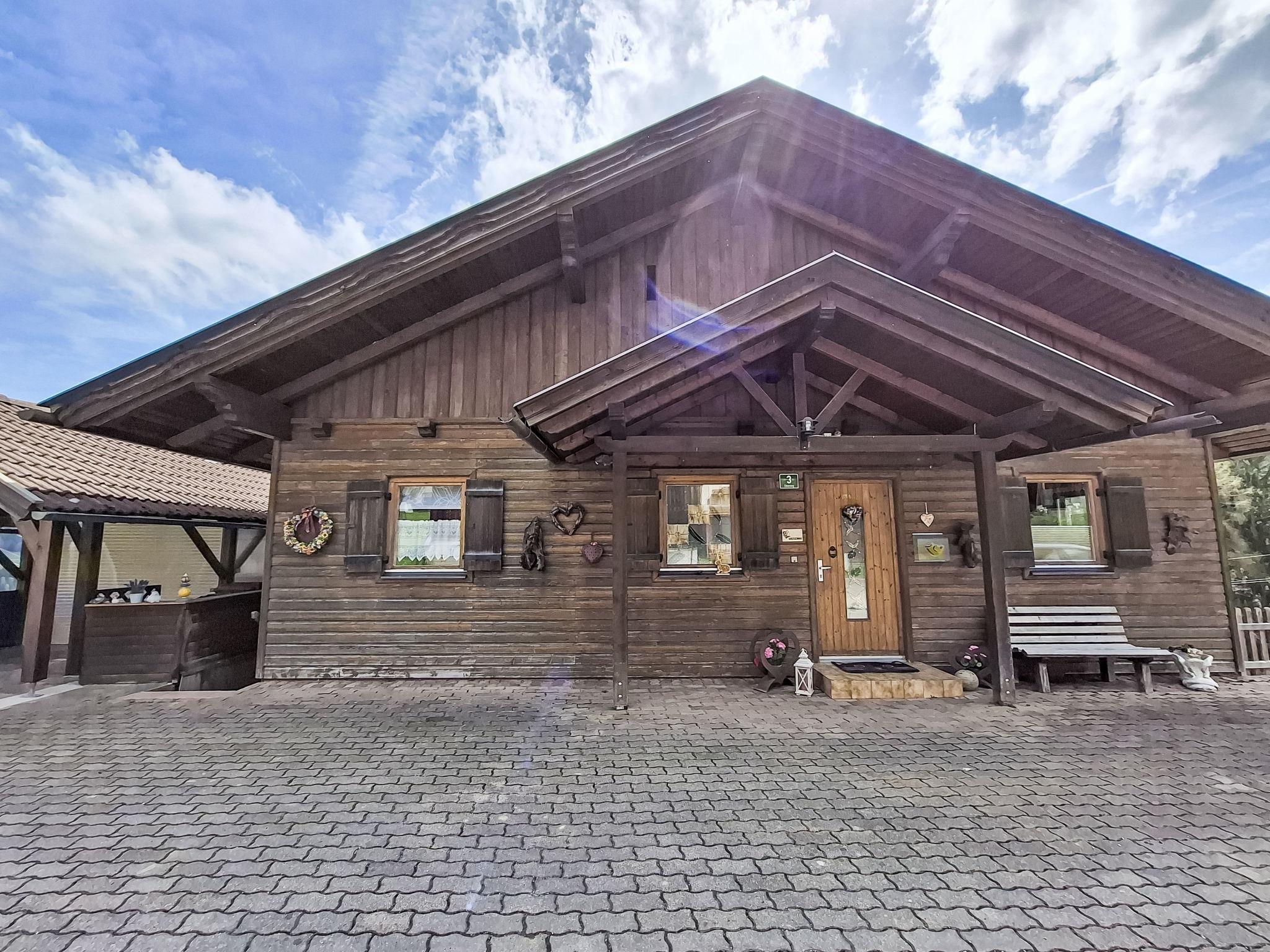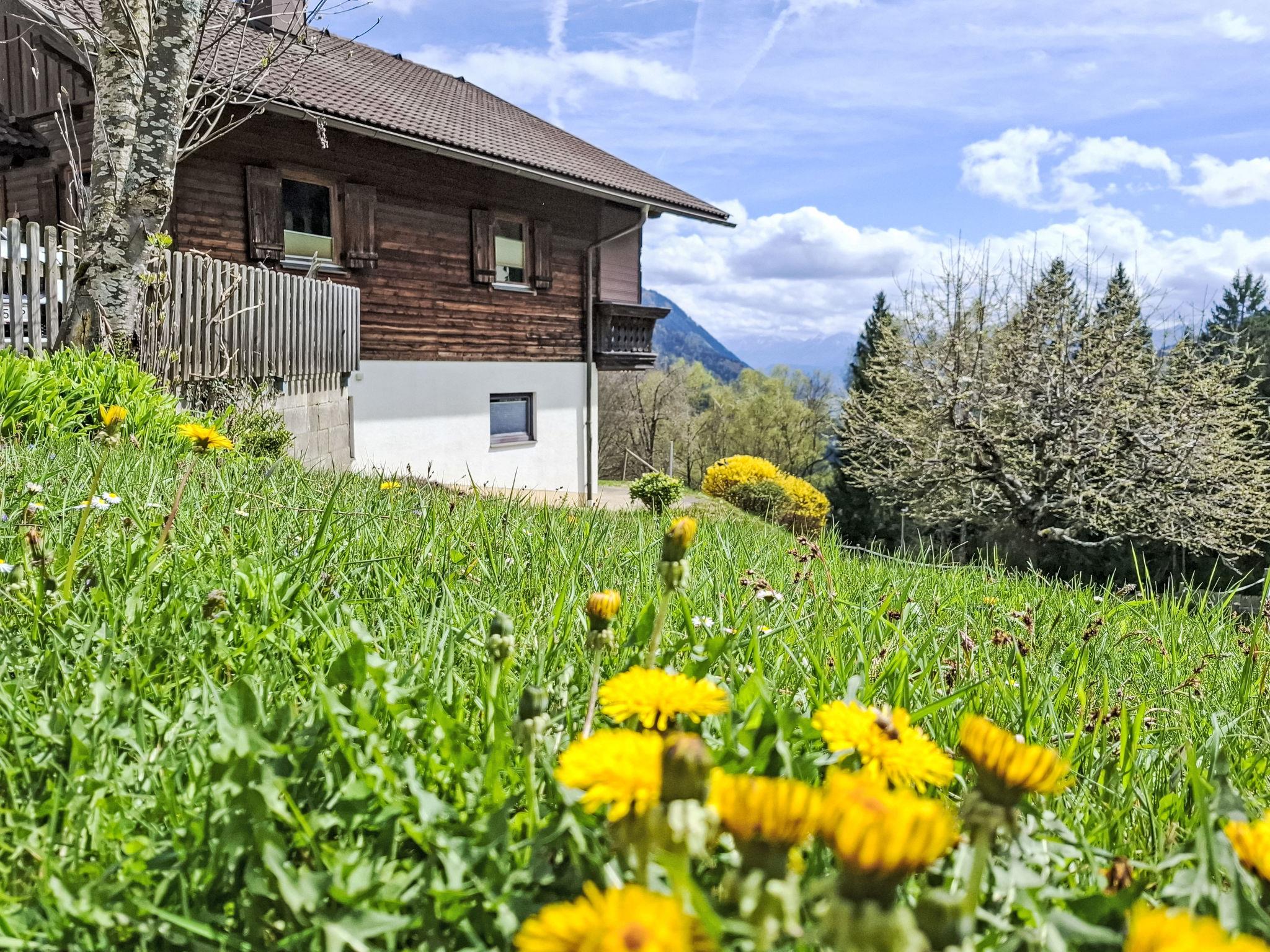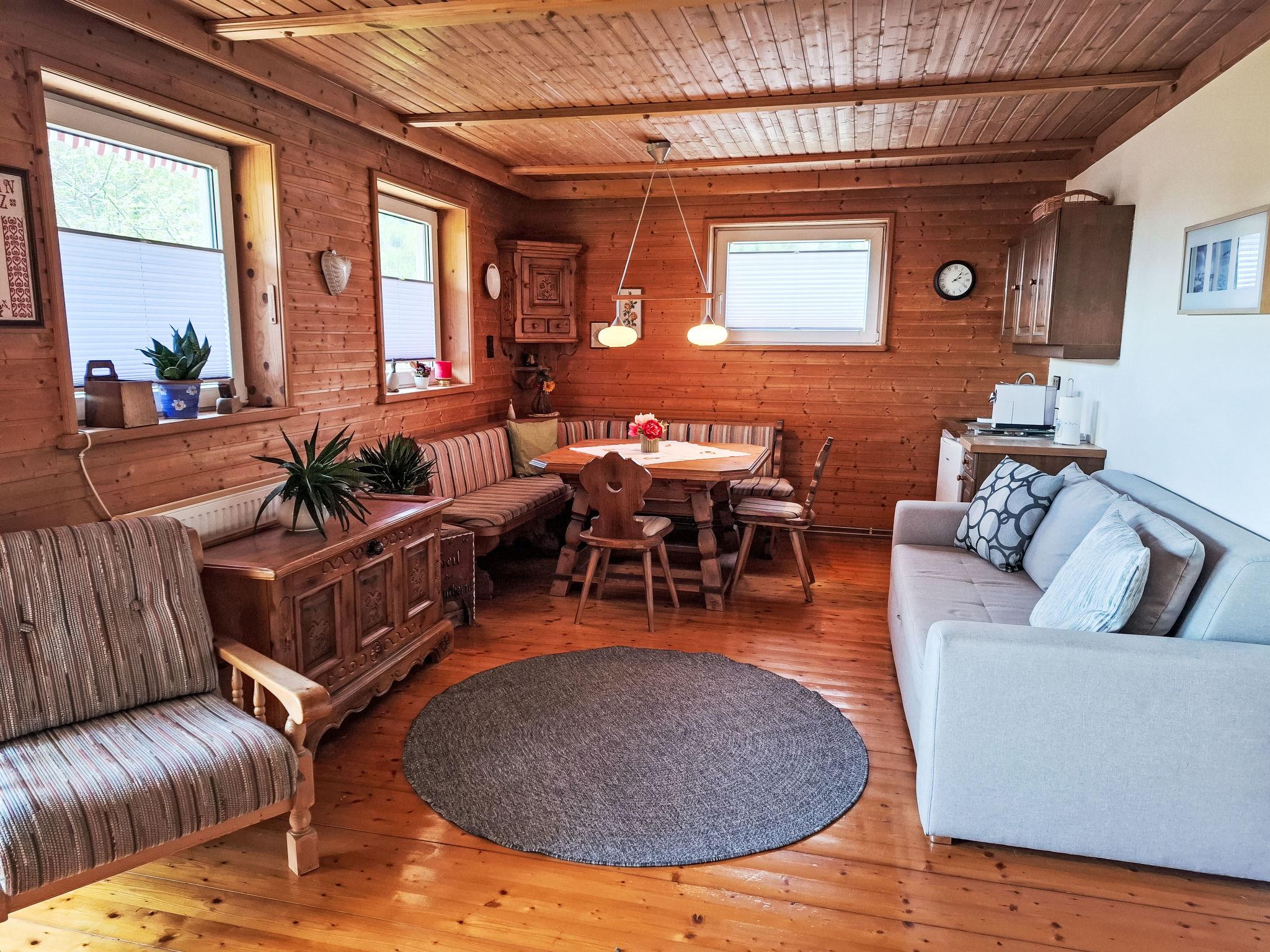 4-room house. Object suitable for 6 adults. Cosy and wooden furniture furnishings: living room with satellite TV. Exit to the balcony. 1 double bedroom with Dressing room. 1 room with 1 bed (120 cm, length 200 cm). Kitchen (oven, dishwasher, 4 ceramic glass hob hotplates, toaster, kettle, microwave, electric coffee machine, Capsules for coffee machine (Nespresso)) with dining table and wood-burning stove. Bathroom, sep. WC. Heating. Solar power. On the lower ground floor: living/sleeping room with 1 sofabed (90 cm, length 200 cm), 1 double sofabed (160 cm, length 200 cm), Scandinavian wood stove, dining nook, kitchen corner and flat screen. Exit to the terrace. Kitchenette (2 hot plates, electric coffee machine, Capsules for coffee machine (Nespresso)). Shower/WC. Wooden floors. Comfortable furnishings in the country house style. Balcony furniture. Beautiful panoramic view of the mountains. Facilities: washing machine, dryer. Internet (WiFi, free). Please note: suitable for families. Fridge without freezer, non-smoking house. Smoke alarm, fire extinguisher.