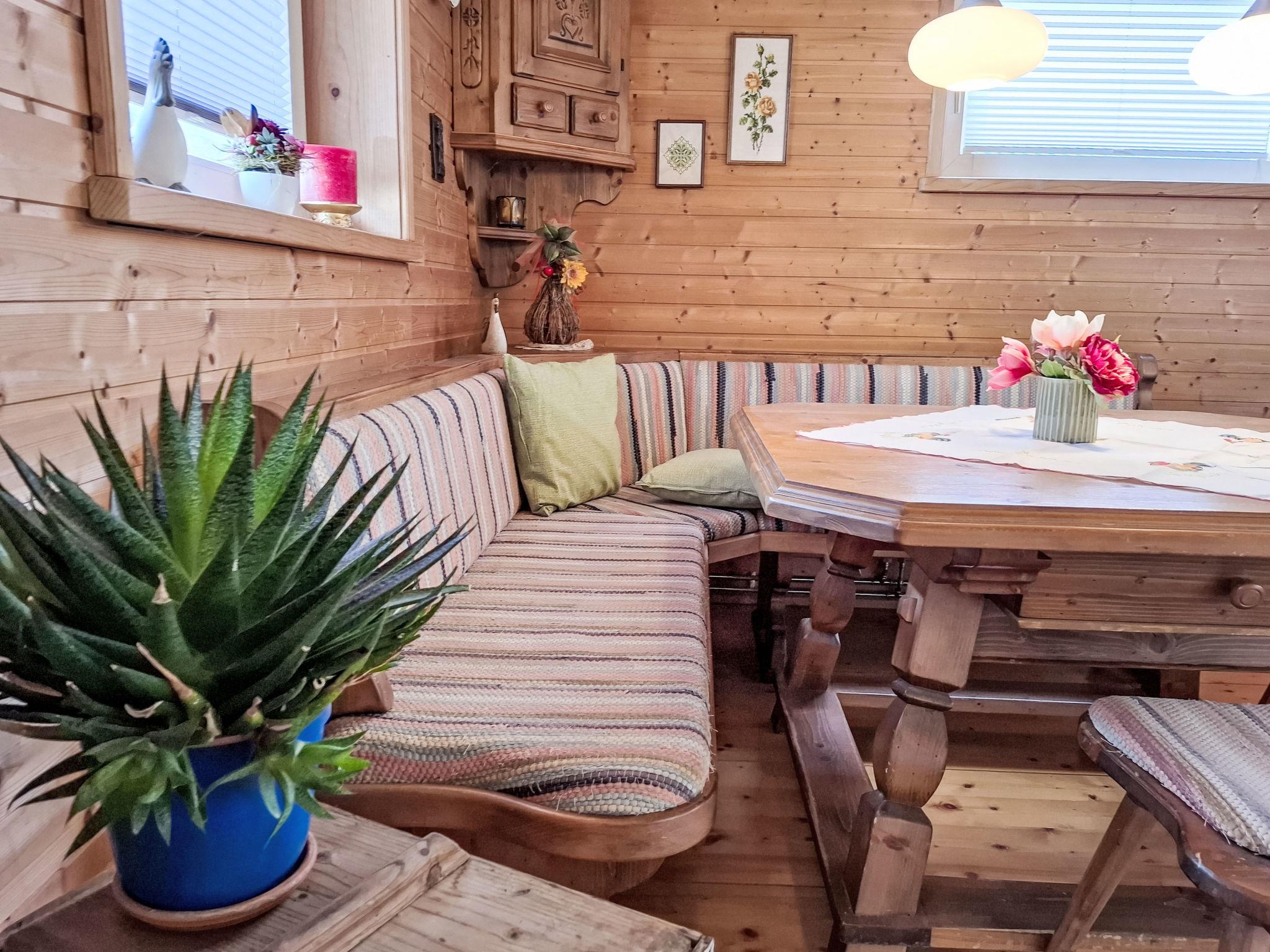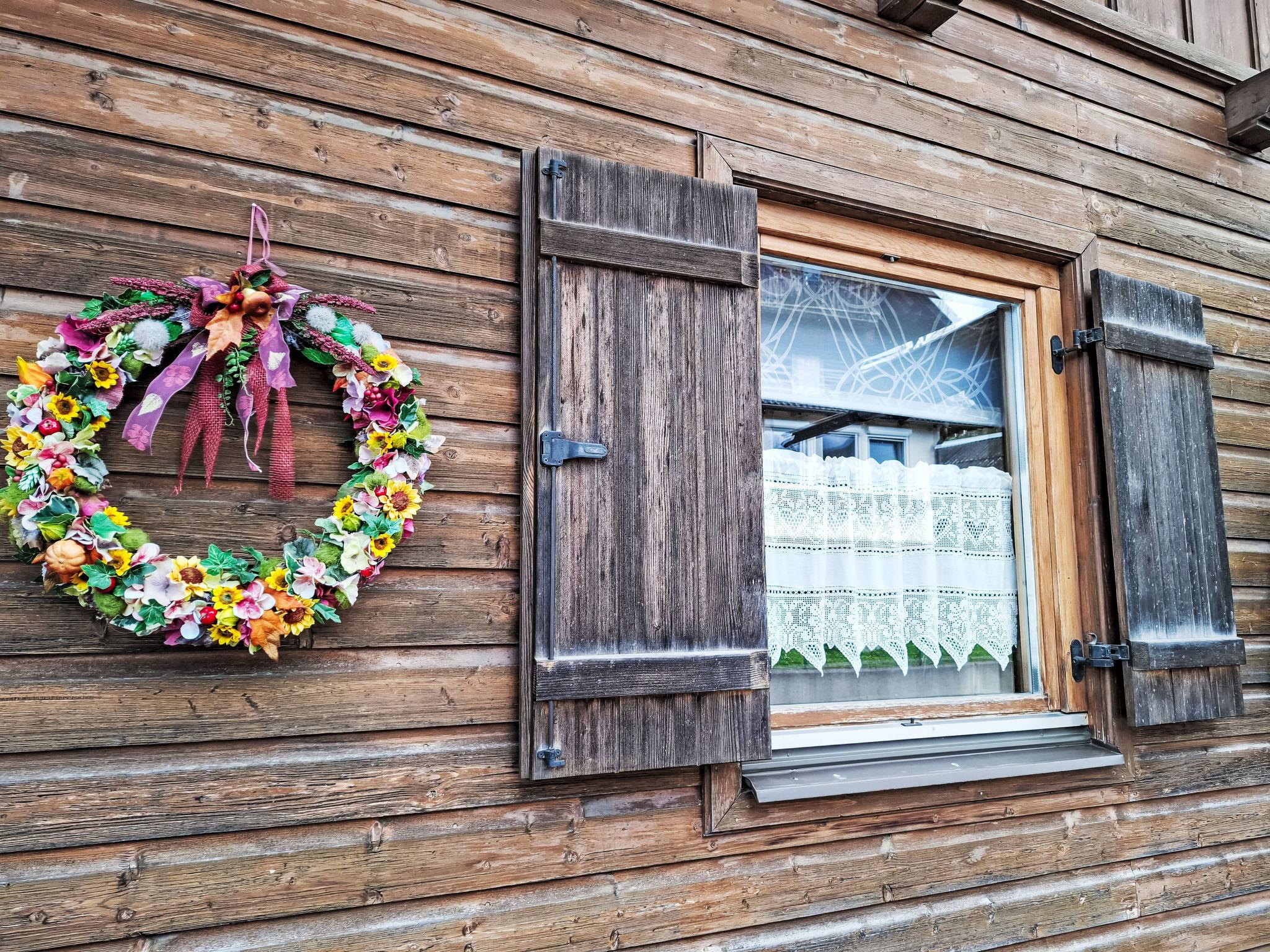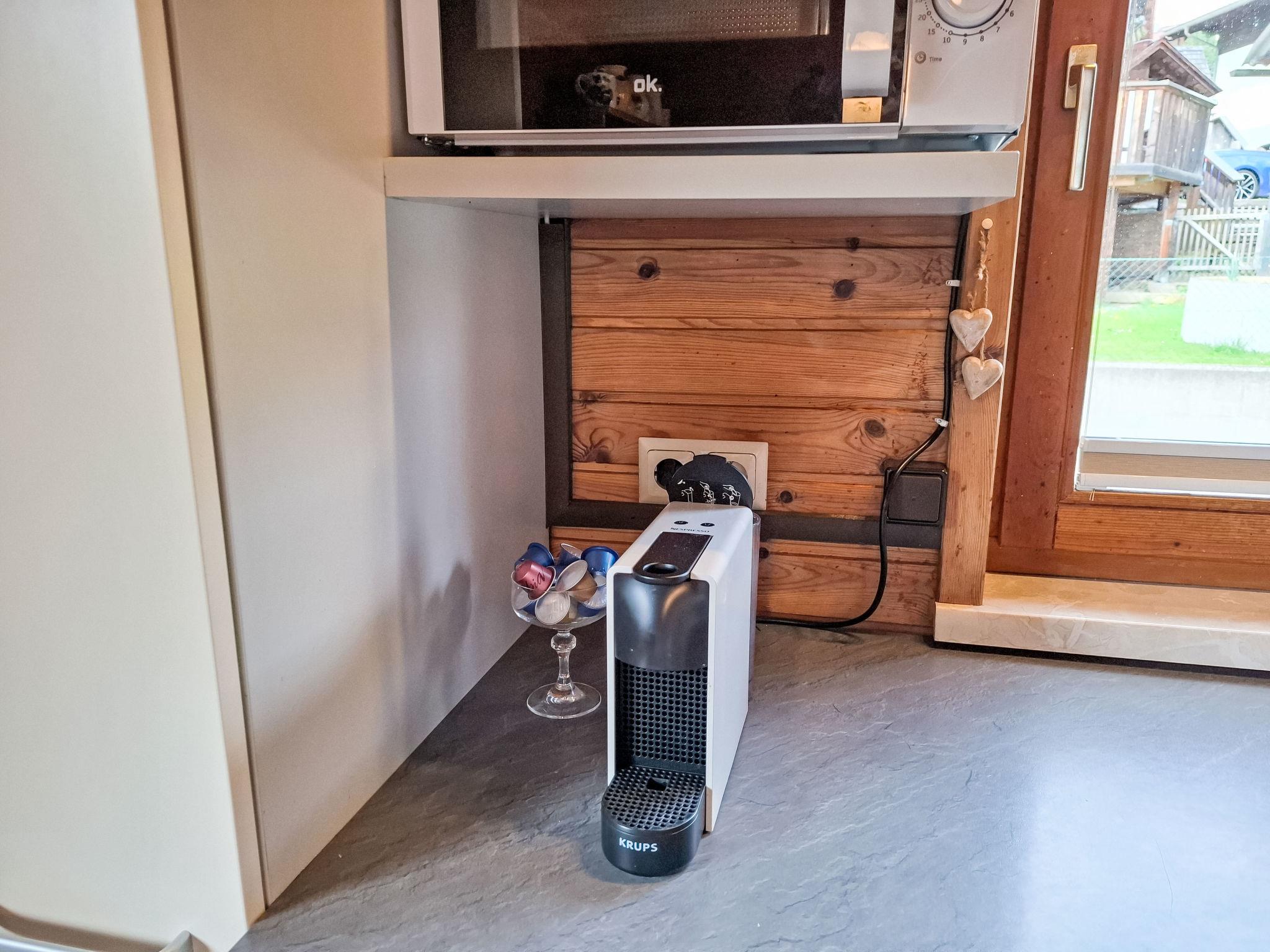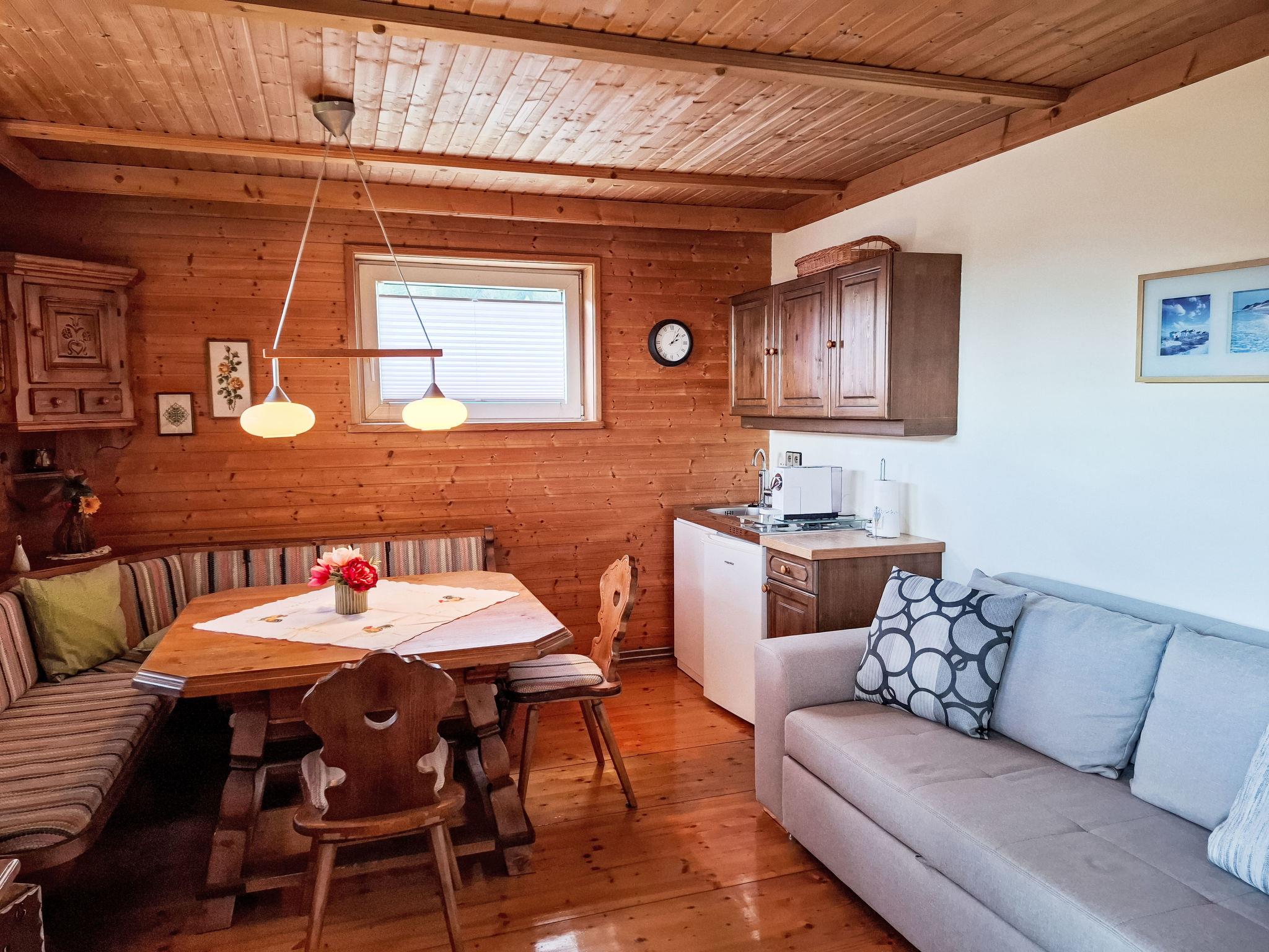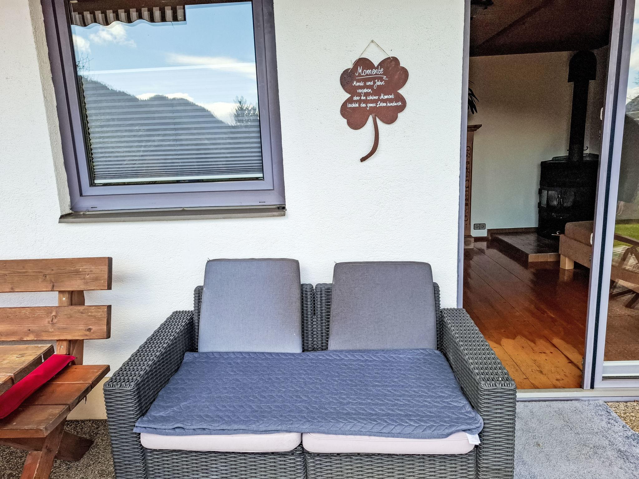 4-room house. Object suitable for 6 adults. Cosy and wooden furniture furnishings: living room with satellite TV. Exit to the balcony. 1 double bedroom with Dressing room. 1 room with 1 bed (120 cm, length 200 cm). Kitchen (oven, dishwasher, 4 ceramic glass hob hotplates, toaster, kettle, microwave, electric coffee machine, Capsules for coffee machine (Nespresso)) with dining table and wood-burning stove. Bathroom, sep. WC. Heating. Solar power. On the lower ground floor: living/sleeping room with 1 sofabed (90 cm, length 200 cm), 1 double sofabed (160 cm, length 200 cm), Scandinavian wood stove, dining nook, kitchen corner and flat screen. Exit to the terrace. Kitchenette (2 hot plates, electric coffee machine, Capsules for coffee machine (Nespresso)). Shower/WC. Wooden floors. Comfortable furnishings in the country house style. Balcony furniture. Beautiful panoramic view of the mountains. Facilities: washing machine, dryer. Internet (WiFi, free). Please note: suitable for families. Fridge without freezer, non-smoking house. Smoke alarm, fire extinguisher.