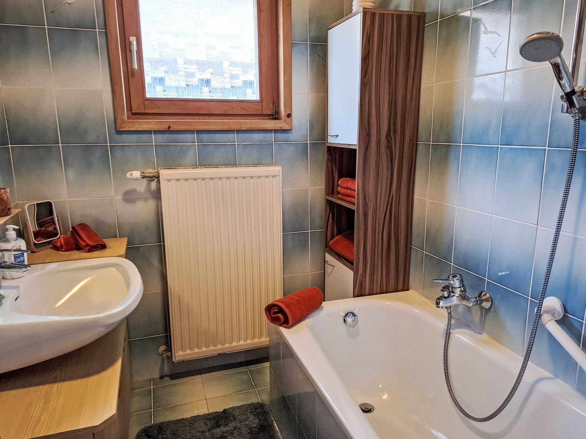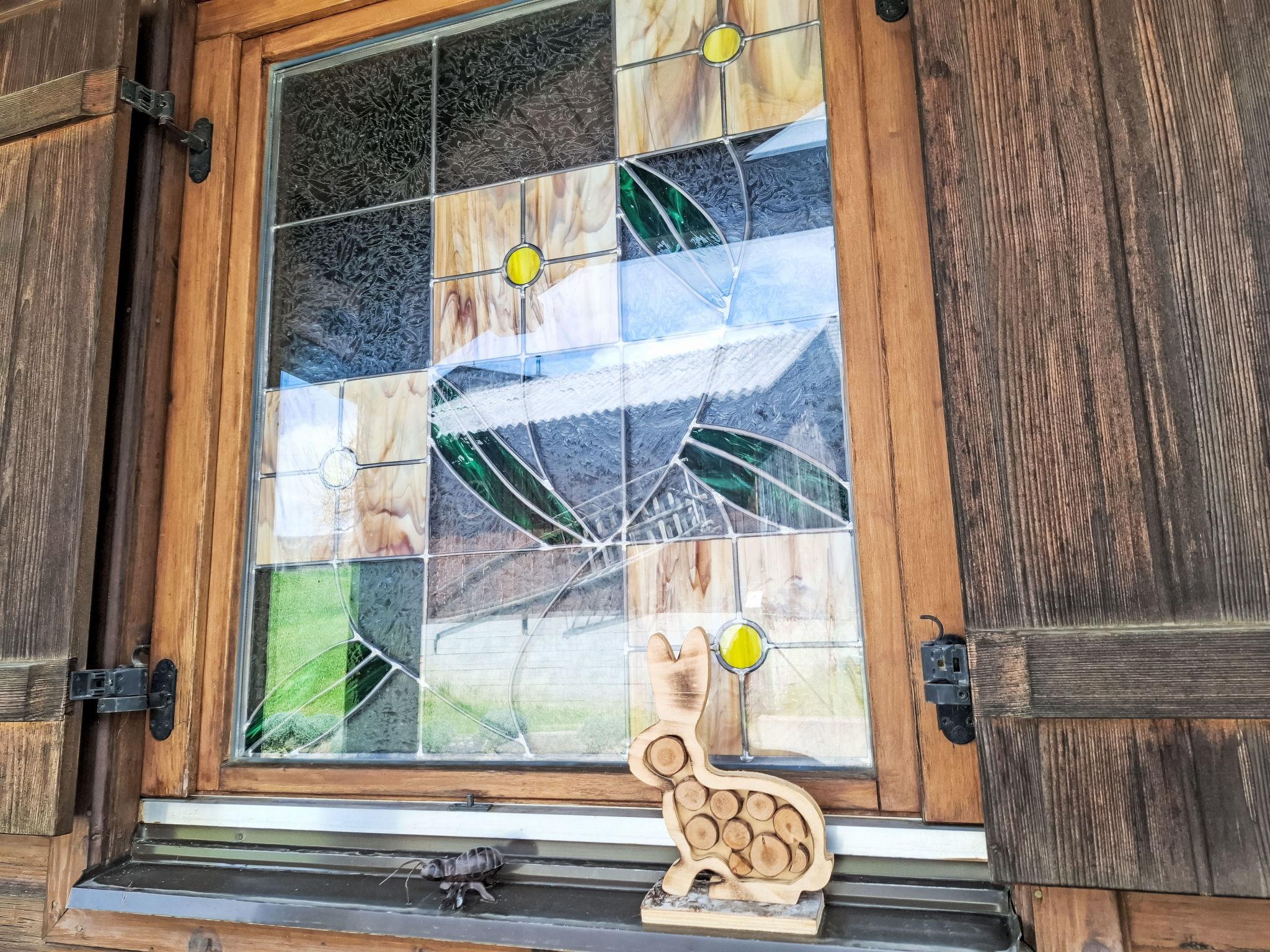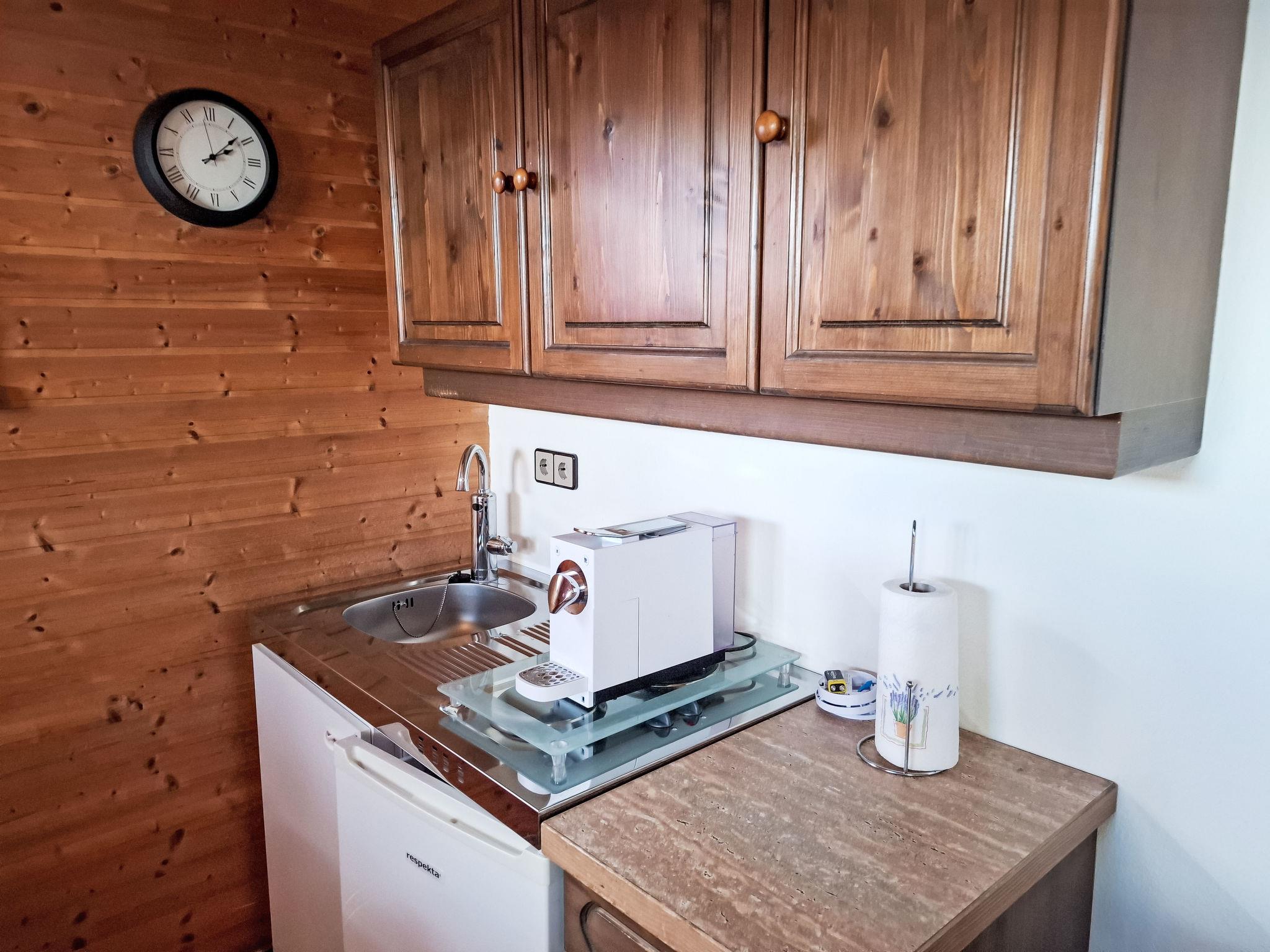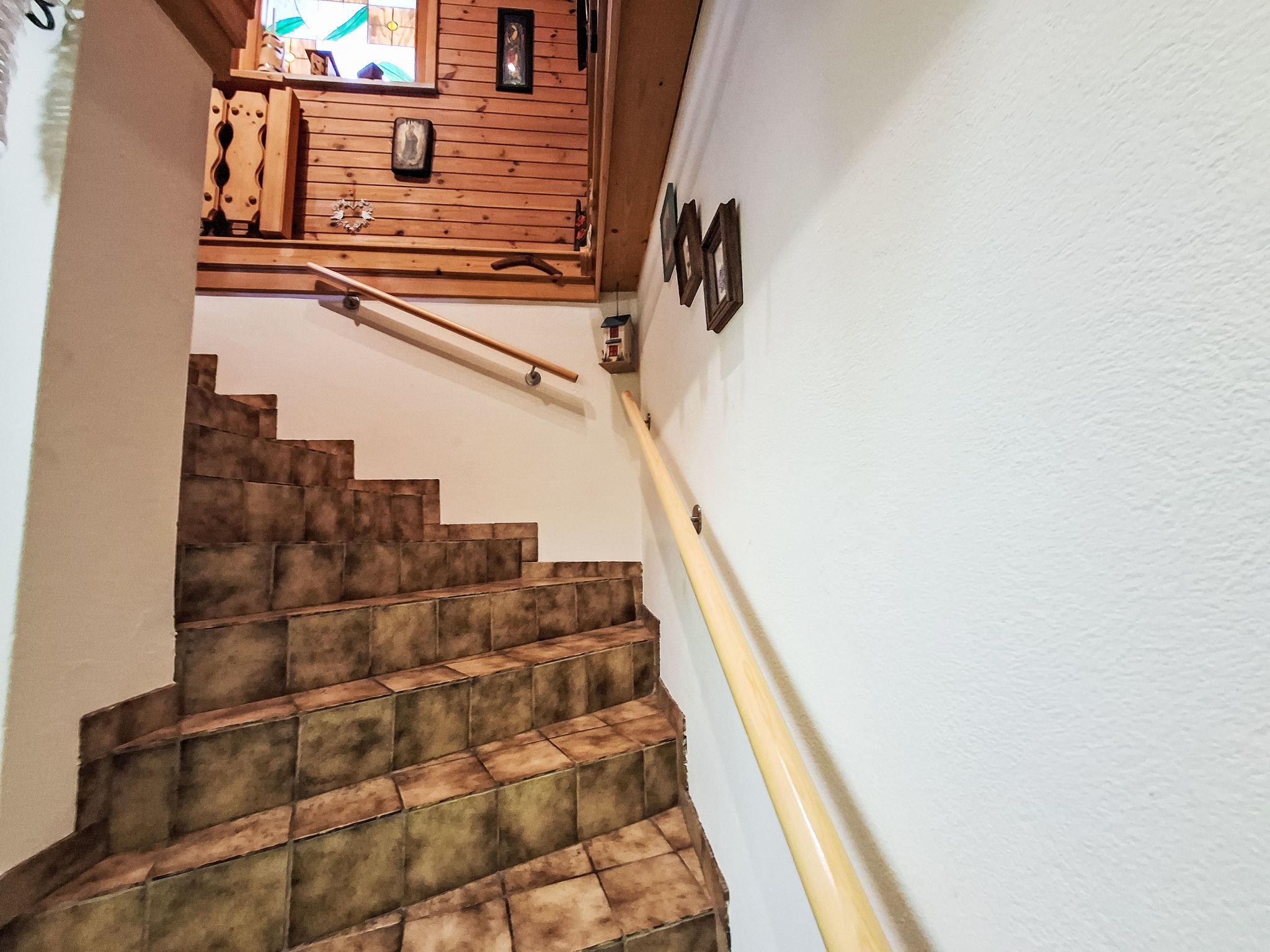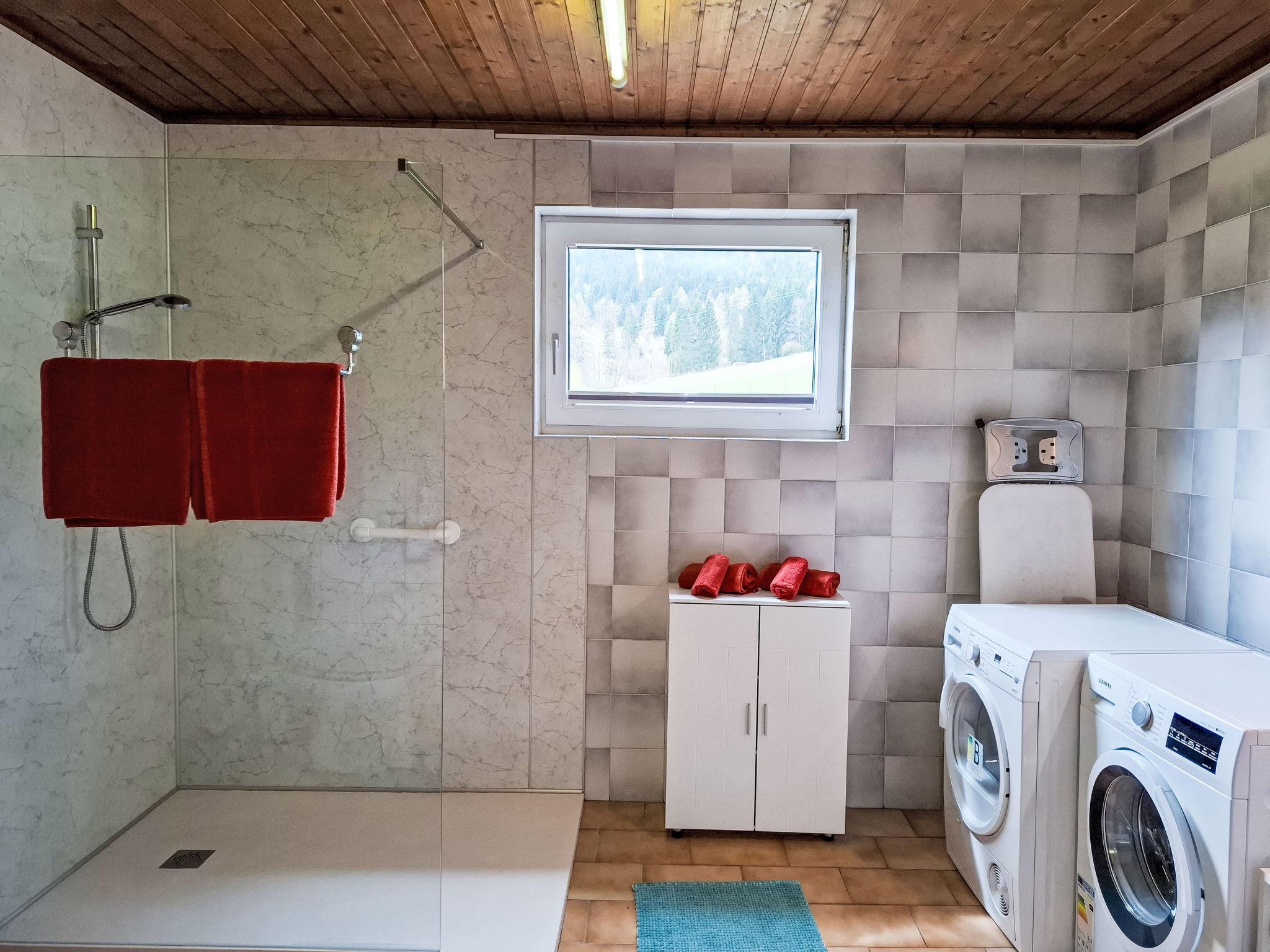 4-room house. Object suitable for 6 adults. Cosy and wooden furniture furnishings: living room with satellite TV. Exit to the balcony. 1 double bedroom with Dressing room. 1 room with 1 bed (120 cm, length 200 cm). Kitchen (oven, dishwasher, 4 ceramic glass hob hotplates, toaster, kettle, microwave, electric coffee machine, Capsules for coffee machine (Nespresso)) with dining table and wood-burning stove. Bathroom, sep. WC. Heating. Solar power. On the lower ground floor: living/sleeping room with 1 sofabed (90 cm, length 200 cm), 1 double sofabed (160 cm, length 200 cm), Scandinavian wood stove, dining nook, kitchen corner and flat screen. Exit to the terrace. Kitchenette (2 hot plates, electric coffee machine, Capsules for coffee machine (Nespresso)). Shower/WC. Wooden floors. Comfortable furnishings in the country house style. Balcony furniture. Beautiful panoramic view of the mountains. Facilities: washing machine, dryer. Internet (WiFi, free). Please note: suitable for families. Fridge without freezer, non-smoking house. Smoke alarm, fire extinguisher.