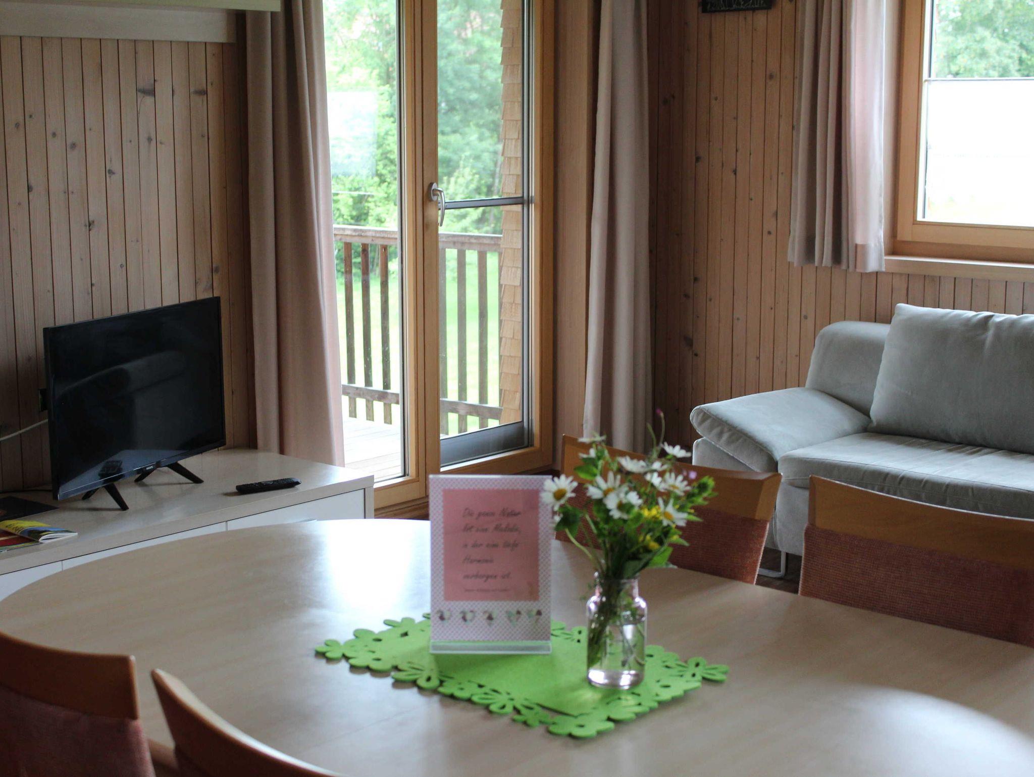 Unsere geräumige Ferienwohnung wurde mit nur Naturholz ausgebaut. Die Gäste erreichen die Wohnung über einen separaten Eingang. Von einer eigenen überdachten Terrasse aus, kann die Naturlandschaft genossen werden.