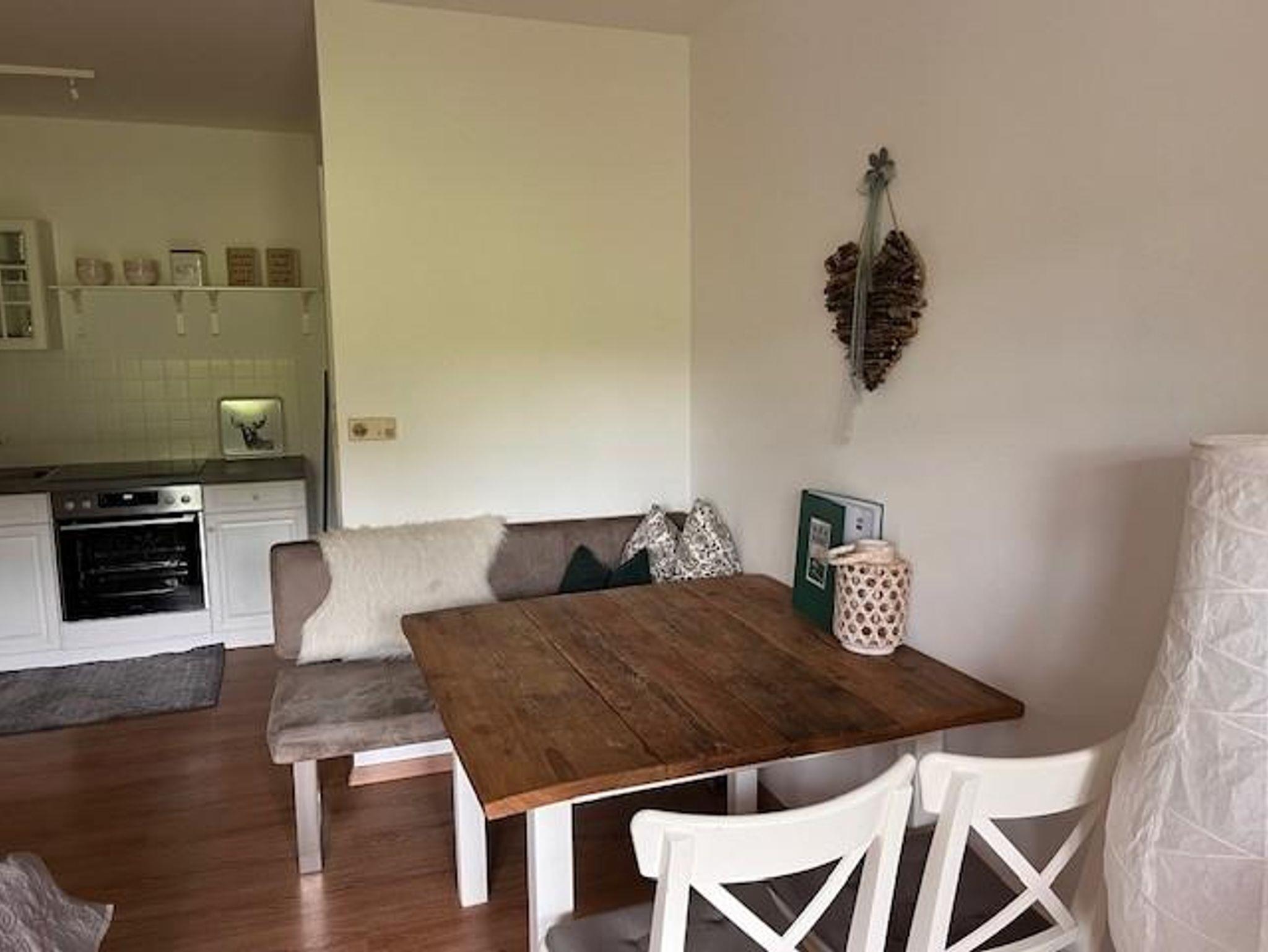Die Wohnküche ist mit einem großen Esstisch ausgestattet, hier befindet sich das 3. Bett, ein Zusatzbett für eine 4. Person (Kind 15 Jahre) wäre möglich.