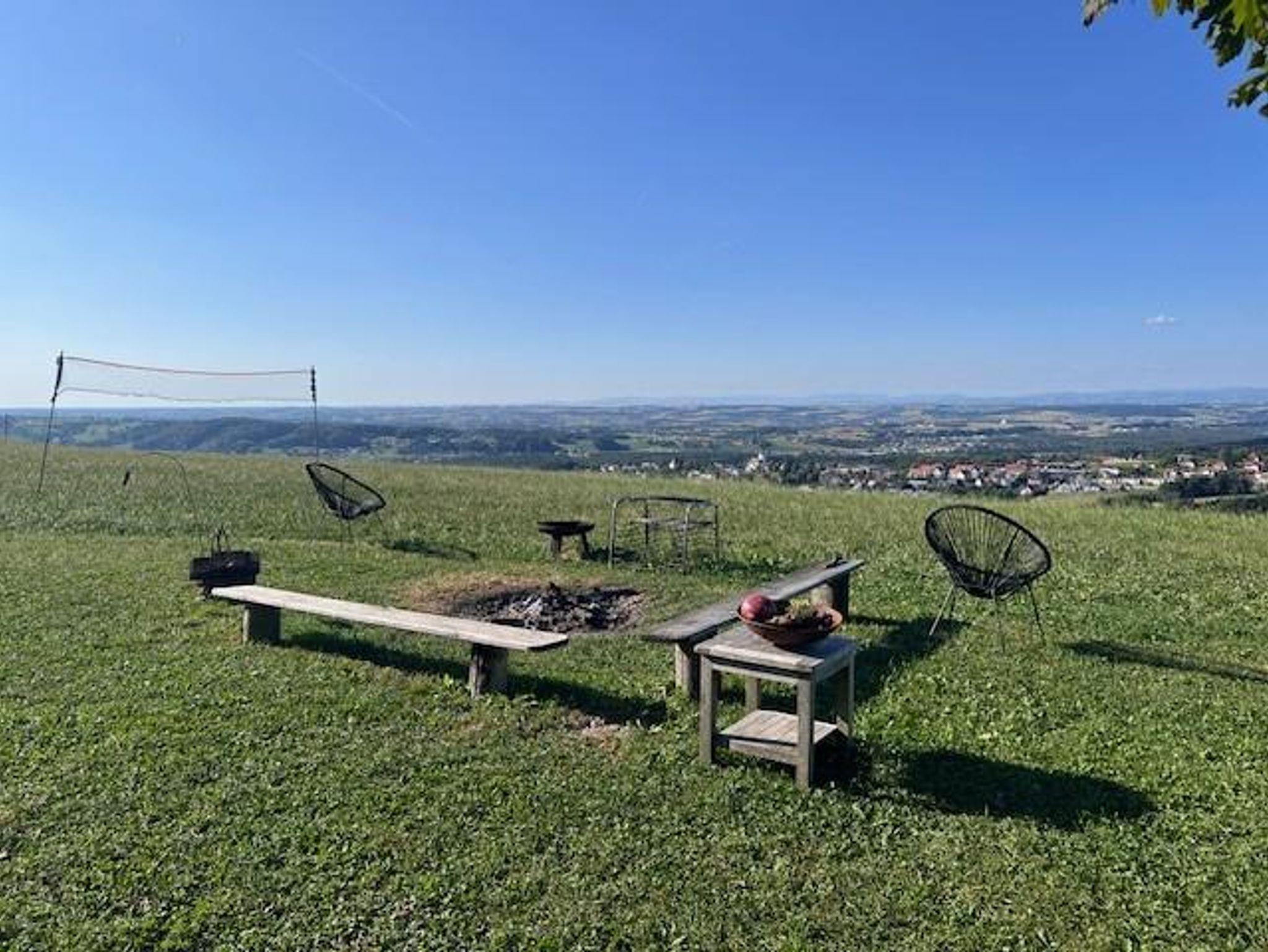 Am Haus laden Panoramapool und Grillplatz zum Entspannen ein. Ein Highlight für Abenteuerlustige ist die Himmelschaukel, die sich hoch über die Wiesen der Moststraße schwingt und einen unvergleichlichen Ausblick ermöglicht.