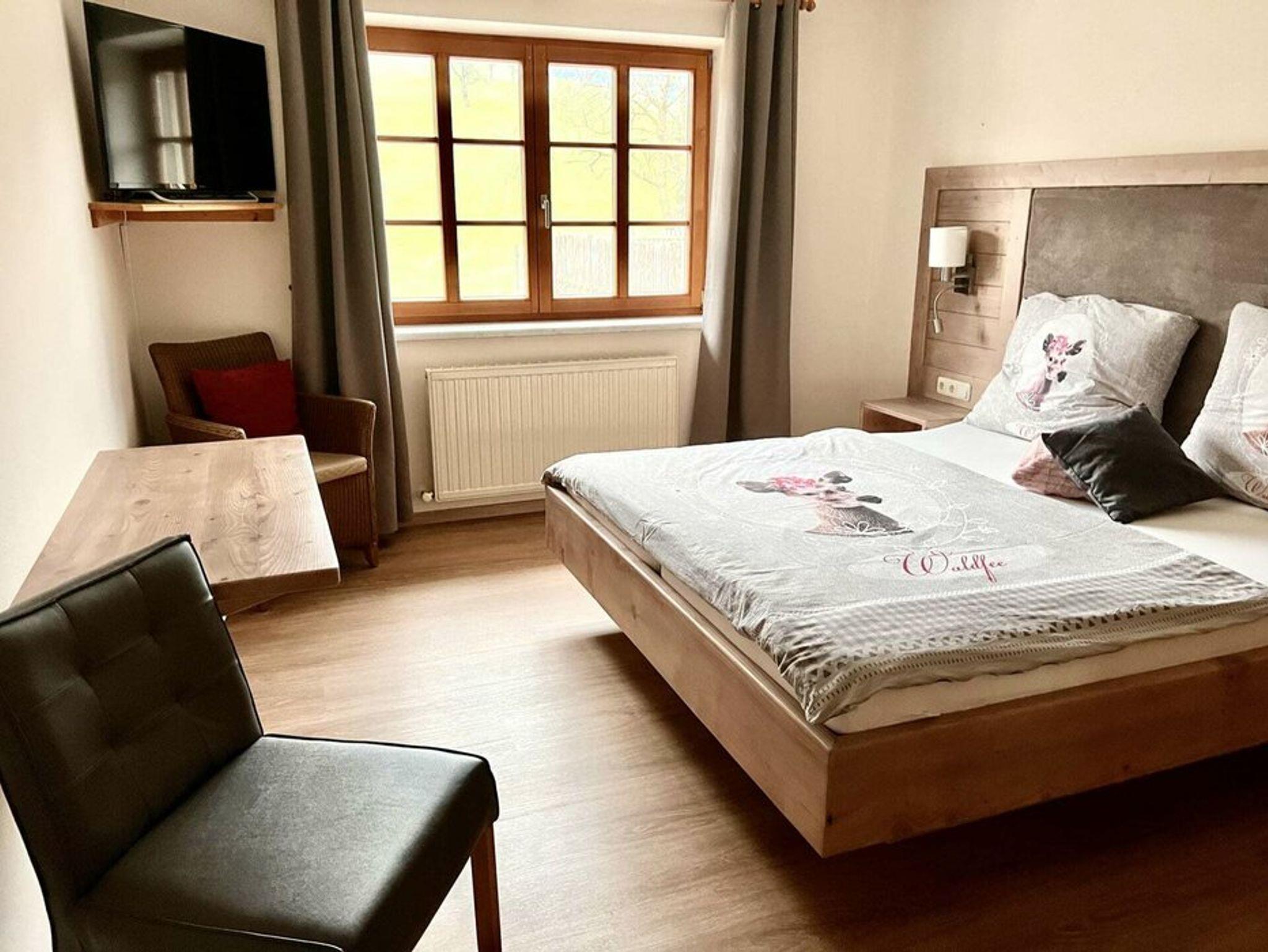 Das liebevoll eingerichtete geräumige Genießerzimmer - Apartement mit Blick auf die Hohwiesen ist mit Balkon und herrlichem Blick ins Grüne. Das Apartment ist mit Vollholzmöbel ausgestattet und wirkt sehr wohnlich.
