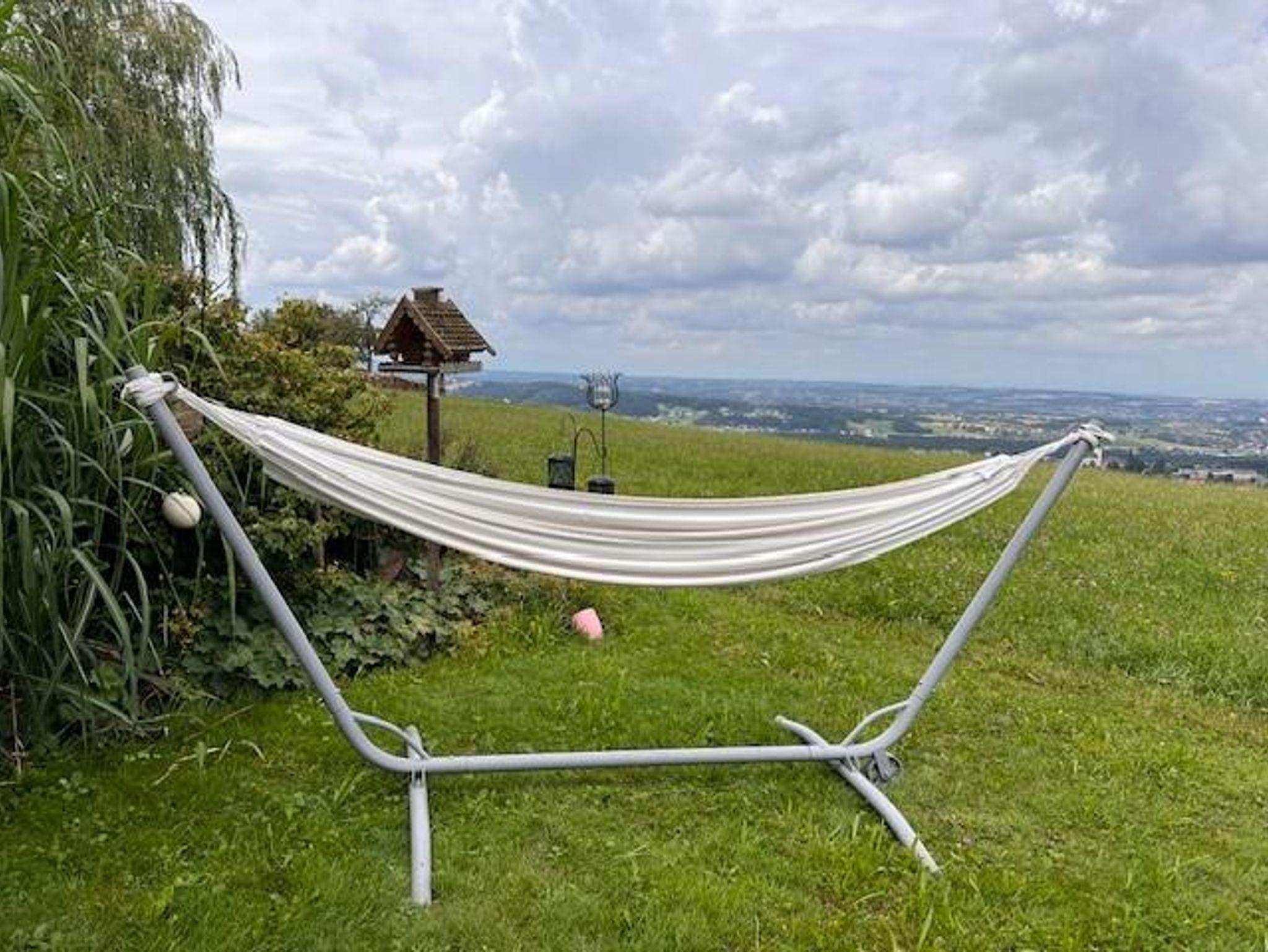 Am Haus laden Panoramapool und Grillplatz zum Entspannen ein. Ein Highlight für Abenteuerlustige ist die Himmelschaukel, die sich hoch über die Wiesen der Moststraße schwingt und einen unvergleichlichen Ausblick ermöglicht.