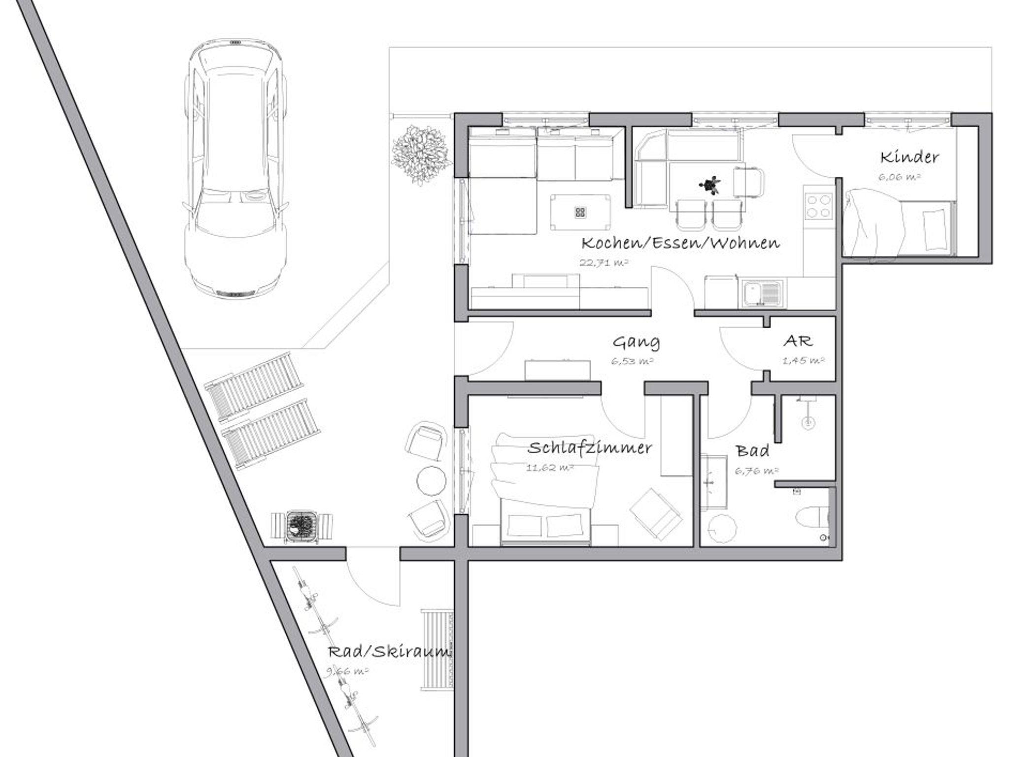 Ein überdachter Autoabstellplatz sowie ein eigener Abstellraum stehen Ihnen selbstverständlich zur Verfügung. Im Winter nutzen Sie diesen als Skiraum mit beheiztem Schuhtrockner, im Sommer bietet er ausreichend Platz für Fahrräder und Sportausrüstung. Für E-Bikes steht zudem eine Lademöglichkeit zur Verfügung.