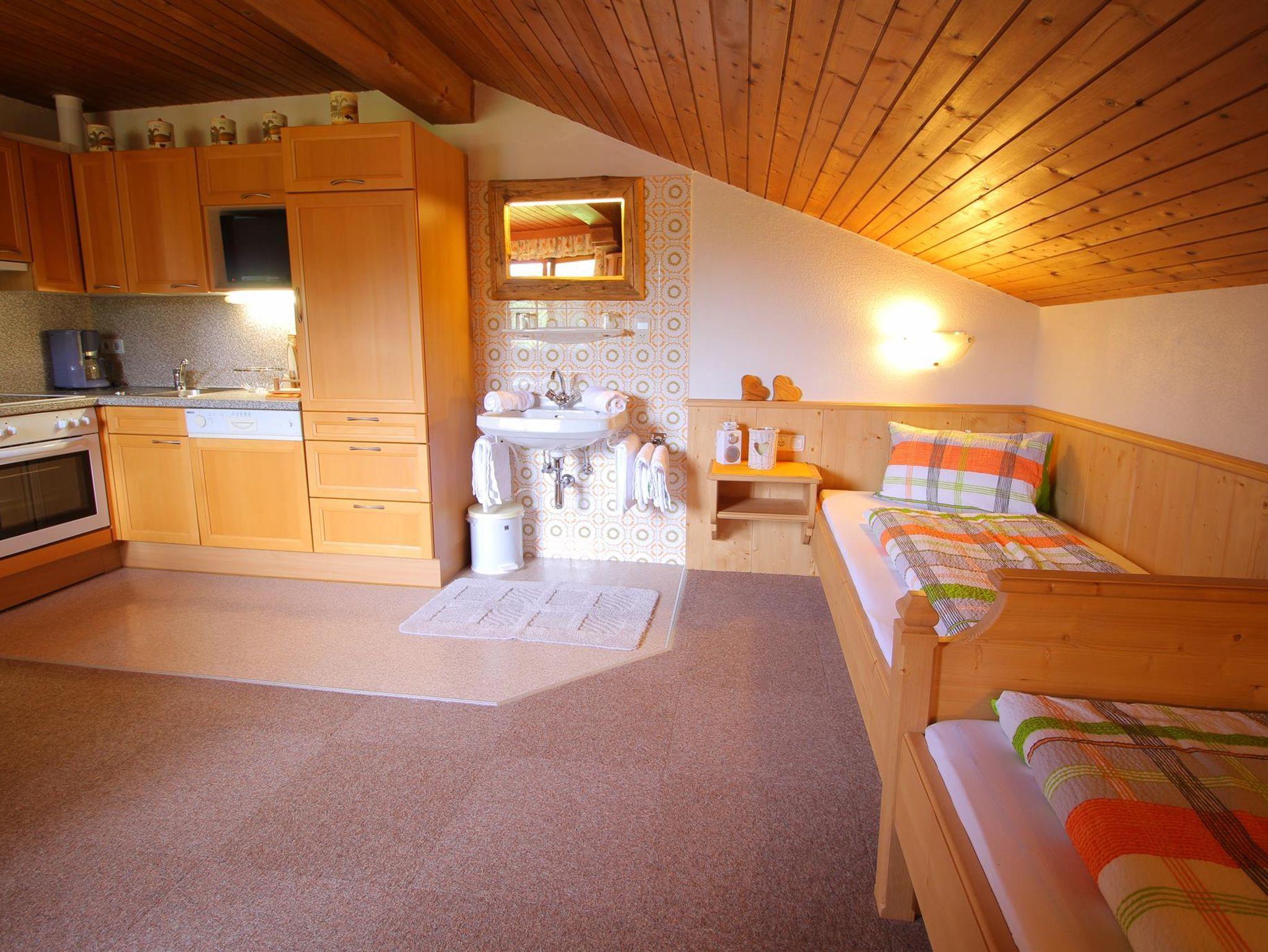 Die Ferienwohnung, die sich über ca. 120 m² erstreckt, befindet sich im Dachgeschoss des Hauses (2. Stock), das durch eine Treppe zu erreichen ist. Das geräumige Apartment im Heachhof bietet einen Ost-Balkon (+ Sitzgelegenheiten) mit Berg-/Talblick.