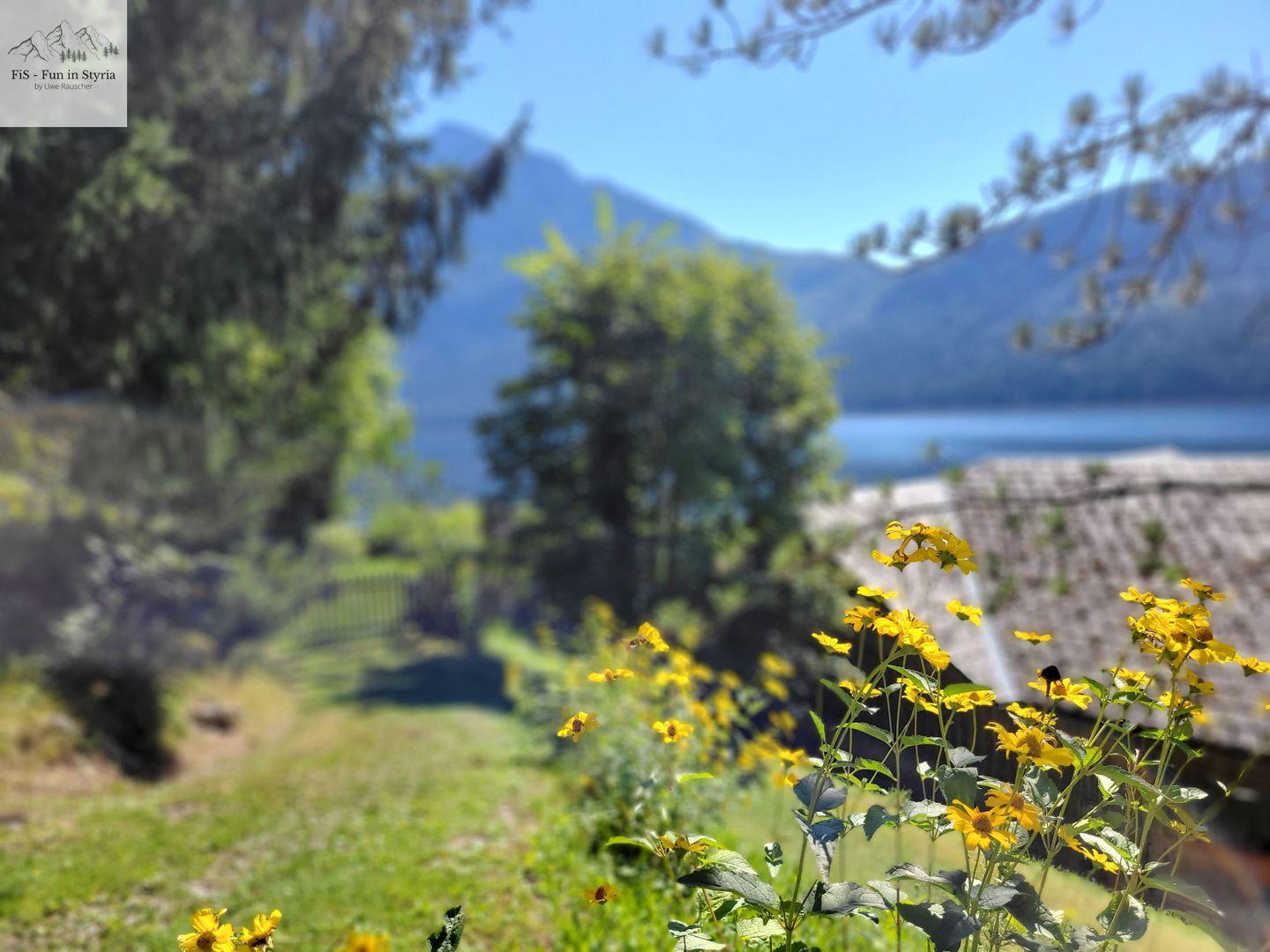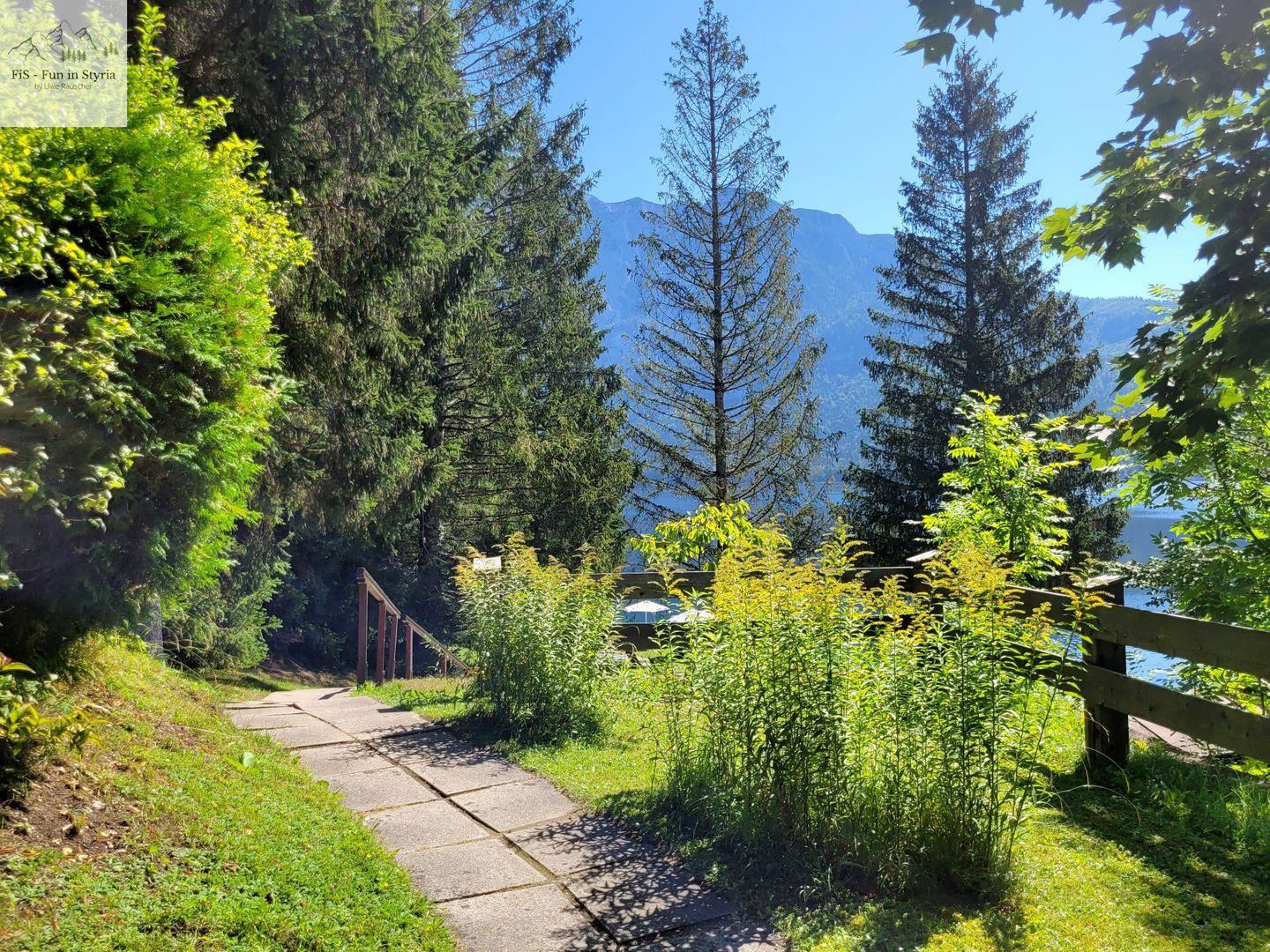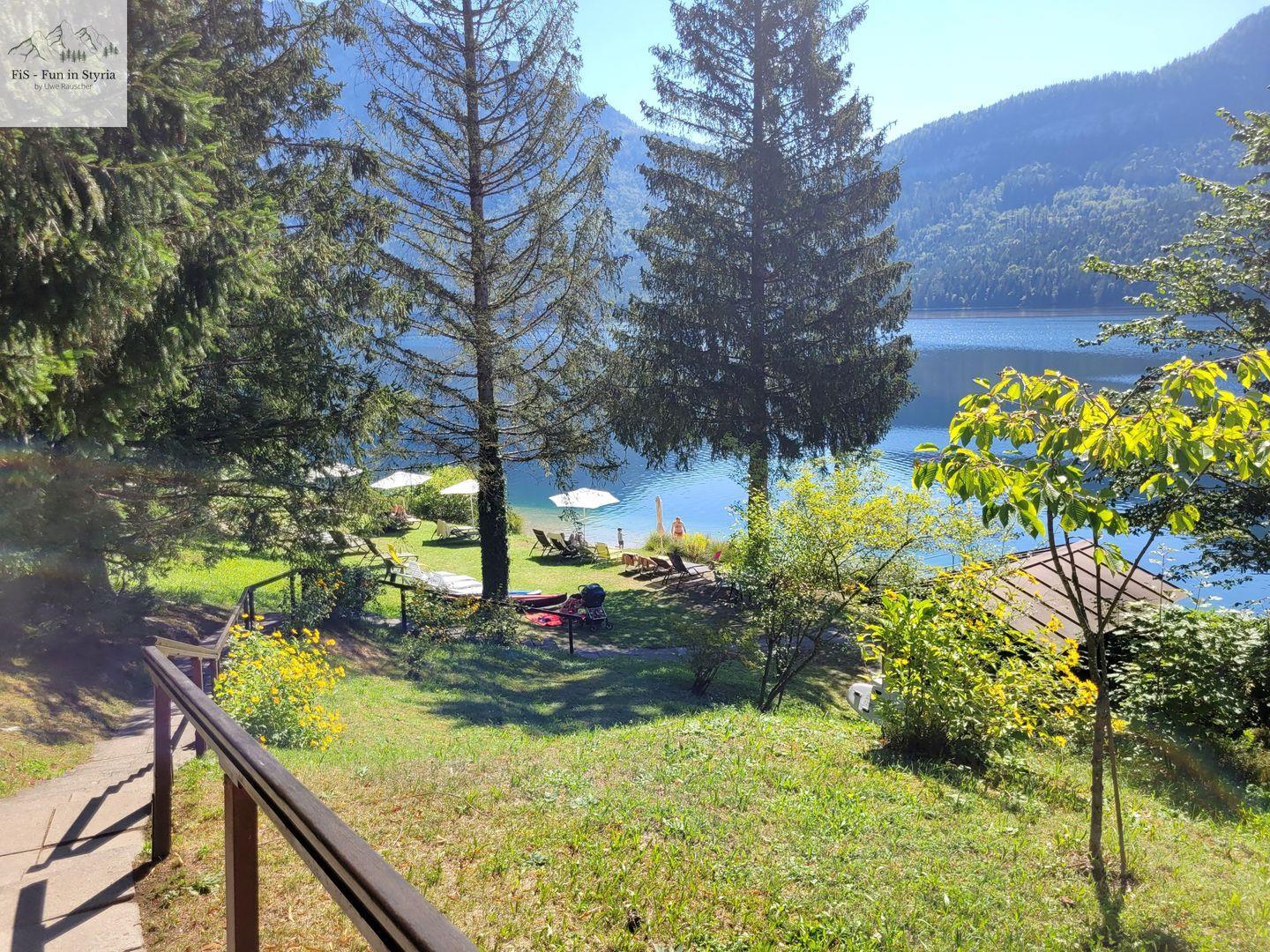 Ein besonderes Highlight ist der geschlossene, überdachte Balkon, von dem Sie einen außergewöhnlich guten Ausblick auf den See, die Berge, das Tal und die umliegende Landschaft genießen. Der gepflegte Garten mit Liegewiese und Sonnenliegen lädt zum Verweilen ein. Hier können Sie entspannen, während Sie den Blick aufs Wasser oder die Alpenkulisse schweifen lassen. Der Zugang zum Steg und die Lage in erster Reihe zum steinigen Strand sorgen für unmittelbares Badevergnügen am Altausseer See – nur etwa zehn Meter entfernt. Auch Aktivitäten wie Angeln, Bootsmiete oder Kanufahren sind in unmittelbarer Nähe möglich.