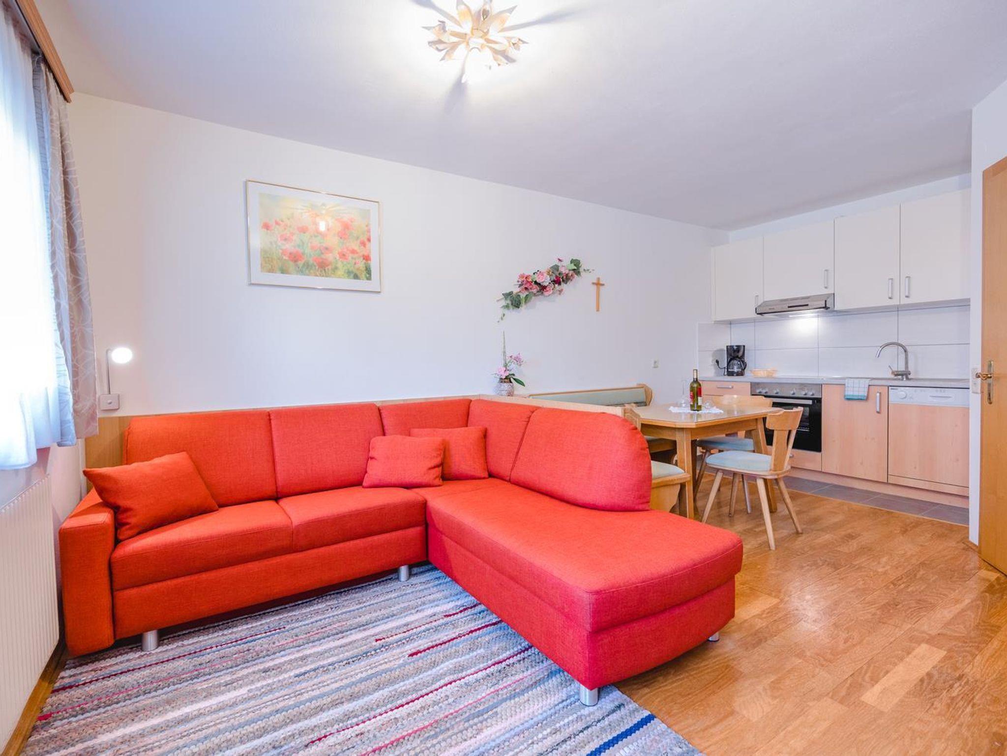 Gemütlich wohnen in Appartements für 2-8 Personen, mit bis zu 3 Schlafzimmern, teilweise mit Kachelofen und Balkon mit Bergblick, gratis Wlan. Im Winter 3x wöchtentlich Saunaabend im Haus. Die zentrale, aber doch ruhige Lage, garantiert eine sehr gute Erreichbarkeit der umliegenden Skigebiete und ist gleichzeitig perfekter Start für Ihre Wanderungen in den Bergen. Unsere Produkte aus der eigenen Landwirtschaft, wie frische Milch, Eier und vieles mehr liefern wir gerne ins Haus.