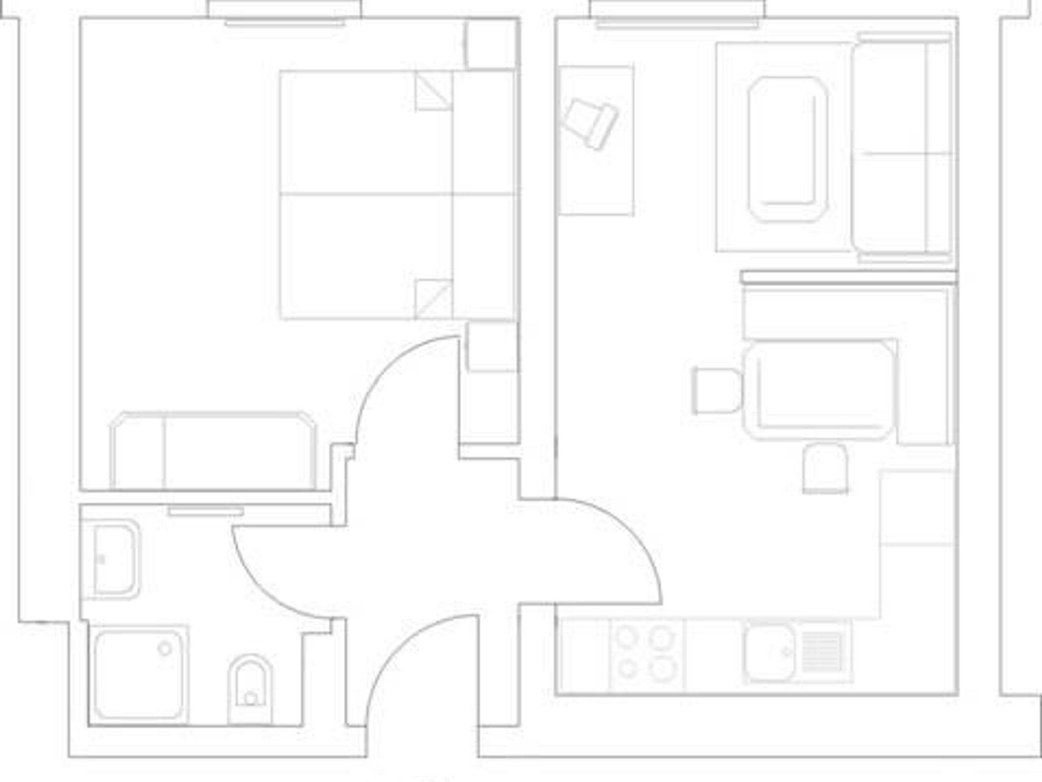 Appartement 1 Schlafzimmer 1 Kinderzimmer 1 Wohnschlafzimmer mit Küche