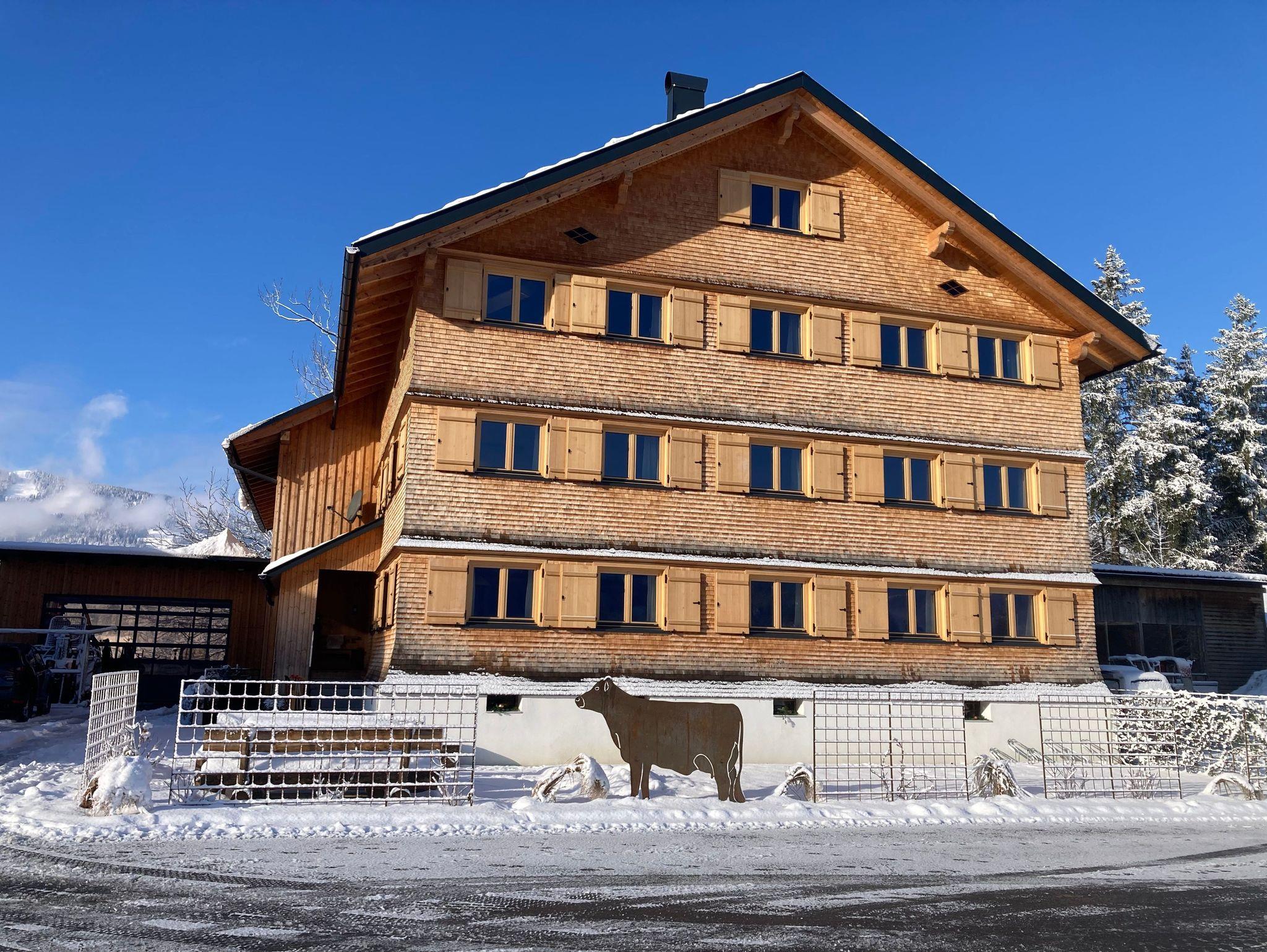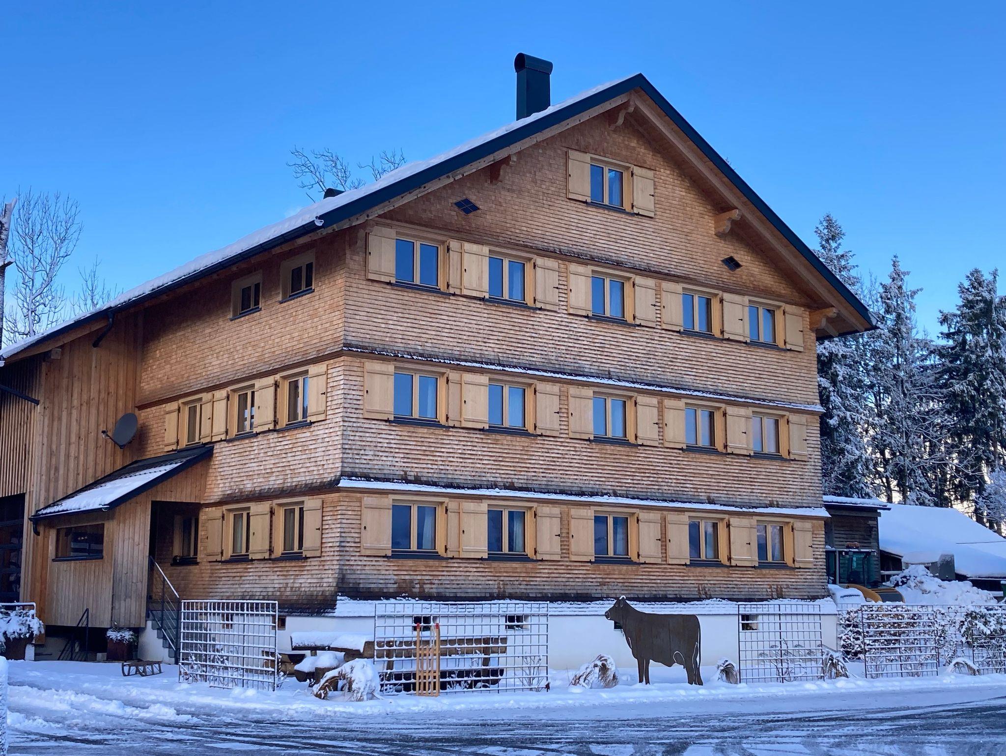 Gradlinige Eleganz verbunden mit Bregenzerwälder Charme!! Seit Winter 2023 begrüßen wir Sie in unseren neuen Bregenzerwälder Appartements in Andelsbuch im Bregenzerwald. Urlaub in der Natur. Mit der Natur- und Bergwelt vor der Haustüre fällt das Entspannen besonders leicht. Profitieren sie von der Lage der Ferienwohnung neben Wiesen und Wäldern im Feriendorf Andelsbuch. Berge zum Greifen nah und der Bregenzerwald zum Staunen schön-das Dorf Andelsbuch im Bregenzerwald hält faszinierende Natur-, Architektur-und Kulturerlebnisse für sie bereit! Nach intensiver Bauzeit, viel Engagement und Liebe zum Detail, hoffen wir das unsere Gäste es genau so schätzen wie wir und bei uns schöne Urlaubstage verbringe können. Genießen Sie die großzügige Raumaufteilung, sowie die Atmosphäre der Vollholzausstattung im modernen, puristischen Stil, die ein einladendes Ambiente zaubern. Unsere Appartements wurden komplett neu in traditioneller Bregenzerwälder Holzbauweise errichtet. Speziell auch die Architektur der Außenfassade wurde stilgerecht nachgebaut. Im Garten befinden sich eine Grillmöglichkeit mit einer großen Sitzecke für schöne Stunden mit euren Lieben. Wir haben auch das Hinterhaus , das Stallgebäude komplett neu errichtet dieses steht von Mai bis November leer steht weil unsere Kühe auf der Alm sind. Von November bis Mai sind unsere Tier im Tal und dürfen gerne mit Absprache vom Hausherr besucht werden. Auch freut es uns ihnen, wenn die Tiere da sind, täglich eine frische Kuhmilch anbieten zu können. Herrliche Wanderungen Bike-Paradies Bregenzerwald: Mountainbike-,E Bike- Routen, Rennrad herrliche Wanderungen im Sommer& Winter Badespaß an der Bregenzerache Paragleiter und Wandergebiet sowie Skigebiet auf unserem Hausberg der Niedere mit Pisten für Familien, weitere Skigebiete innerhalb einer Viertelstunde! URLAUB DAS GANZE JAHR