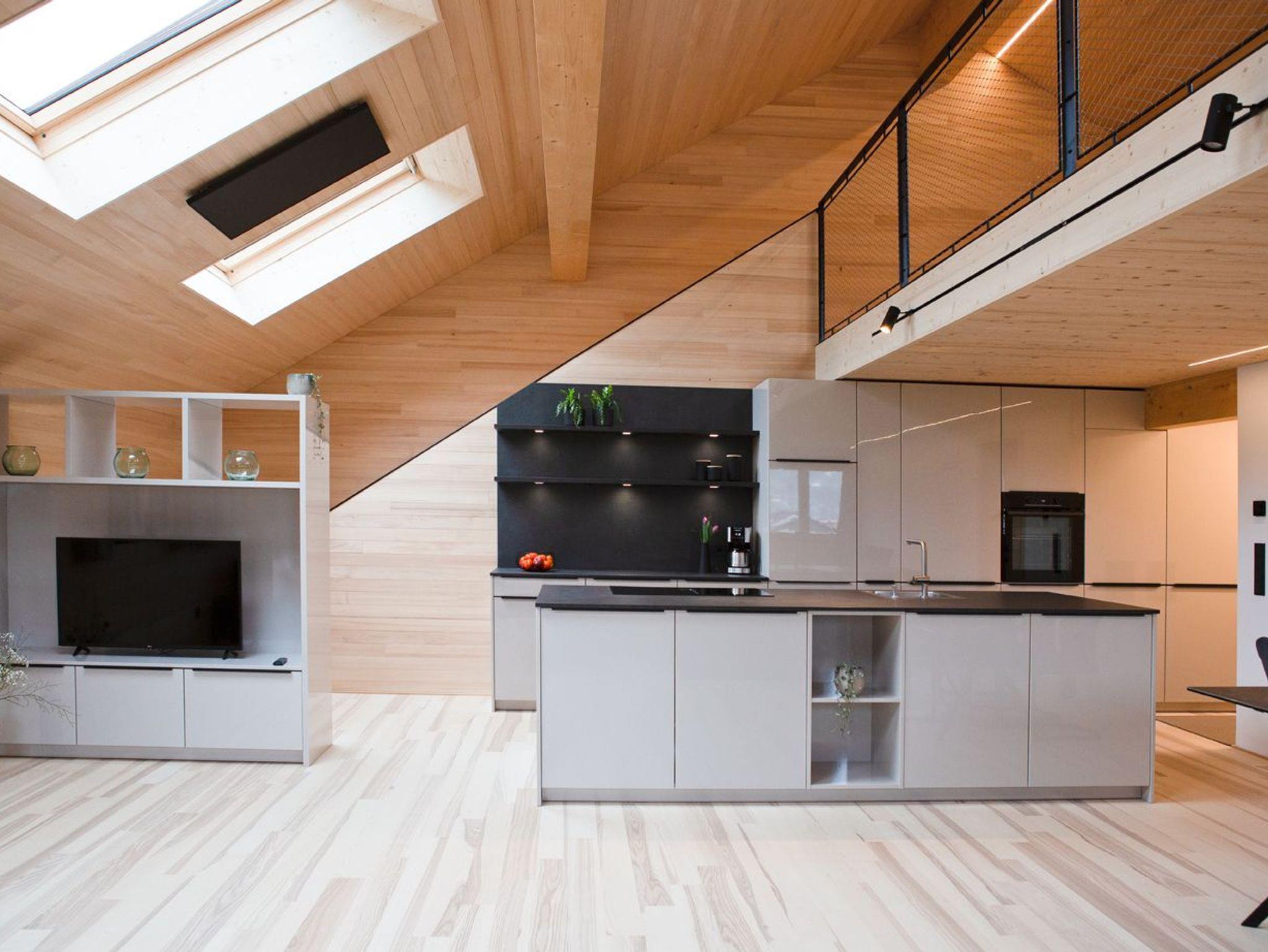 Das Appartement befindet sich im 2. Stock des Hauses und ist ein Loft bis ins Dachgeschoss. Auf der Südseite gelegen präsentiert es einen atemberaubenden Panoramablick über den Bregenzerwald. Mit rund 150 Quadratmeter bietet das stilvolle Appartement die Gelegenheit, die Seele baumeln zu lassen.