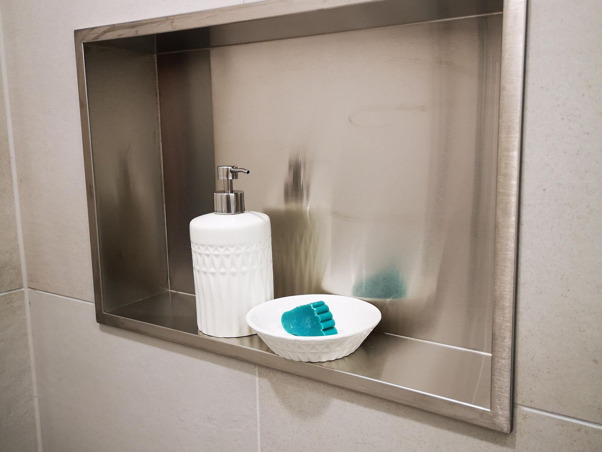 Das moderne Badezimmer hat eine bodengleiche Dusche, einen gut beleuchteten Spiegel und genügend Ablageflächen für Ihren Komfort. Selbstverständlich sind ein Haarföhn und flauschige Handtücher für Sie vorbereitet.