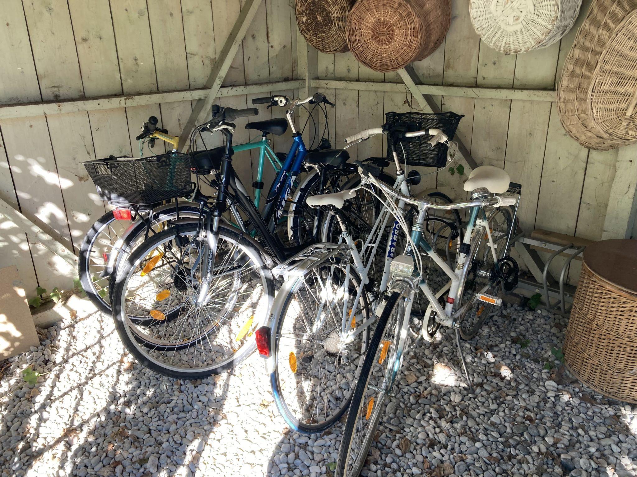 There are several sun loungers, parasols, a barbecue and a romantic outdoor fireplace. Five bicycles are available for excursions in the surrounding area. Up to two cars can be parked one behind the other in the carport.