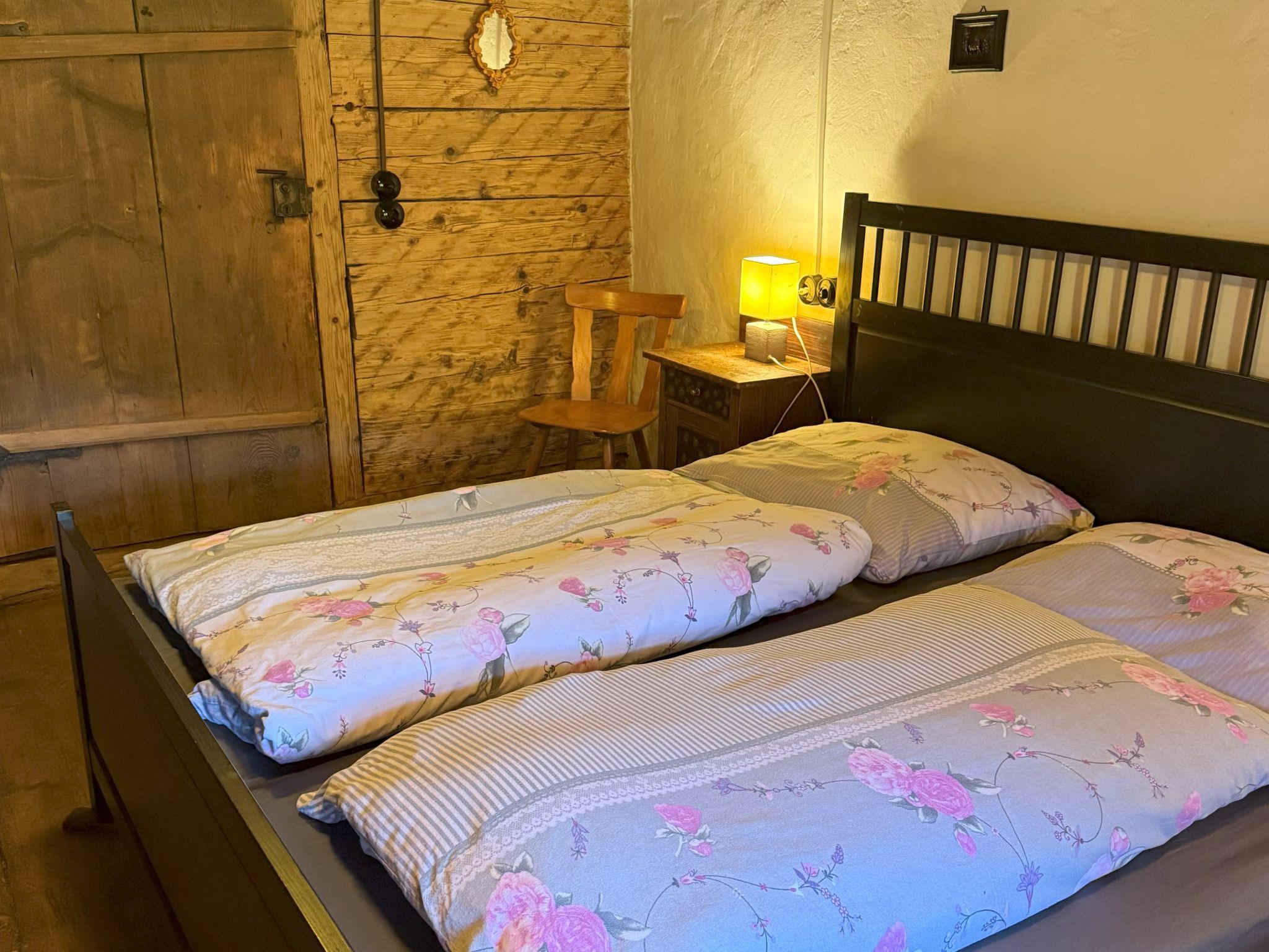 "Schipplbadstube", 5-room house. Comfortable furnishings: entrance hall. Dining room with dining table and wood-burning stove. Living room with TV. Open kitchen (oven, 4 ceramic glass hob hotplates, toaster, kettle, microwave, electric coffee machine). Shower/WC, double hand-basin. Electric heating, wood heating. Upper floor: 2 rooms, each room with 1 bed and 1 double bed. 1 room with 1 x 3 bunk beds. Terrace. Terrace furniture. Beautiful view of the mountains. Facilities: washing machine, logs (free). Please note: non-smokers only. Smoke alarm. The house is approximately 400 years old and open fires are strictly prohibited inside and outside. A small stream borders the property, along with a quiet spot for yoga or meditation. In heavy snowfall, the last 300 meters may only be accessible on foot. No Wi-Fi. 50203-050020-2020