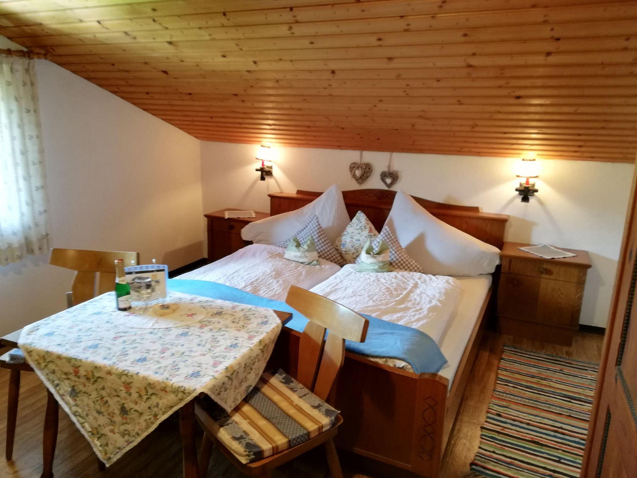 Unsere Ferienwohnung für 4 Personen in der Größe von 35m² besteht aus einem Schlafzimmer, einer Küche mit Sitzecke, Sat-TV + CD-Radio und einer Dusche/WC. Frühstück auf Wunsch ist möglich. Weiters stehen 2 Doppelzimmer mit Dusche zur Verfügung.