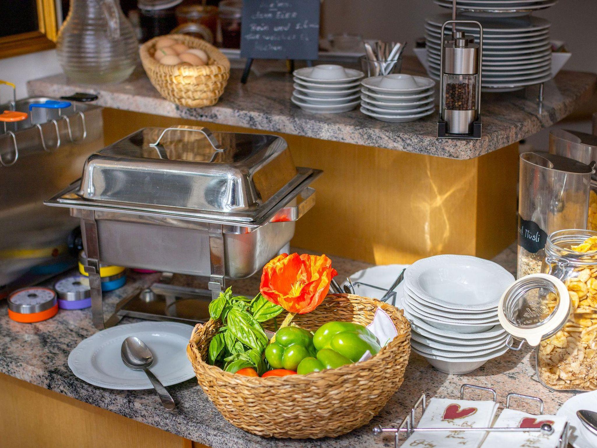 Gegen Aufpreis steht natürlich auch unseren Apartment Gästen das großzügige Frühstücksbuffet mit regionalen Produkten zur Verfügung.