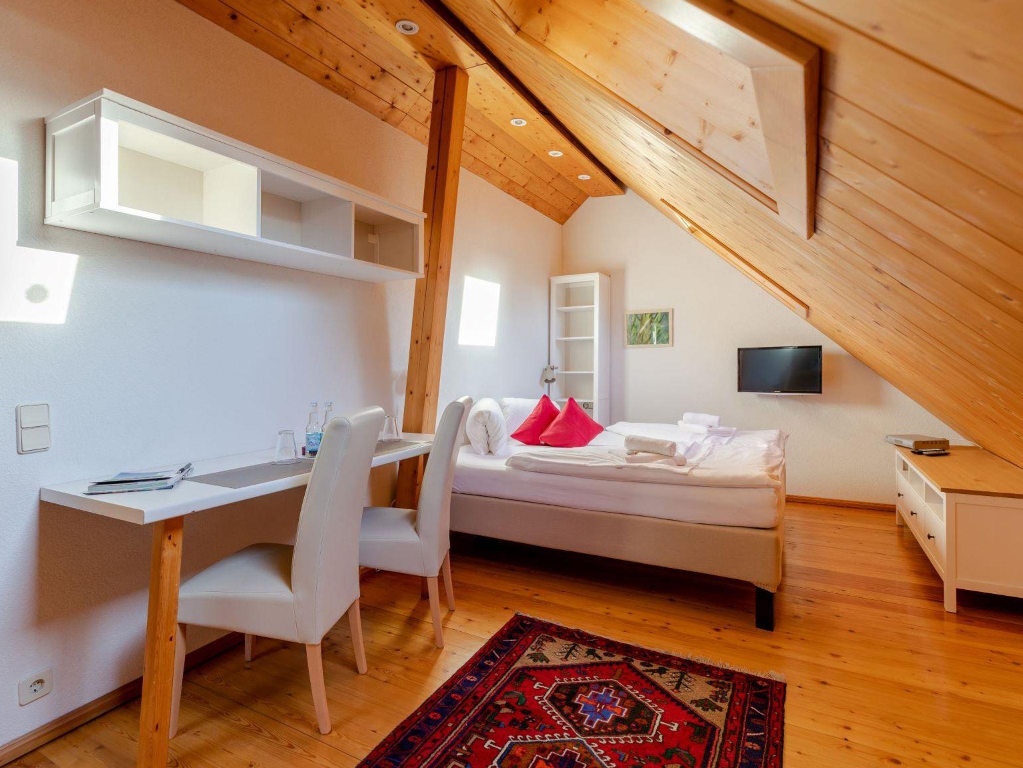 Das Studio Gartenhaus mit 30m² bietet für 2 Personen einen kleinen, aber feinen Platz im in unserem Gartenhaus und ist bei Paaren sehr beliebt. Es gibt einen Wohn-, Schlafraum mit einer umfassend ausgestatteten Küchenzeile sowie ein getrennt begehbares Badezimmer mit Dusche und WC. Besonders beliebt für romantische Stunden ist die ruhig gelegene Terrasse des Studios. Gegen Aufpreis steht natürlich auch unseren Gartenhaus-Gästen das großzügige Frühstücksbuffet mit regionalen Produkten zur Verfügung.