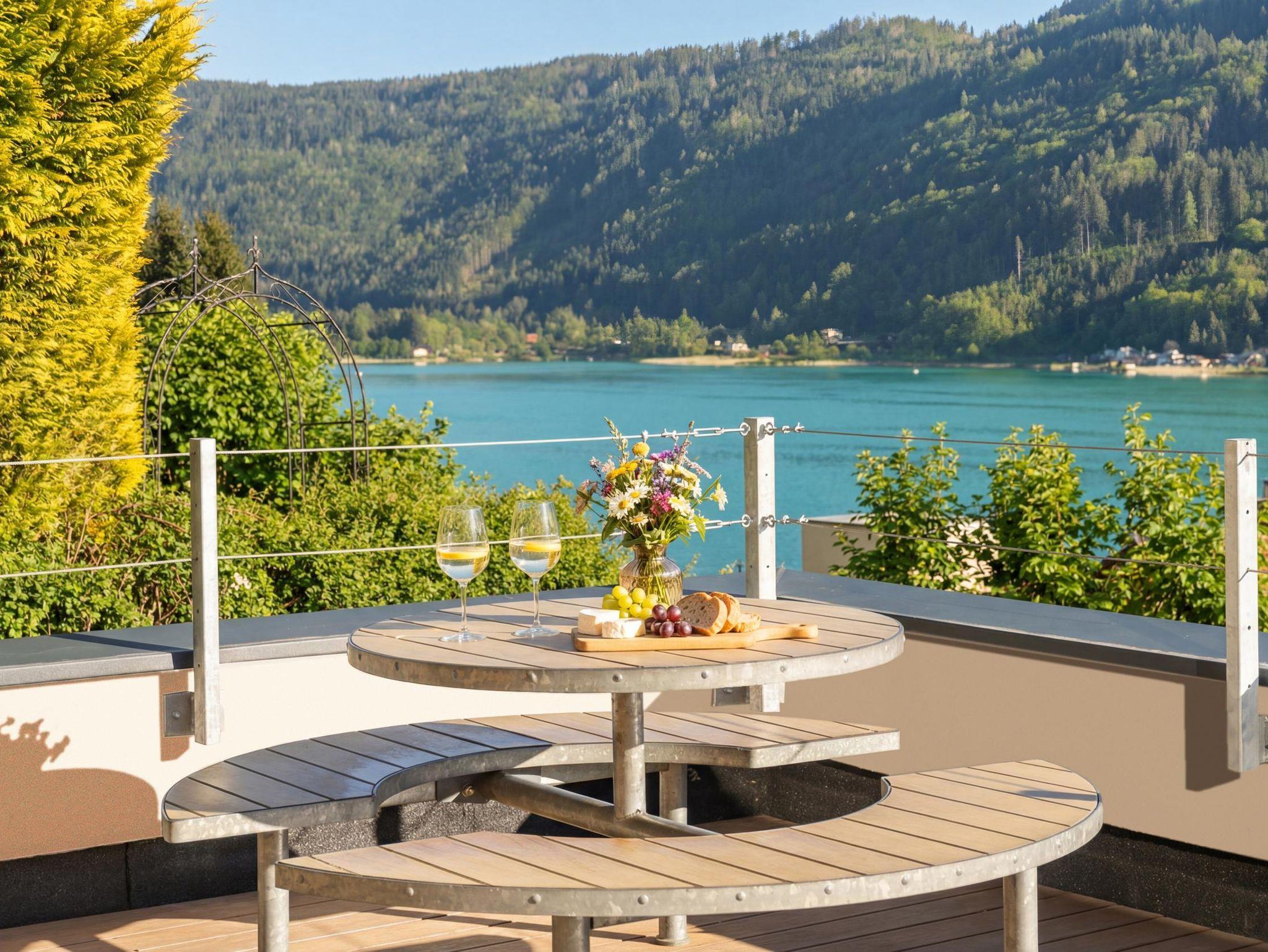 Das Highlight ist die rund 20?m² große private Terrasse mit Loungemöbel und Essbereich – perfekt, um Sonne und frische Luft zu genießen oder einfach in Ruhe zu entspannen. Das Apartment befindet sich im Erdgeschoß mit östlichem und westlichen Seeblick. WLAN, TV, Küchenausstattung, Föhn, Bettwäsche und Handtücher sind im Preis inbegriffen.