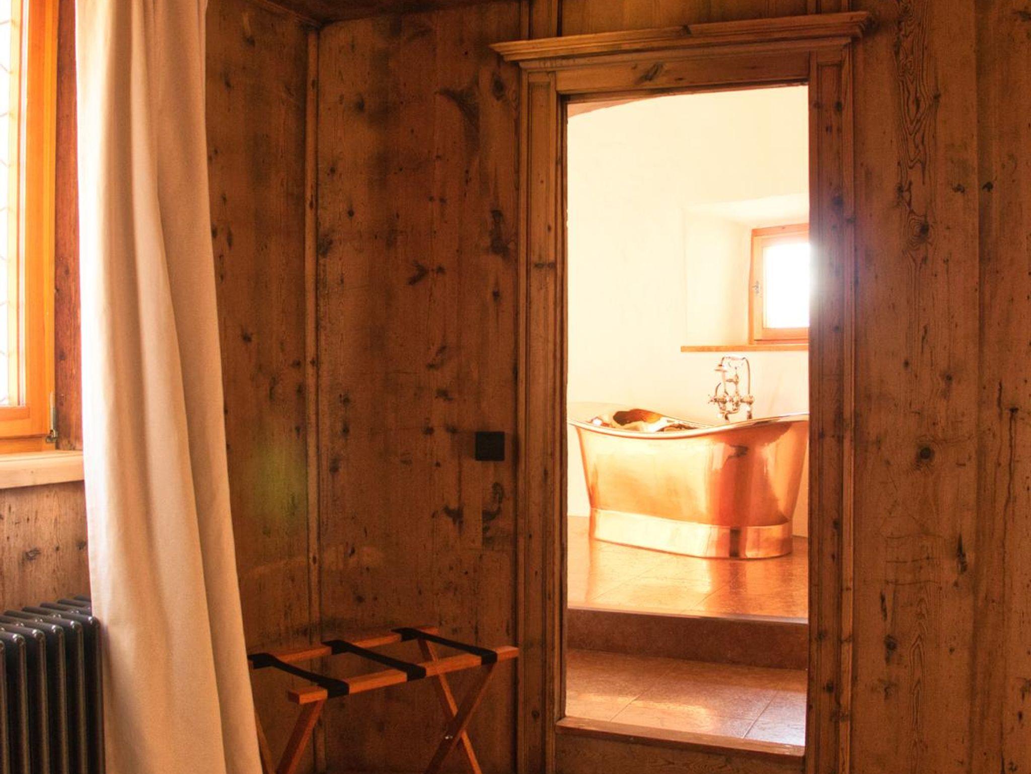 Die große Fürstensuite verzaubert durch die antike Täfelung und das traumhafte Turmbad mit freistehender Kupferwanne. Fühlen Sie sich wie in eine andere Zeit versetzt und genießen Sie den Luxus dieser großen Ferienwohnung im Schloss Anras.