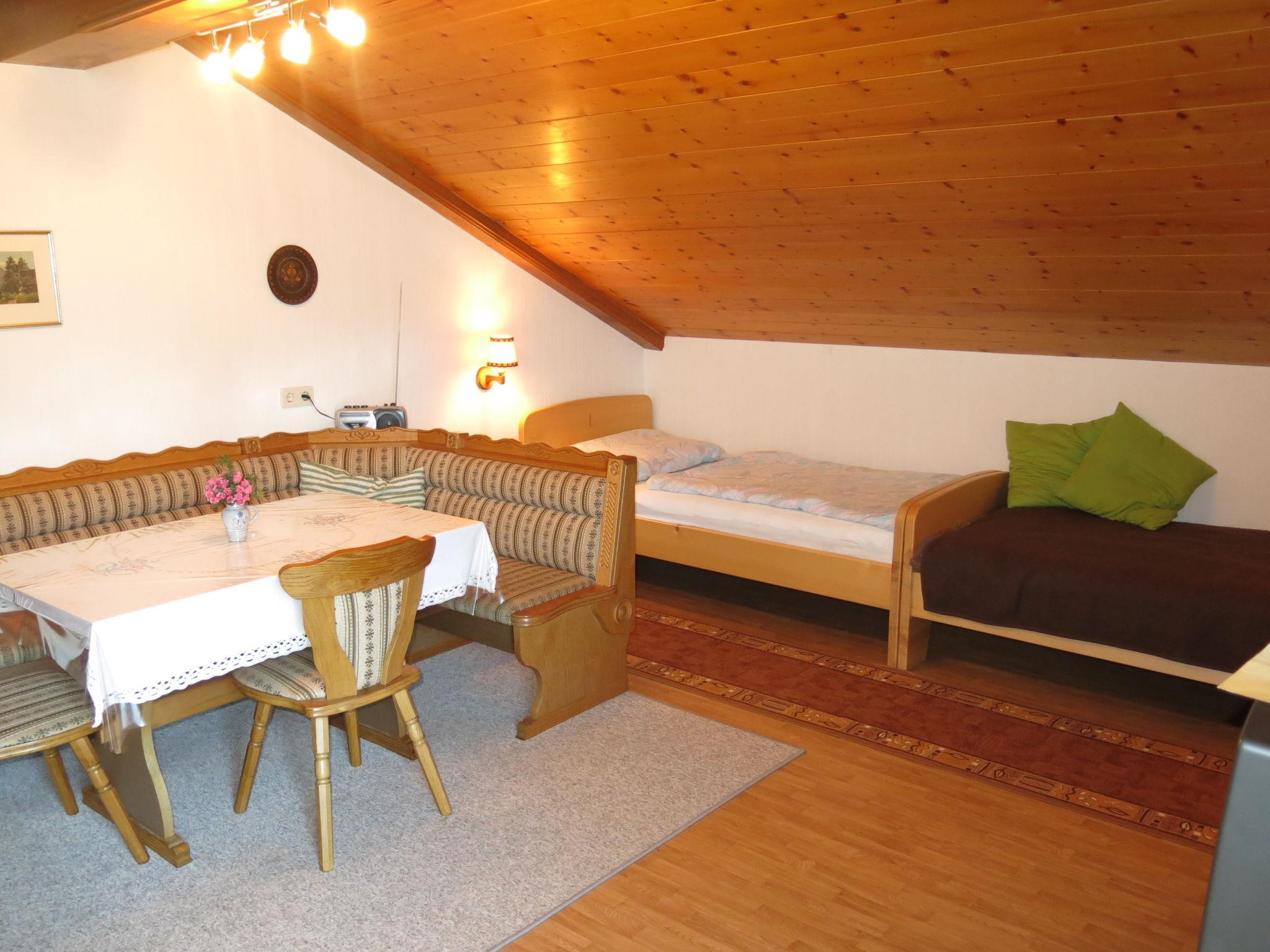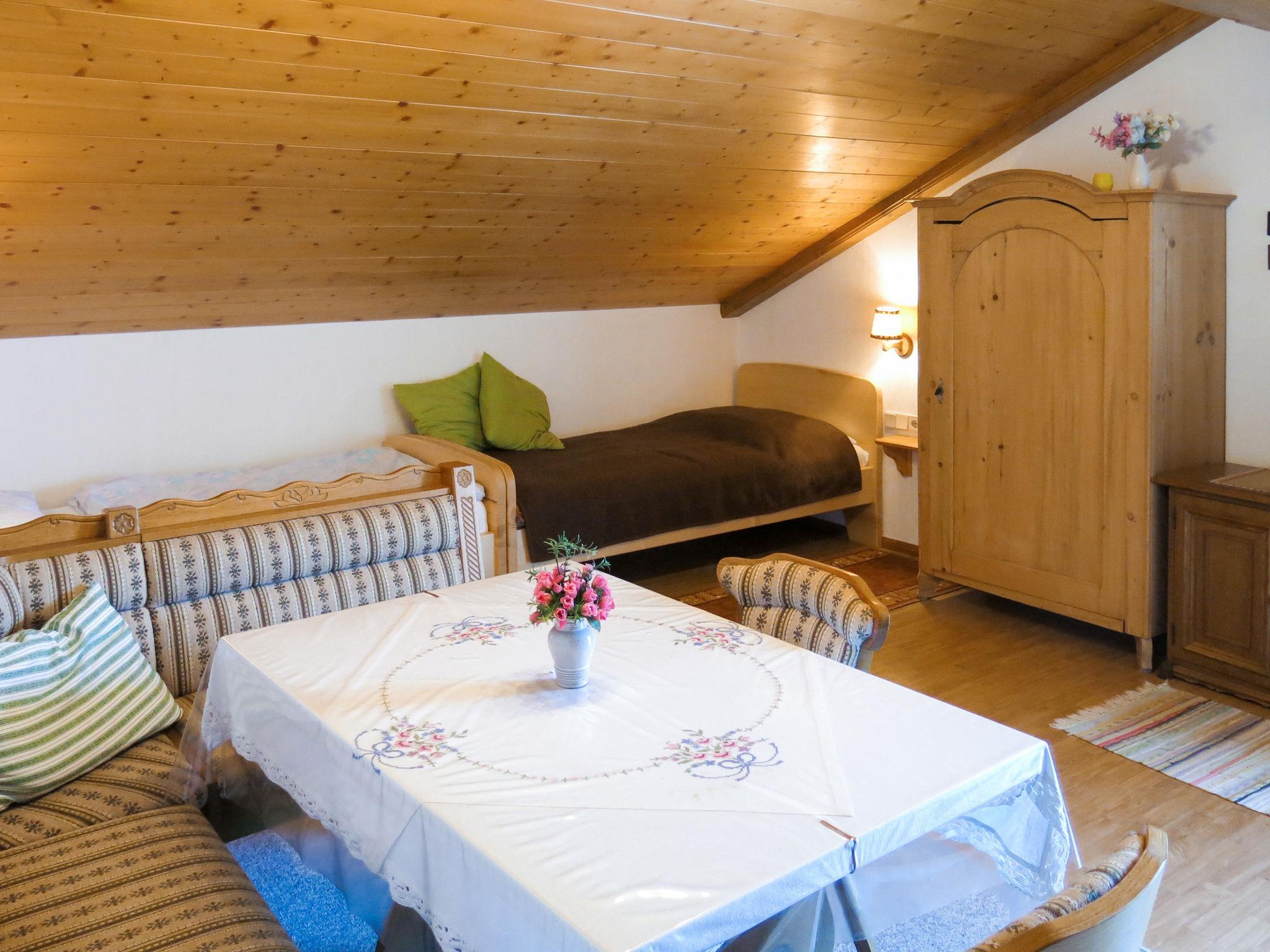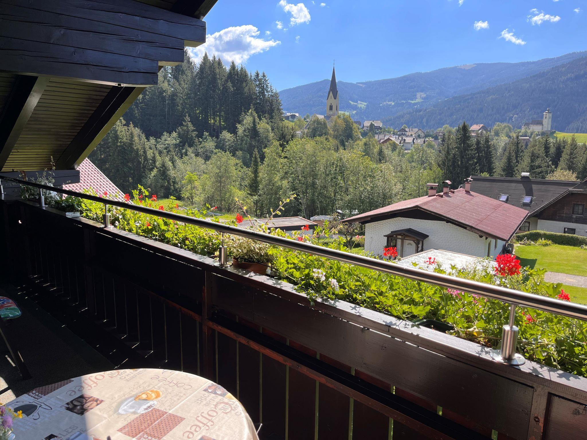 "Lassnig", 2-room apartment 60 m2 on 2nd floor. Simple and cosy furnishings: living/sleeping room with sloping ceilings with 2 sofabeds, dining table, satellite TV and radio. Exit to the balcony. 1 double bedroom with sloping ceilings. Exit to the balcony. Open kitchen (4 hot plates, oven, dishwasher, toaster, kettle, microwave, electric coffee machine). Shower/WC. Heating. Balcony, south facing position. Beautiful view. Facilities: Internet (WiFi, free).