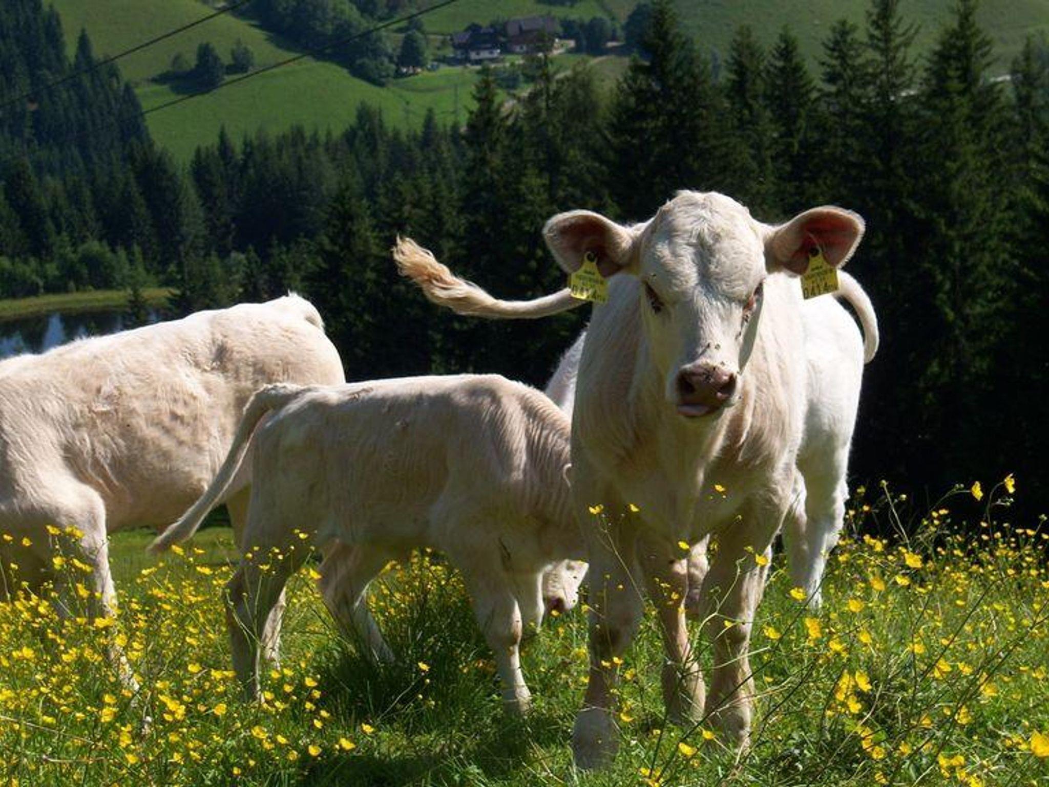 Am Bauernhof selbst betreiben wir Mutterkuhhaltung mit Charolais-Rindern und mehrere Fischteiche, in denen wir auf natürliche Weise Bachforellen und Bachsaiblinge aufziehen.