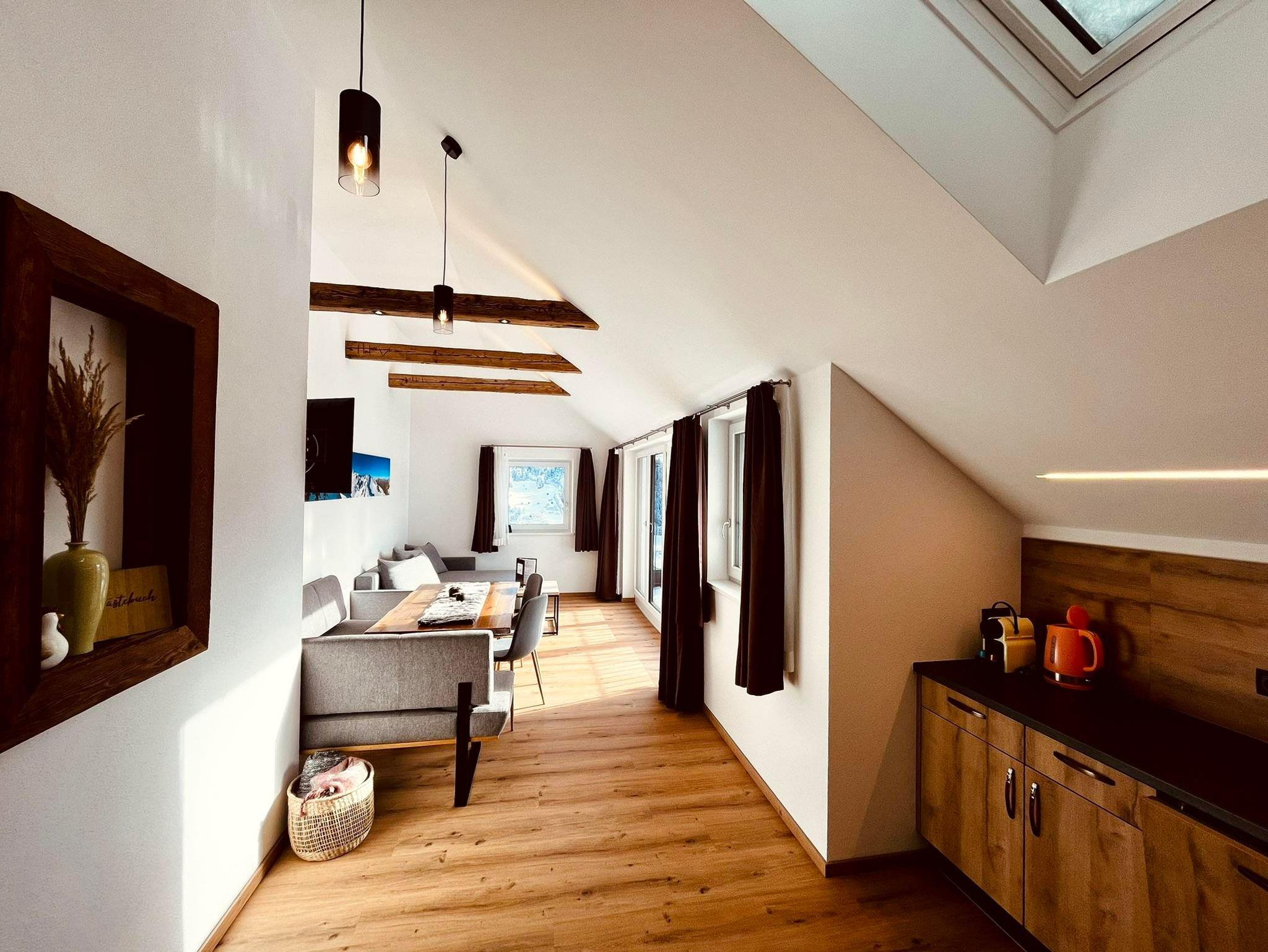 Unser Appartement Wildspitz bietet mit 71m2 ausreichend Komfort zum Wohlfühlen und Genießen. Das mit sehr viel Liebe eingerichtete Apartment zeichnet sich nicht nur durch die atemberaubende Aussicht aus, sondern auch durch die Einrichtung. Es erwartet Sie 1 Doppelbettzimmer, 1 Schlafzimmer mit 2 Einzelbetten, Schlafsofa, Badezimmer mit Regendusche, separates WC, gemütliche Wohnküche mit Esstisch, Küche komplett ausgestattet mit Kühlschrank, Nespresso Kapselkaffeemaschine, Cerankochfeld, uvm. Auf dem 10m2 großen Balkon lassen Sie Ihren abenteuerlichen Urlaubstag bei geselligen Stunden und einen herzerwärmenden Sonnenuntergang ausklingen. Worauf warten Sie? Genießen Sie Ihre AusZEIT bei uns, im Apart AlpenZEIT
