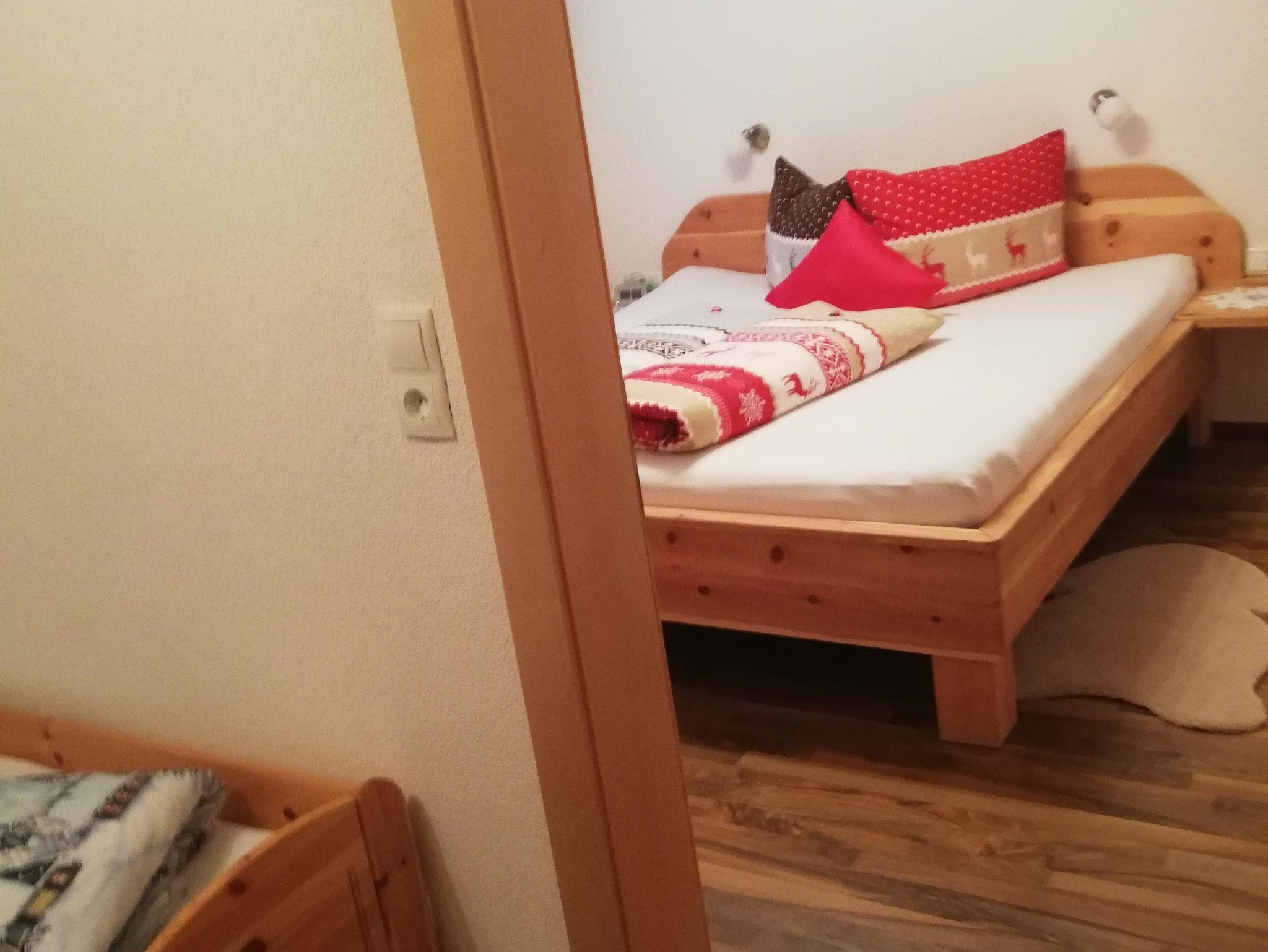 Eigener Eingang zum Apartment und gratis W-LAN/Wifi. Die Küche ist mit einem Küchenblock, vielen Küchenutensilien, (sowie Salz, Pfeffer, Zucker, versch. Tees, Spülmittel, Geschirrspültabs, Spül- und Geschirrtücher, usw.) 4 Platten Herd, Backofen, Dampfabzug, Kühlschrank mit Gefrierfach, Geschirrspüler, Kaffeemaschine, Toaster, Stab und Handmixer, Wasserkocher, großem Tisch mit Eckbank, und einem SAT TV ausgestattet. Unser Brötchenservice von Montag bis Samstag(außer Feiertage) verwöhnt sie mit frischem Gebäck zum Frühstück! Das Wohnzimmer ist mit einem gemütlichen Ecksofa und Tischchen für nette Spielabende, sowie einem großen SAT Fernseher ausgestattet. Das Apart bietet drei separate Vollholz Schlafzimmer. Zwei Zimmer sind mit einer Verbindungstür verbunden. Bad mit Dusche, WC und Doppelwaschbecken, WC extra, Garderobe, Terrasse, Liegewiese.
