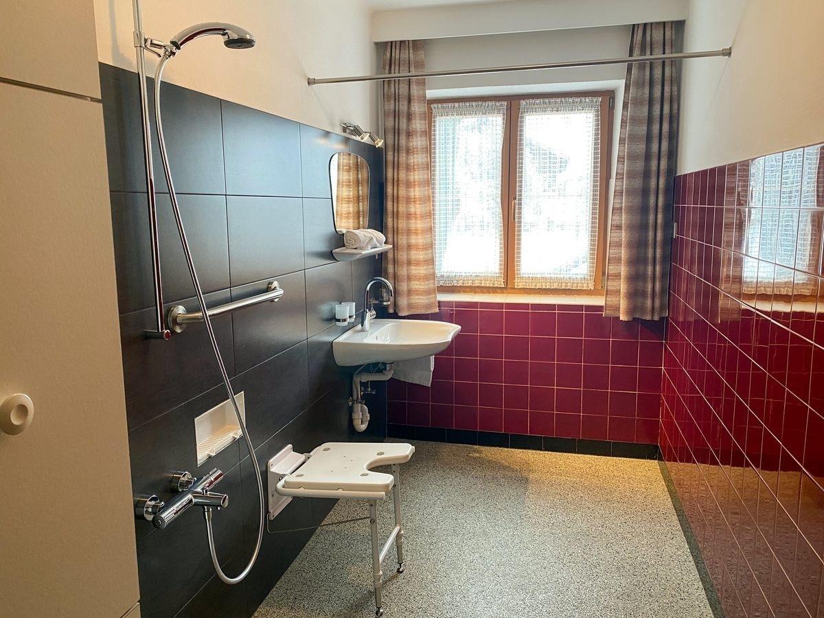 1 Badezimmer mit Dusche/WC und Waschbecken im Untergeschoss