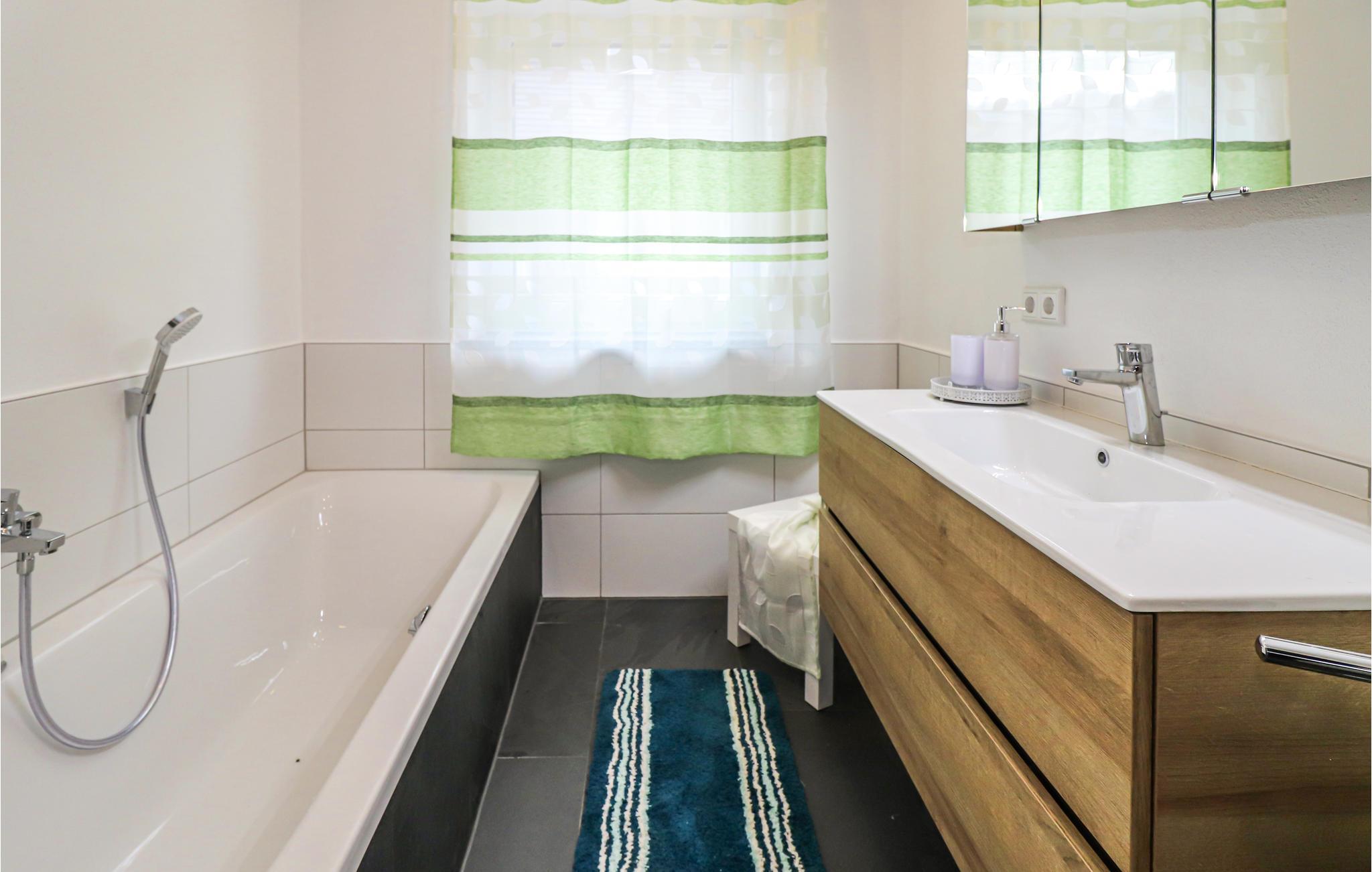 Badeværelse (nr. 1) - Varmt og koldt vand. Bruser og badekar
