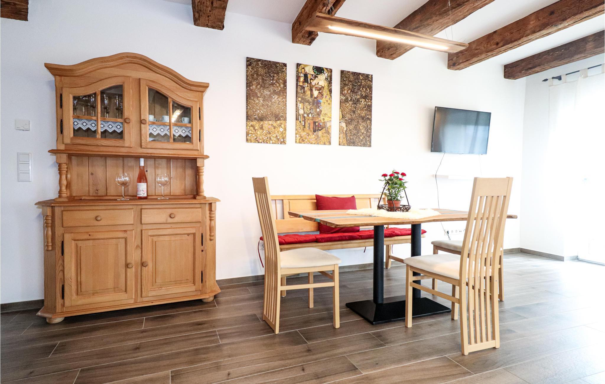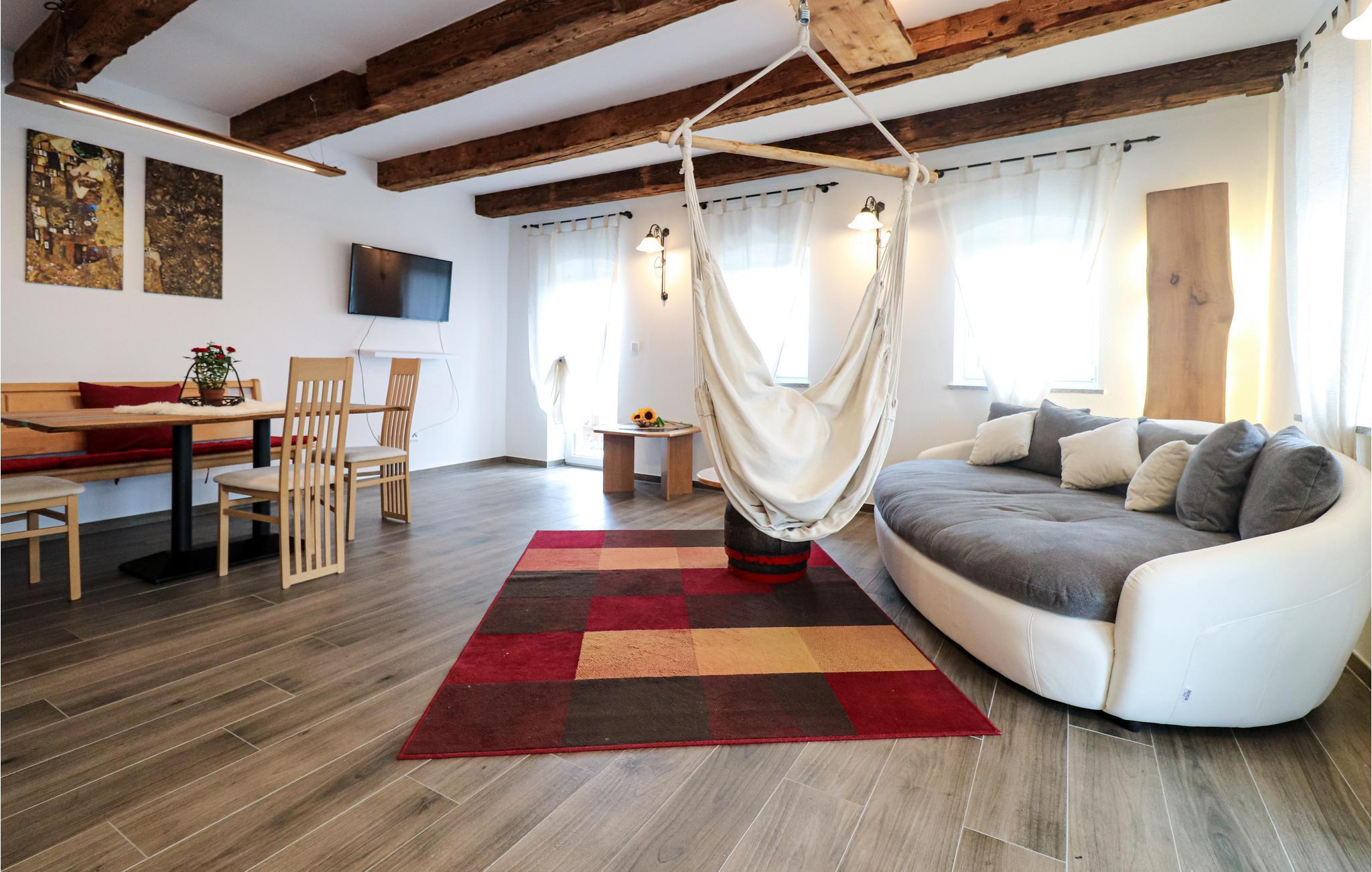 Denne moderne og på samme tid rustikke lejlighed er en skøn ramme om en ferie for en familie på fire. Der er også plads til, at I kan have hunden med. Både spisebordet og opholdsområdet giver jer gode steder at samles for at slappe af mellem jeres udflugter. Køkkenet har også rigtig gode faciliteter, så her kan hjemmekokken slå sig løs.