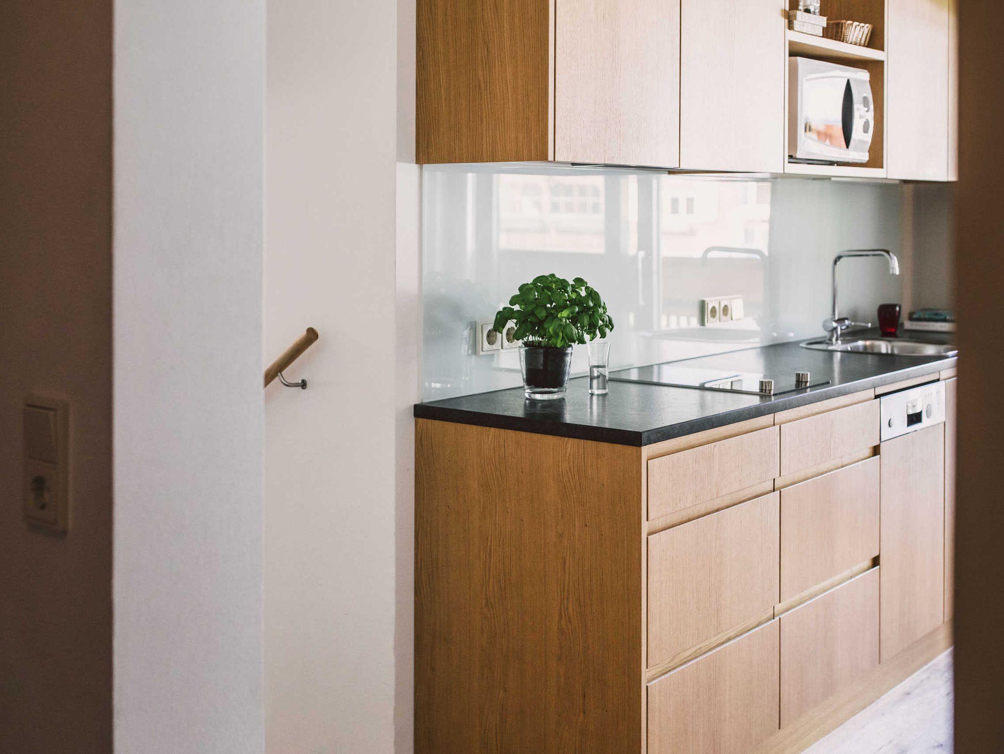 Die Apartments bestehen aus einem Schlafzimmer mit Zirbenvollholz, Panoramafenster mit Blick in die herrliche Bergwelt, Eichenvollholzboden, Wohn und Küchenbereich mit Couch (hochwertige Ausziehcouch für zwei Personen), voll ausgestattete Küche mit Nespresso Kaffee Maschine, Mikrowelle, Geschirrspüler und Kühlschrank.