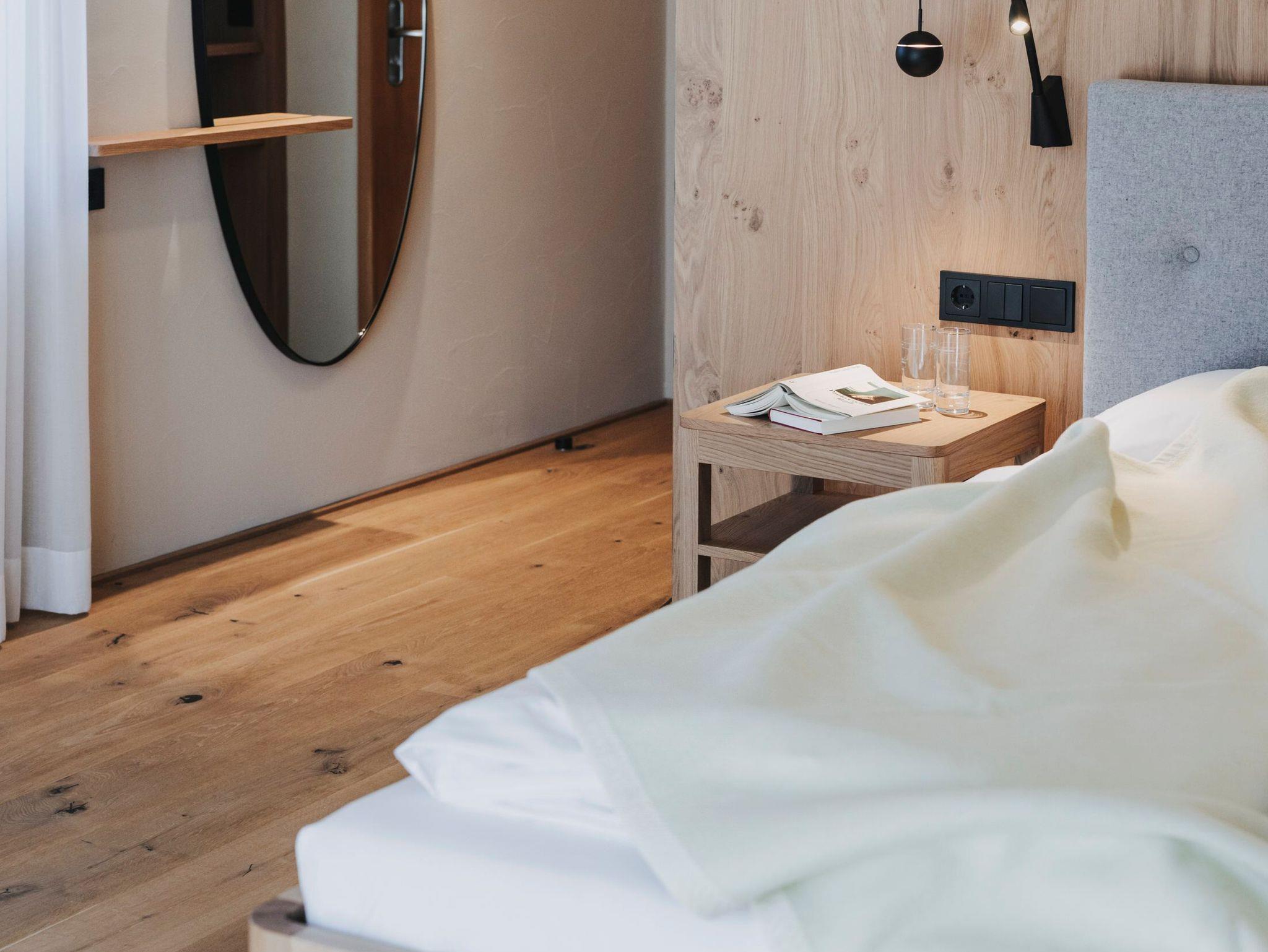 Freuen Sie sich auf exklusive, liebevoll eingerichteten Doppelzimmer mit Südbalkon oder unsere Apartments , alle mit Balkon, mit Liebe zum Detail und zur Natur eingerichtet, die Möbel aus Zirbenholz, feinen Loden- und Filzstoffen gefertigt ... und mit modern eingerichteten Küchen, falls Sie auch im Urlaub Ihrer Koch-Leidenschaft nicht widerstehen können!