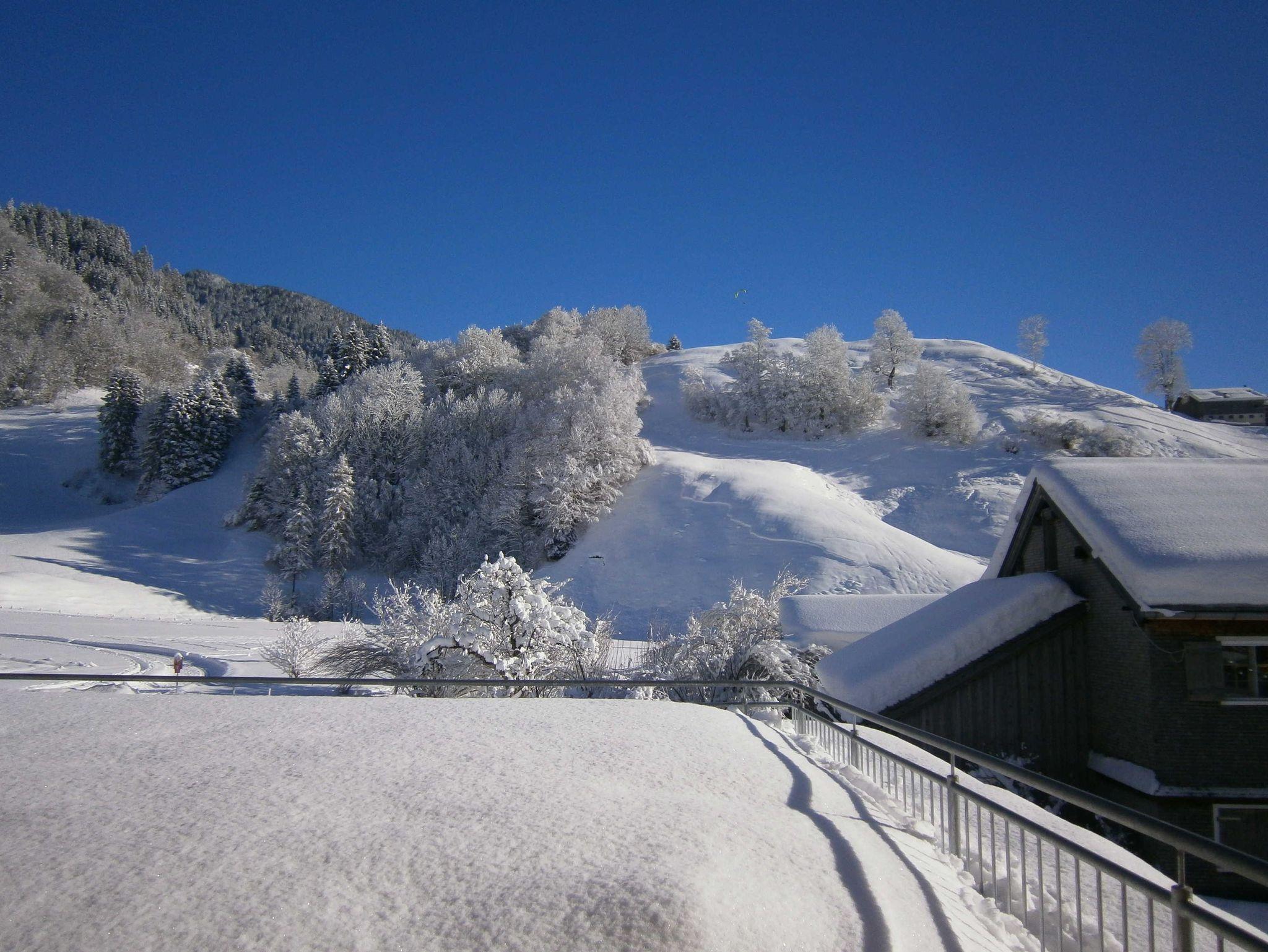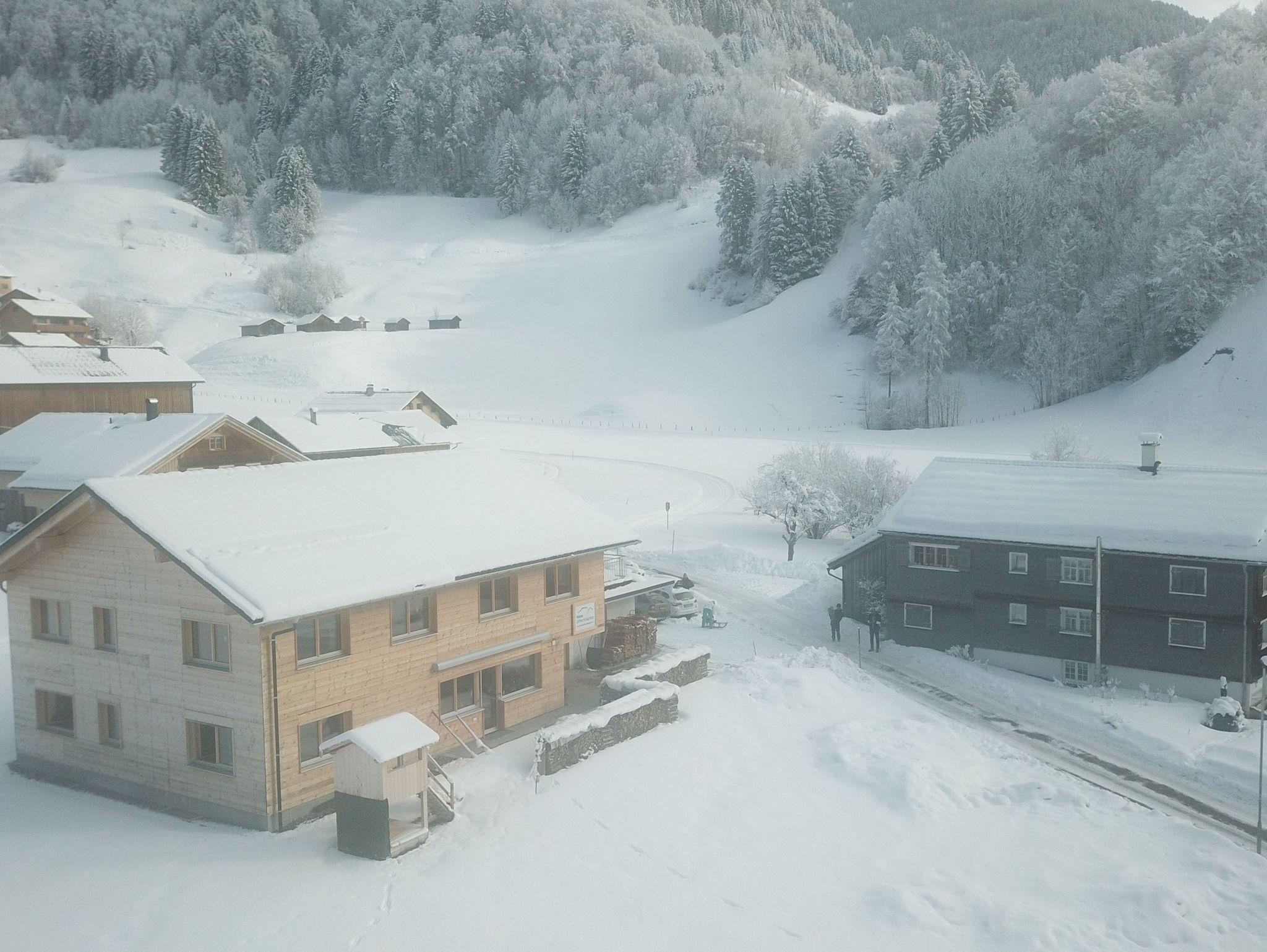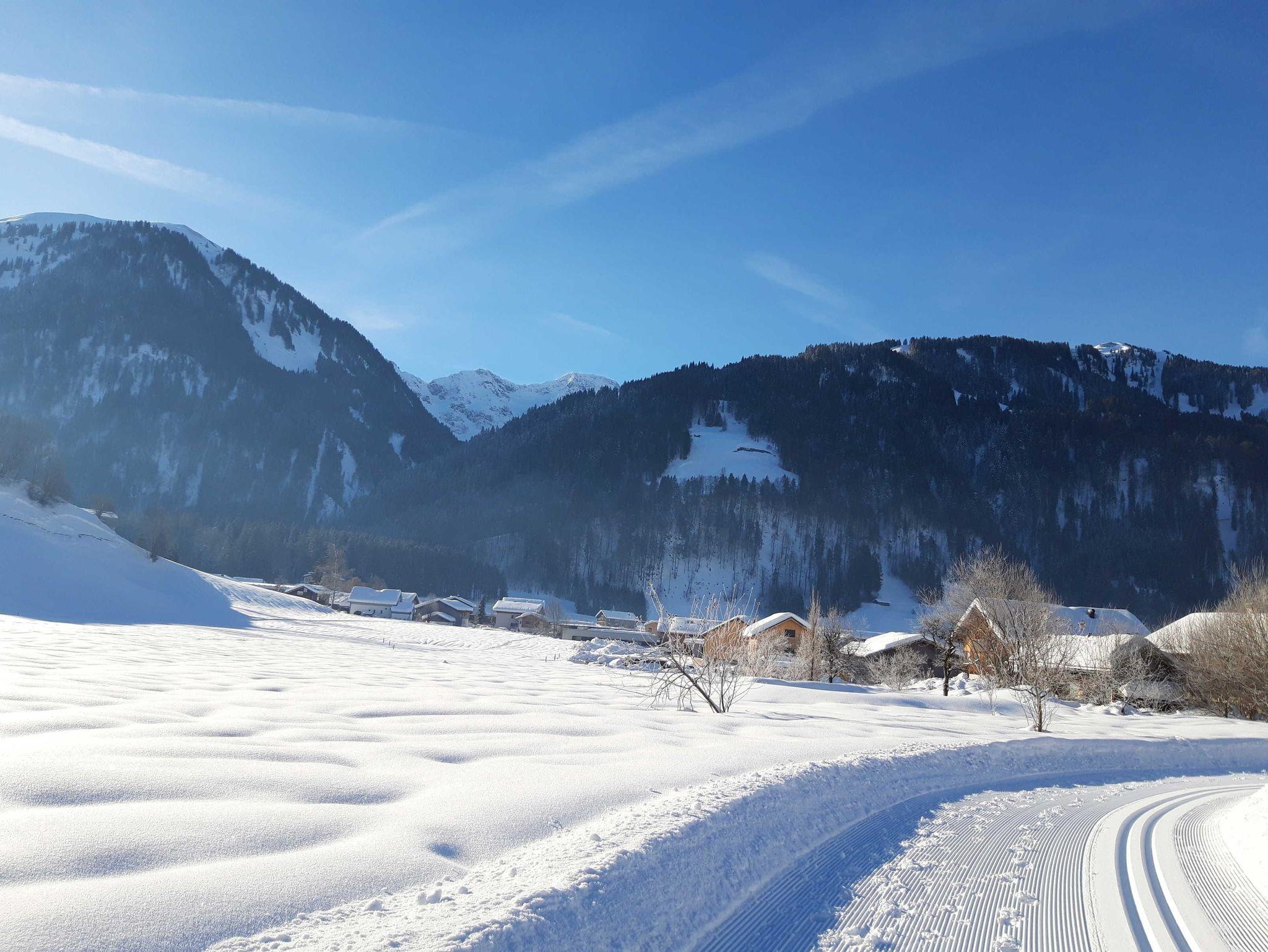 In wenigen Gehminuten erreichen Sie das Lebensmittelgeschäft wie auch die Ski-/Bushaltestelle.