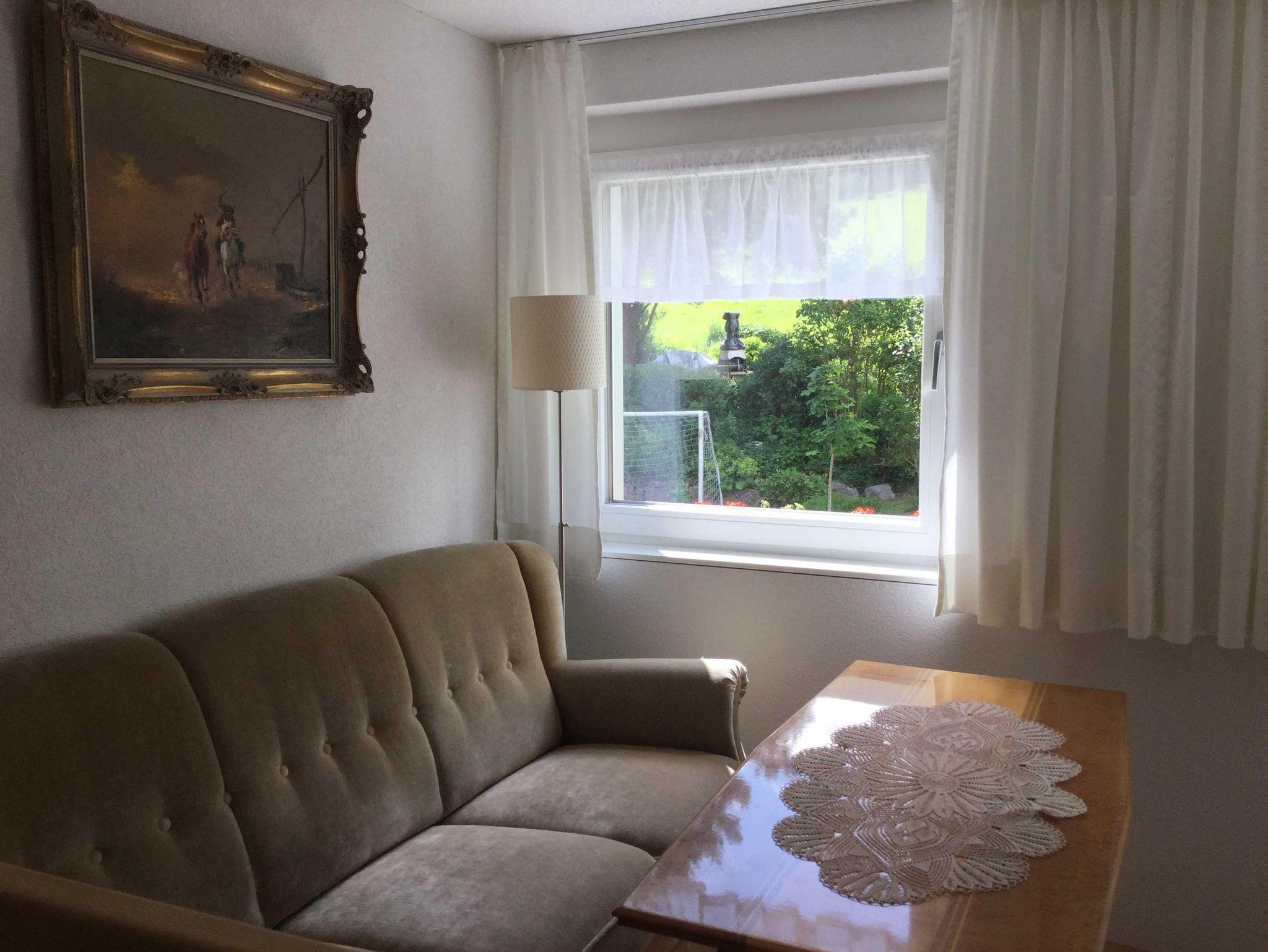 Familien-Appartement mit Küche, Wohnschlafzimmer mit Ausziehcouch für 1 Person, Schlafzimmer für 2 Personen, Dusche/WC, TV und Balkon.