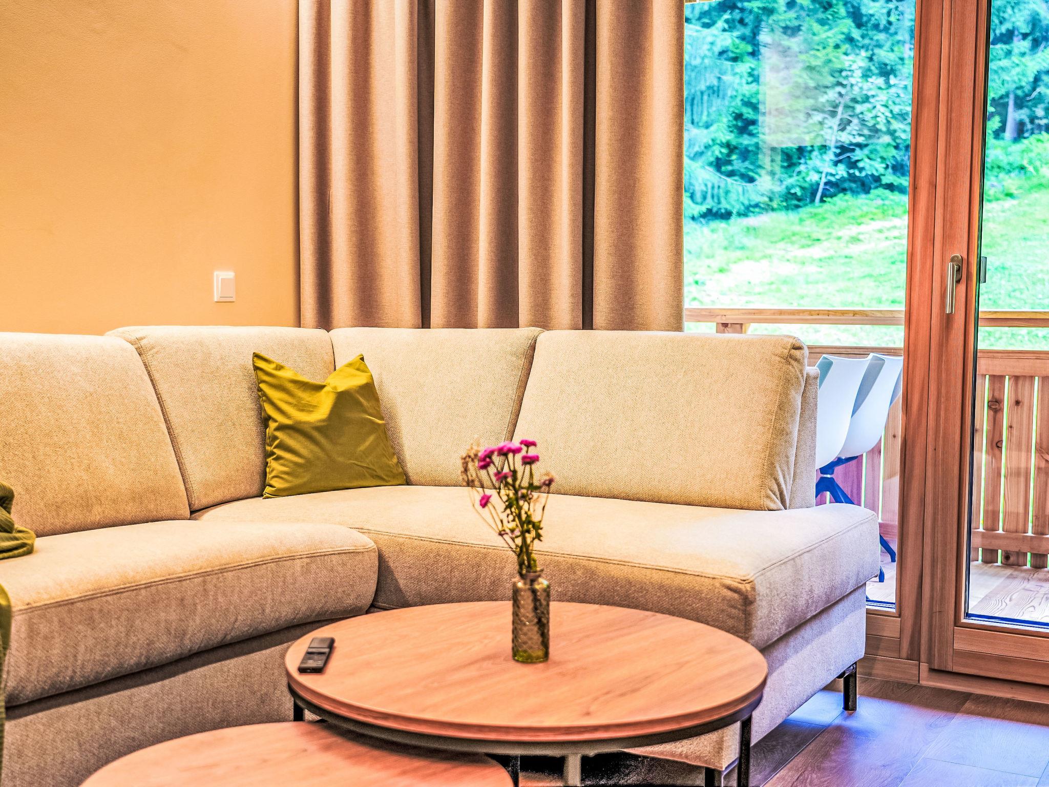 "Bergklee", 3-room apartment 90 m2. Very comfortable and tasteful furnishings: 2 double bedrooms, each room with satellite TV and flat screen. Exit to the balcony. Kitchen-/living room (oven, dishwasher, 4 ceramic glass hob hotplates, toaster, electric coffee machine) with 1 double sofabed, dining table and flat screen. Exit to the terrace. Shower/WC, sep. WC, Sauna. Heating. Balcony, terrace. Terrace furniture, balcony furniture, deck chairs. Very beautiful, of the mountains and the swimming pool. Facilities: children's high chair. Please note: non-smokers only.