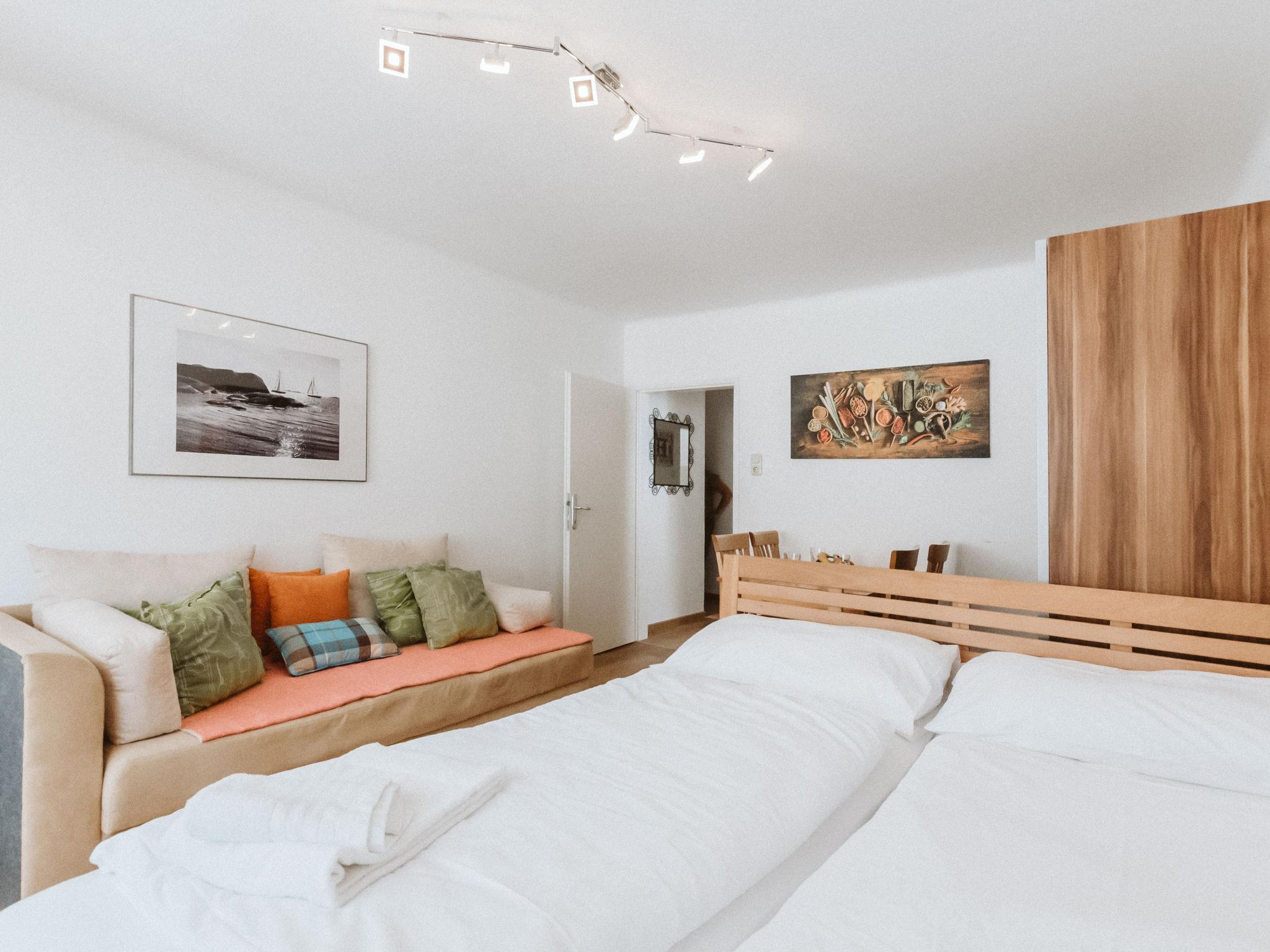 "Stubner Kogel Top 18", 1-room apartment 35 m2 on 2nd floor. Bright, renovated in 2021, very cosy furnishings: entrance hall. Living/sleeping room with 1 sofabed, 1 double bed, dining table and satellite TV (flat screen). Exit to the balcony. Small kitchen (oven, 4 ceramic glass hob hotplates, toaster, kettle, microwave, electric coffee machine). Bath/WC. Boiler (100 litres). Parquet floors. Balcony 4 m2. View of the mountains and the resort. Facilities: Internet (WiFi, free). Please note: non-smokers only. Smoke alarm. 50403-000313-2020