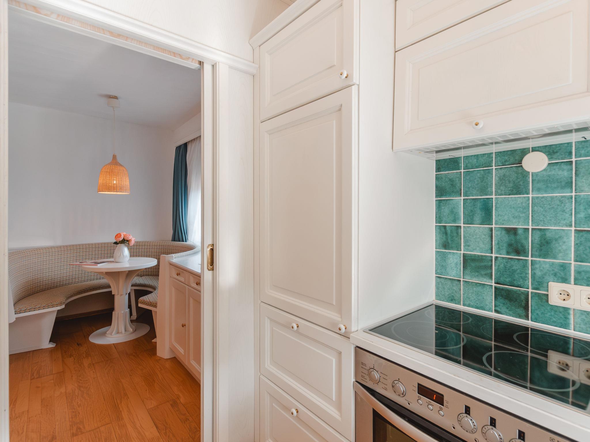 "Schubert-Franz Top 12", 2-room apartment 65 m2 on 3rd floor. Object suitable for 4 adults. Spacious, very cosy furnishings: entrance hall with separate WC. 1 double bedroom with bath/WC and double hand-basin. Exit to the balcony. Living/dining room with 1 double sofabed, dining nook and satellite TV (flat screen). Exit to the balcony. Small kitchen (oven, dishwasher, 4 ceramic glass hob hotplates, toaster, kettle) with dining nook. Wooden floors. The living room is a farmhouse lounge. Balcony 5 m2. Balcony furniture. Beautiful view of the mountains and the resort. Facilities: Internet (WiFi, free). Please note: apartment street side. Non-smokers only. 50403-000319-2020