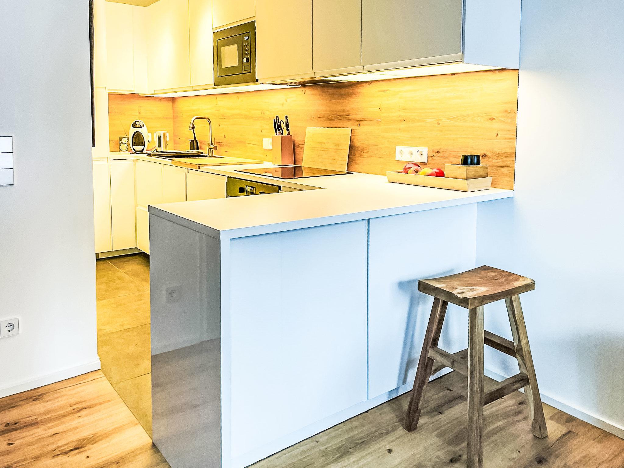 "Auszeit", 2-room apartment 50 m2. Object suitable for 2 adults + 2 children. Spacious and bright, fully renovated in 2024, very modern and tasteful furnishings: entrance hall. Living/sleeping room with 1 sofabed, dining table and TV (flat screen), DVD and DVD collection available. Exit to the terrace. 1 double bedroom. Open kitchen (oven, dishwasher, 4 induction hot plates, toaster, microwave, electric coffee machine). Bath/shower, sep. WC. Parquet floors. Beautiful view of the mountains. Facilities: washing machine, hair dryer. Internet (WiFi, free). Parking at the house. Please note: suitable for families. Non-smokers only, non-smoking house. Smoke alarm. 50403-000541-2025