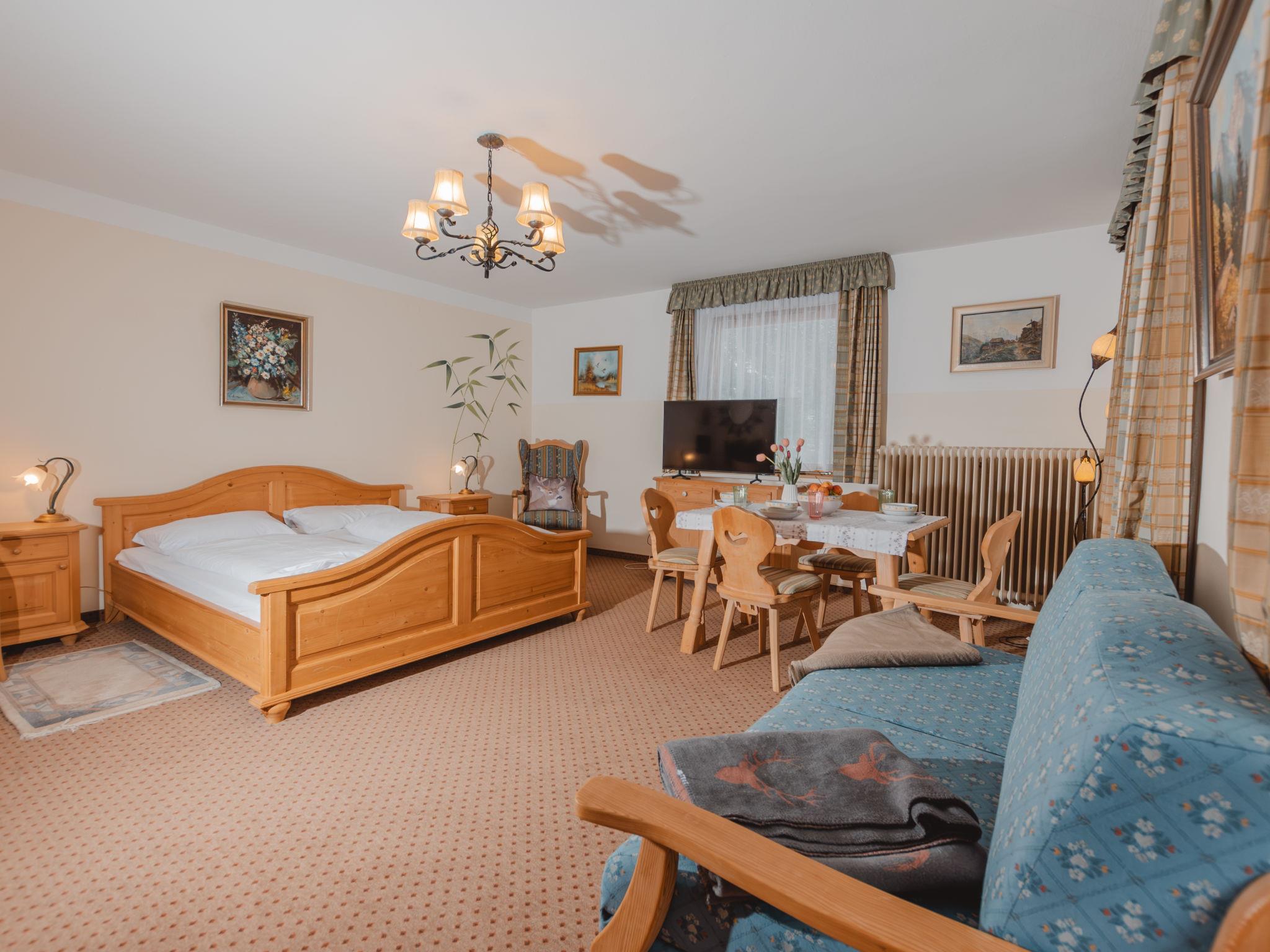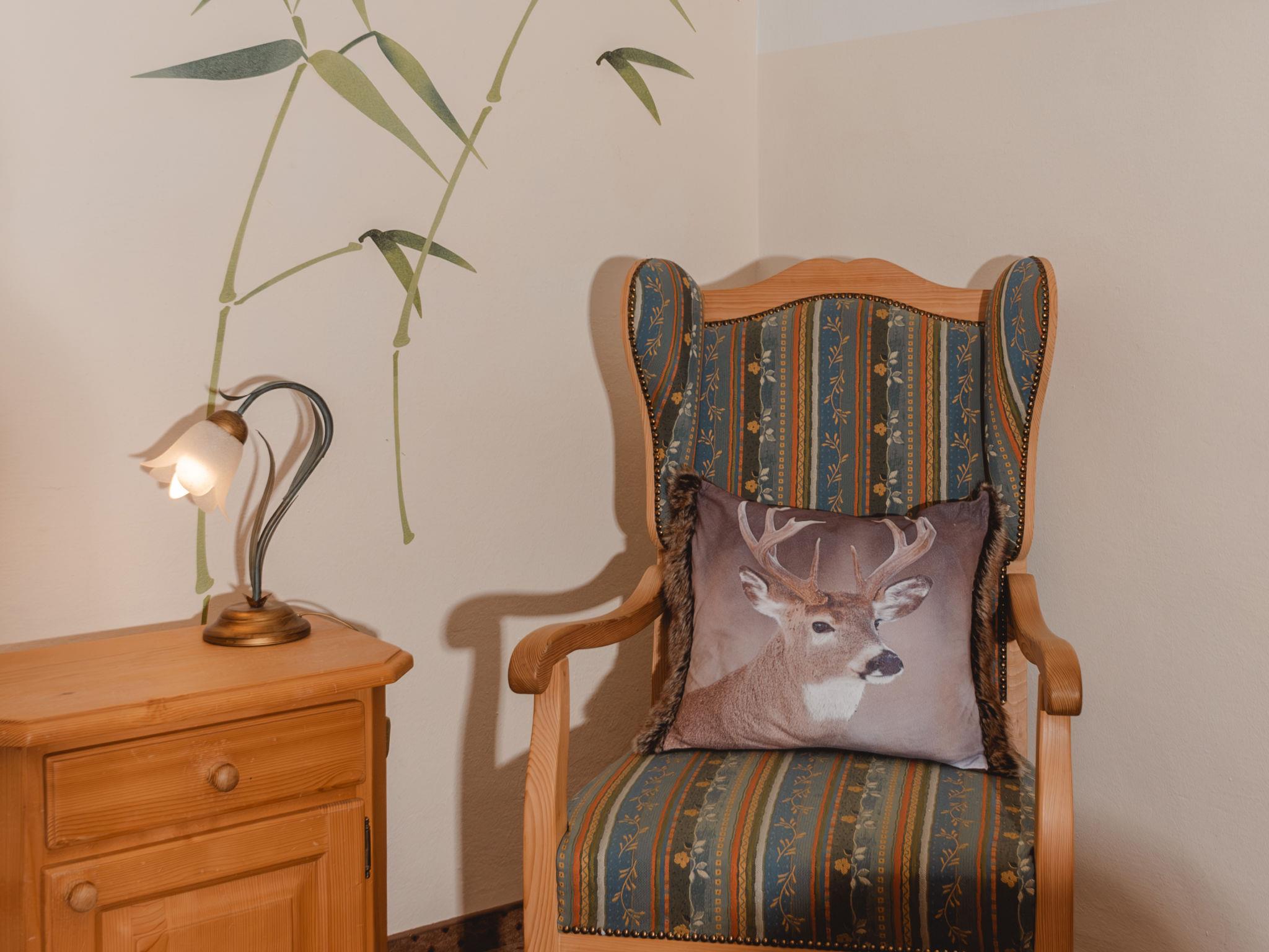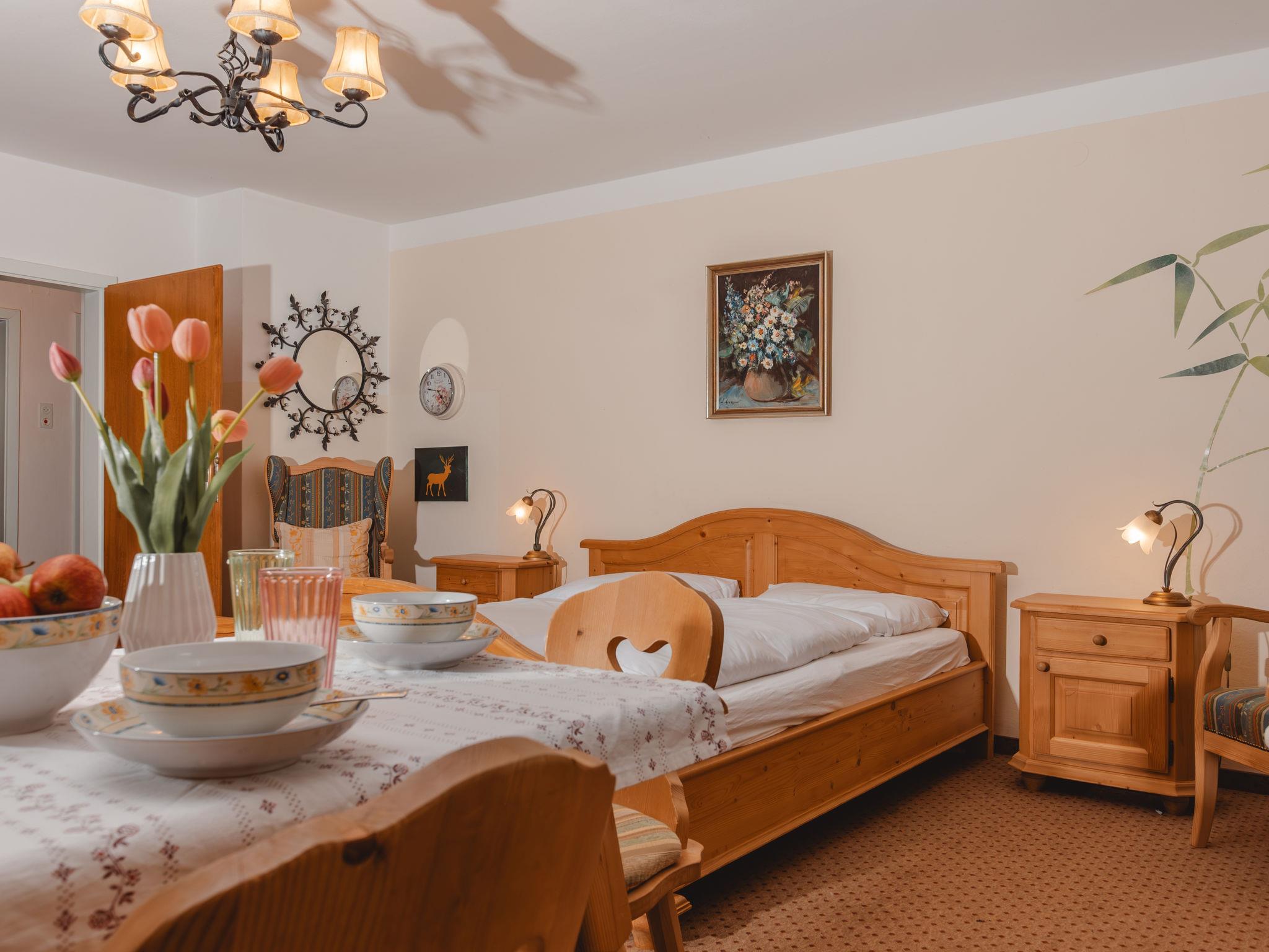 "Gertrud", 2-room apartment 40 m2. Spacious and bright, tasteful and cosy furnishings: entrance hall. Living/sleeping room with 1 double sofabed, 1 double bed, dining table and cable TV (flat screen). Exit to the balcony. Kitchen (oven, 4 ceramic glass hob hotplates, toaster, kettle, electric coffee machine) with small dining table. Exit to the balcony. Bath/WC. Parquet floors. Comfortable furnishings in the country house style. Large balcony. Balcony furniture. Beautiful view of the forest. Facilities: safe, hair dryer. Internet (WiFi). Parking, garage (extra) at the house. Please note: suitable for families. Non-smokers only. 2 pets/ dogs allowed. 50403-000158-2020
