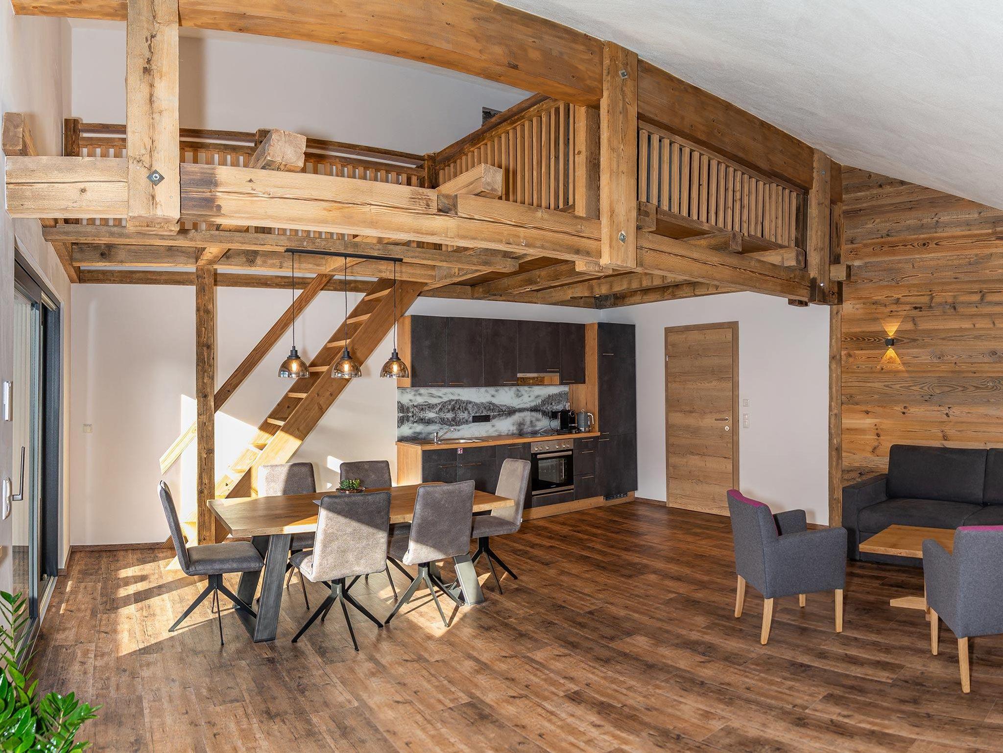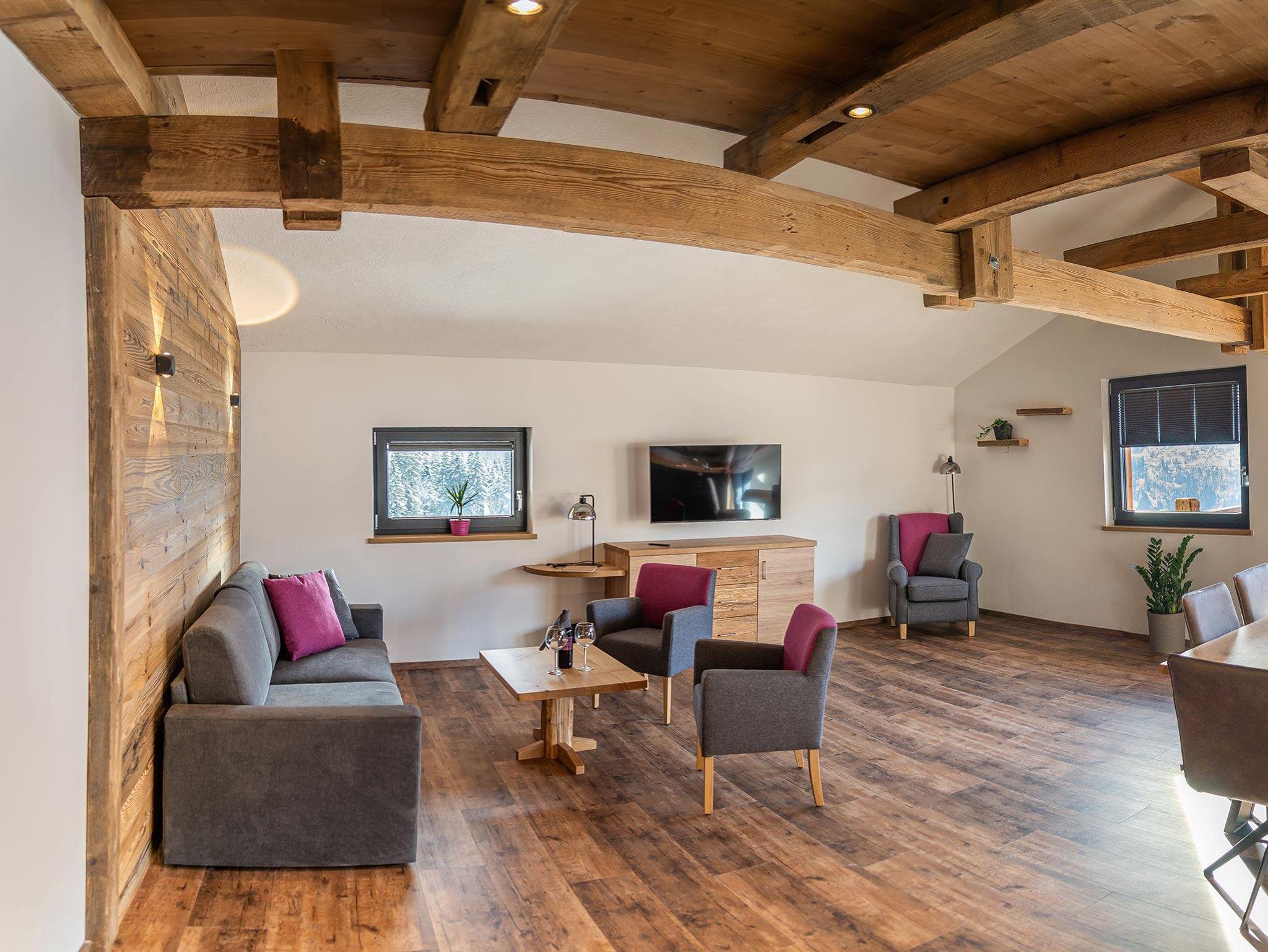 Das Appartement Blick liegt im Dachgeschoss vom Gasthof Gamskar und hat eine Grösse von 90 m².